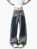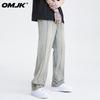 OMJK jeans estilo vibra americana verano para hombre delgados sueltos de pierna ancha rectos retro desgastados pantalones high street