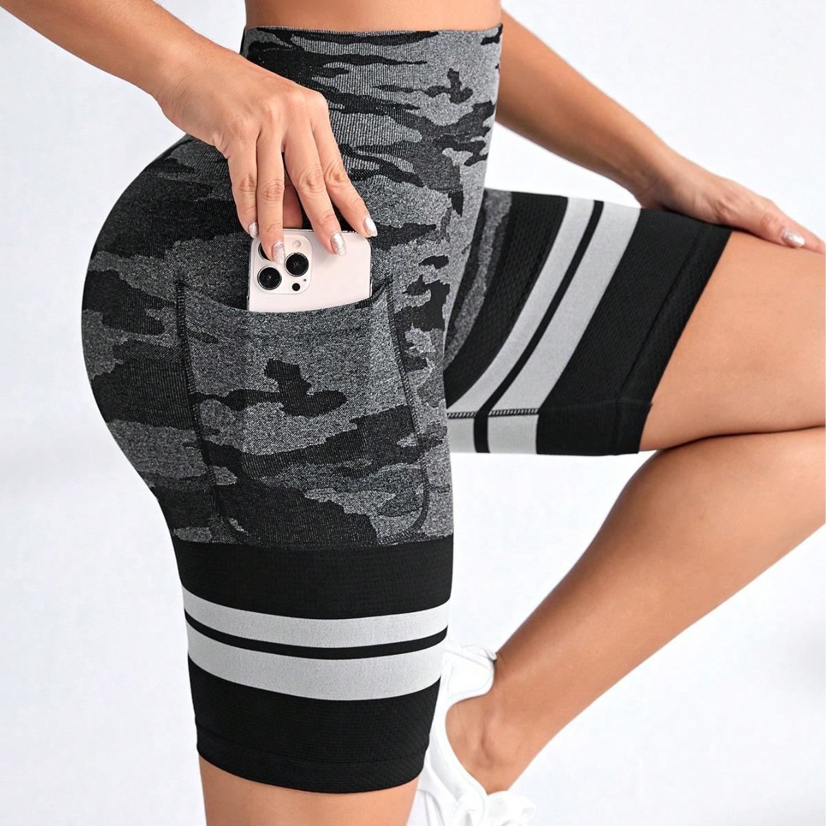 En stock Ins Yoga Transfronterizo Shorts de Tres Puntos Sin Costuras Bolsillo Lateral Levanta Glúteos Fitness Exterior Ajustados Manga Corta Pantalones de Mujer