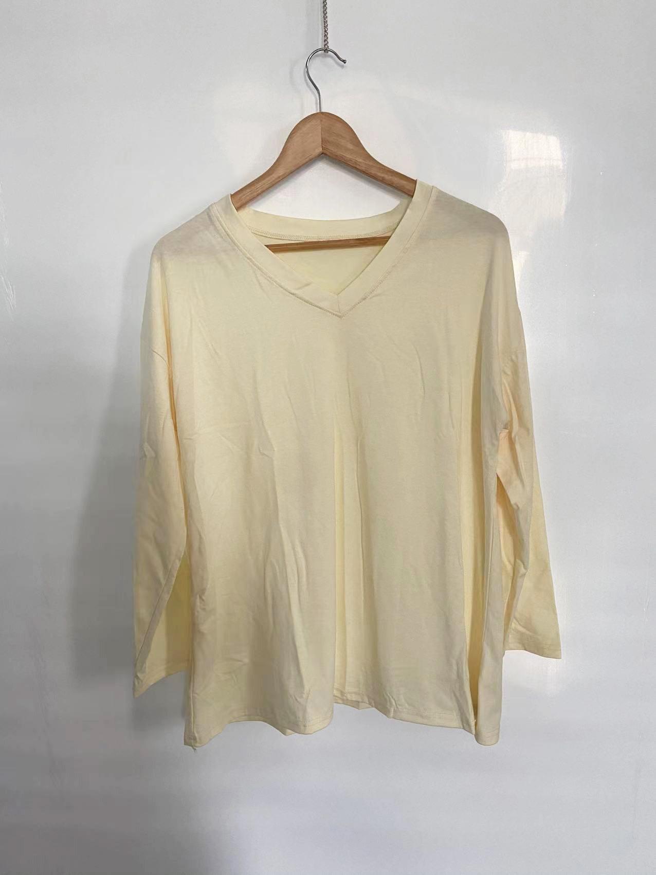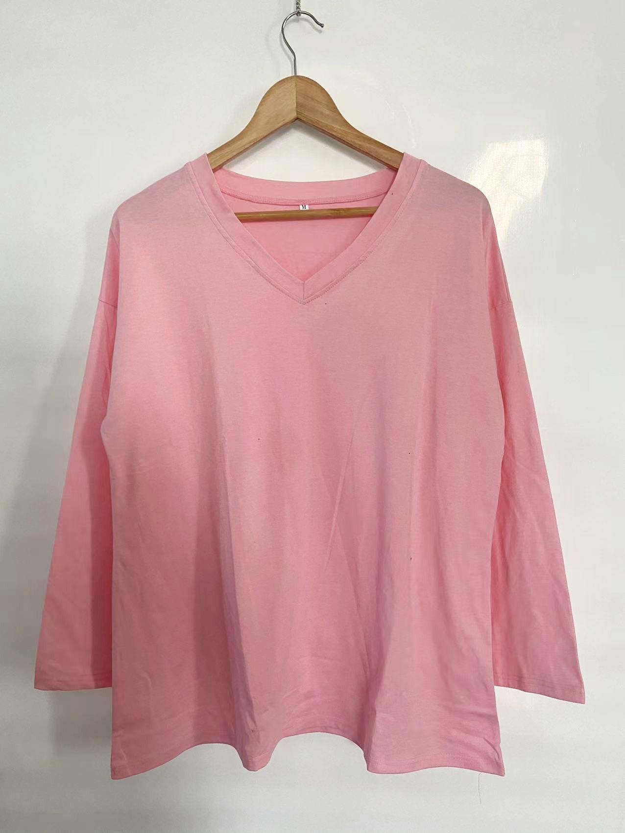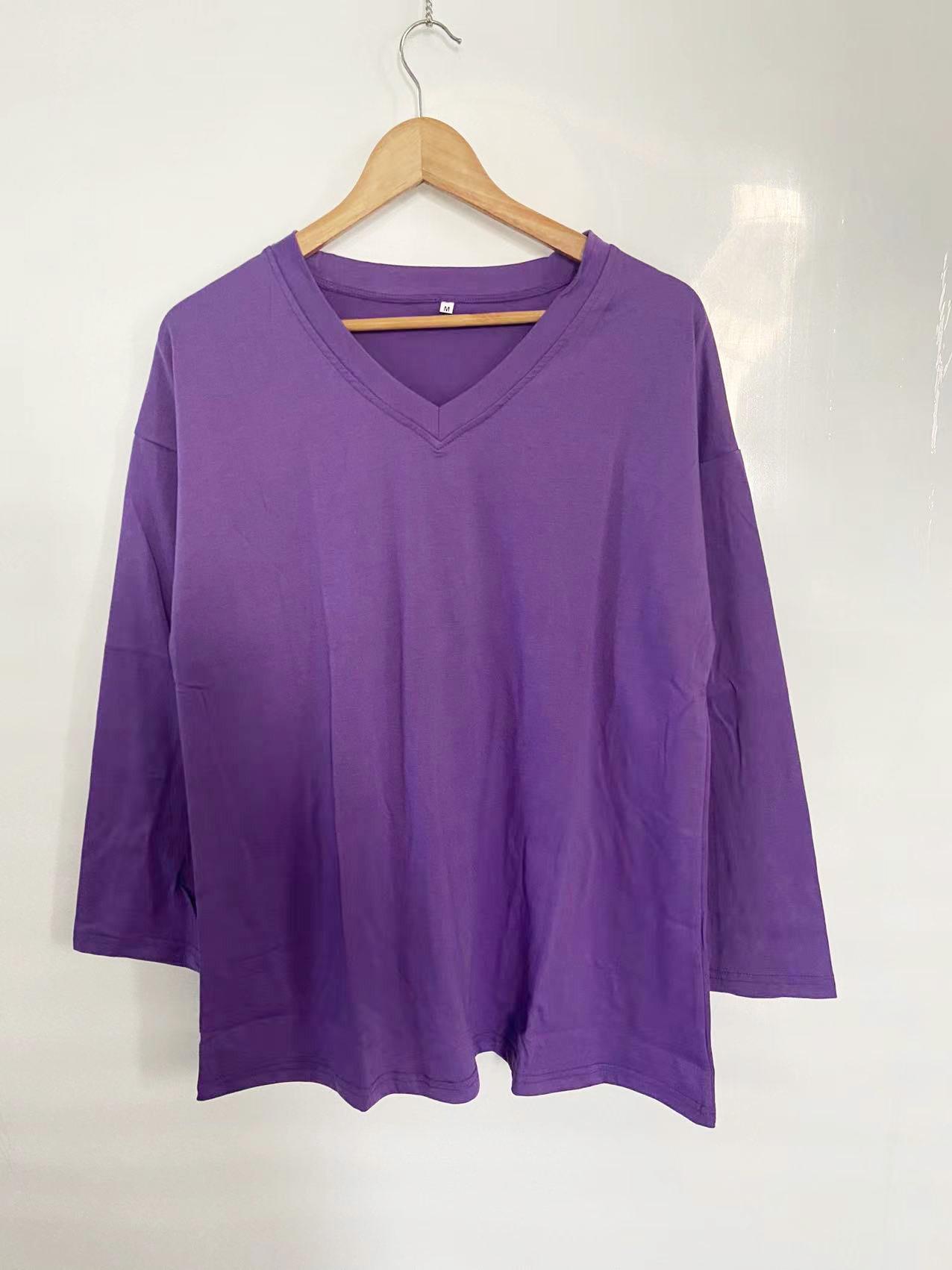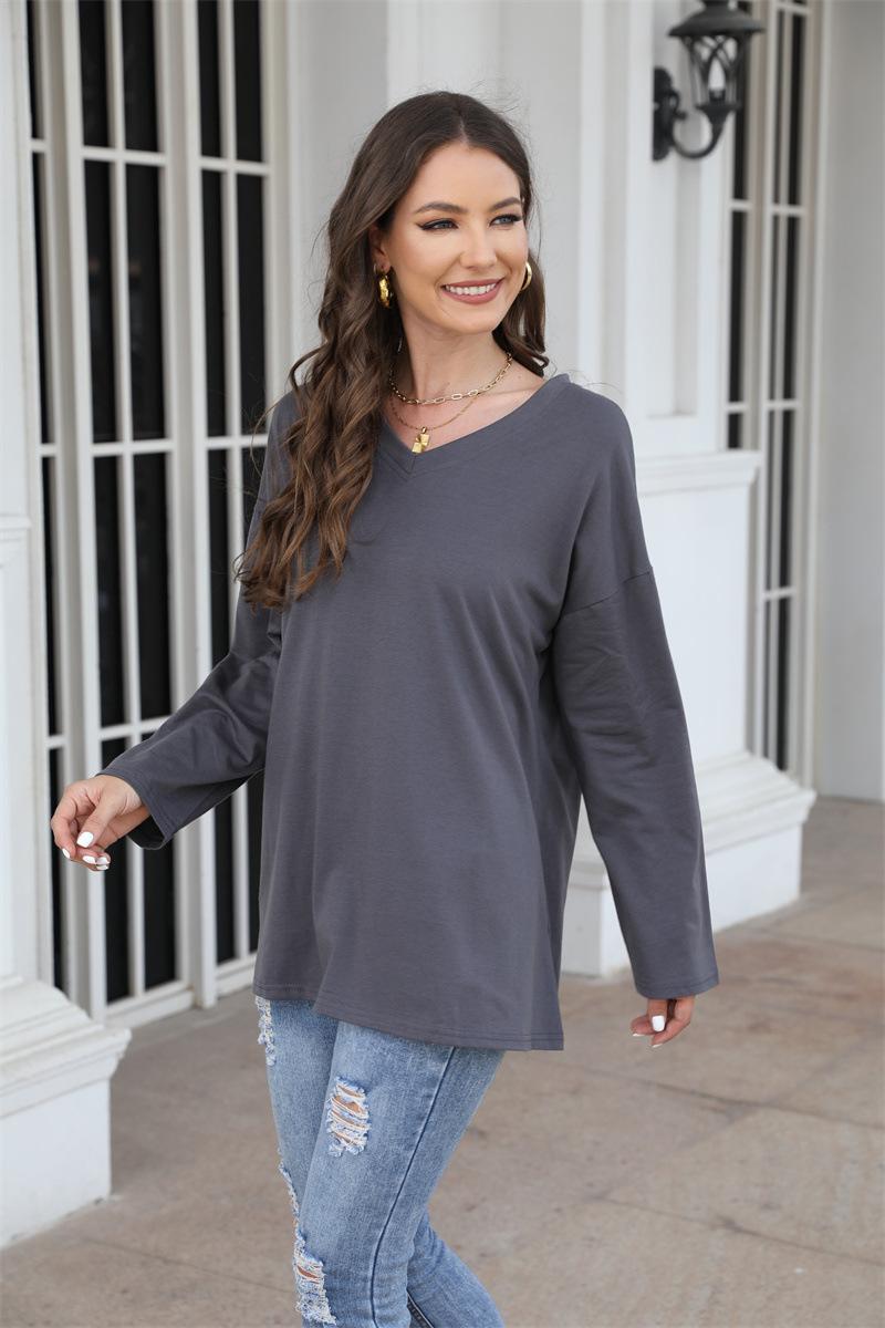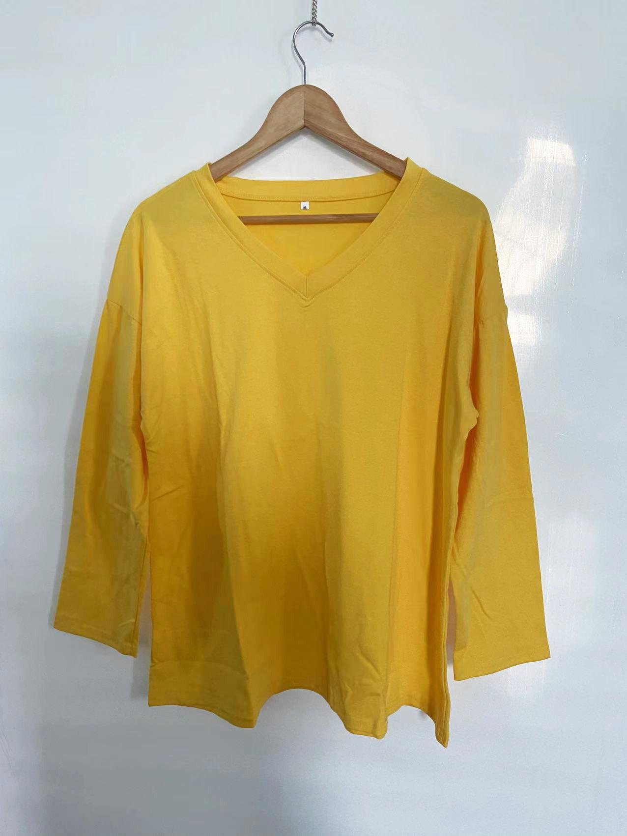 Camiseta Europea y Americana Oversized para Mujer 2022 Exportación Amazon Nueva Multicolor Manga Suelta al Hombro Cuello V Color Puro Tops de Mujer