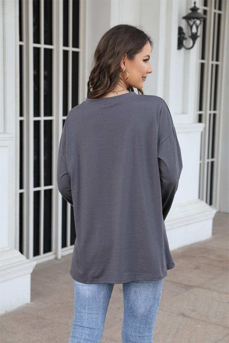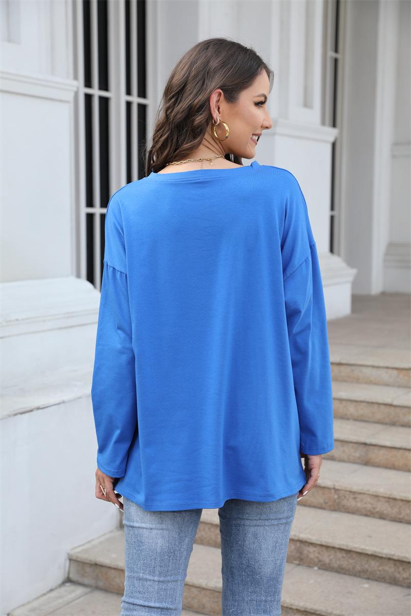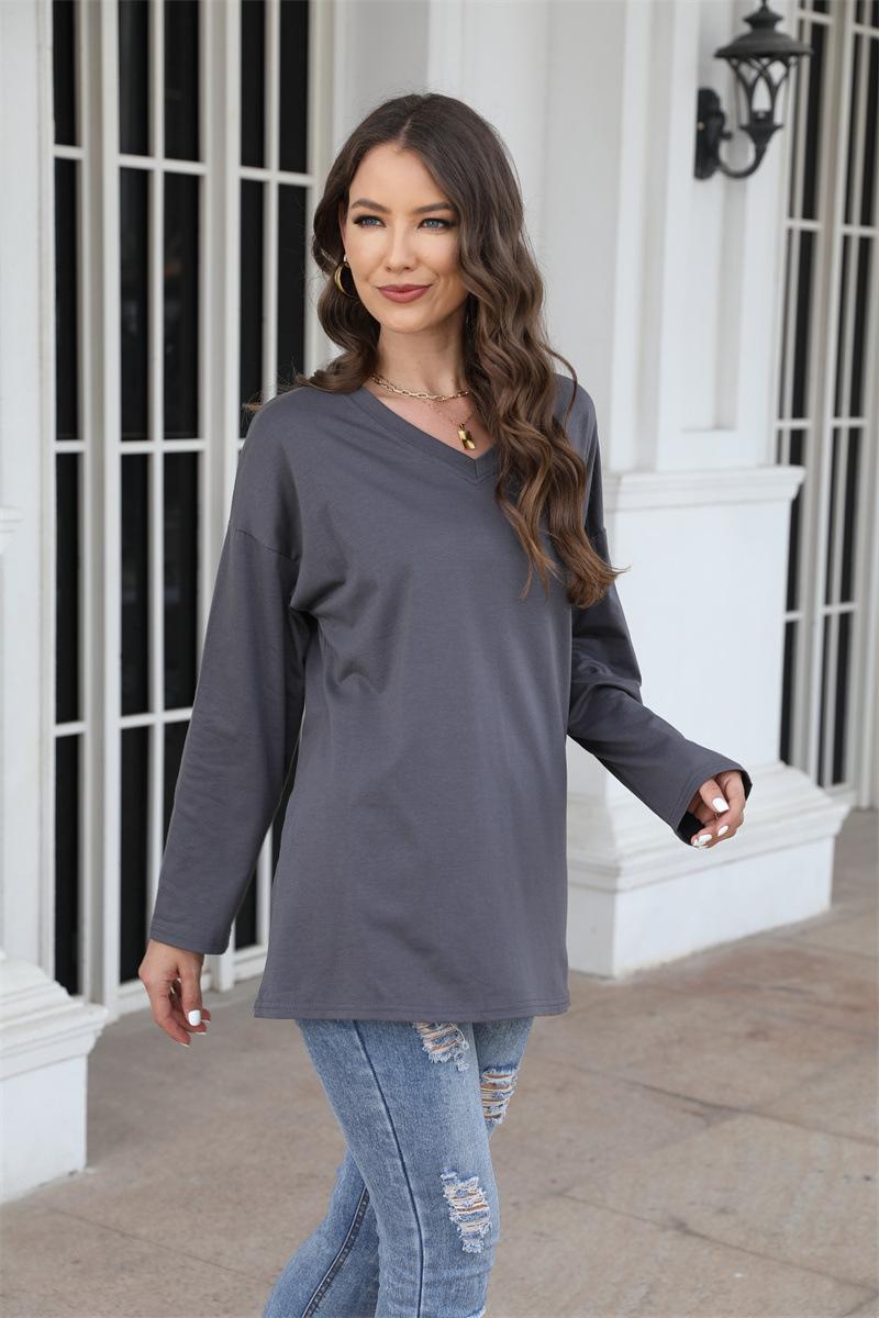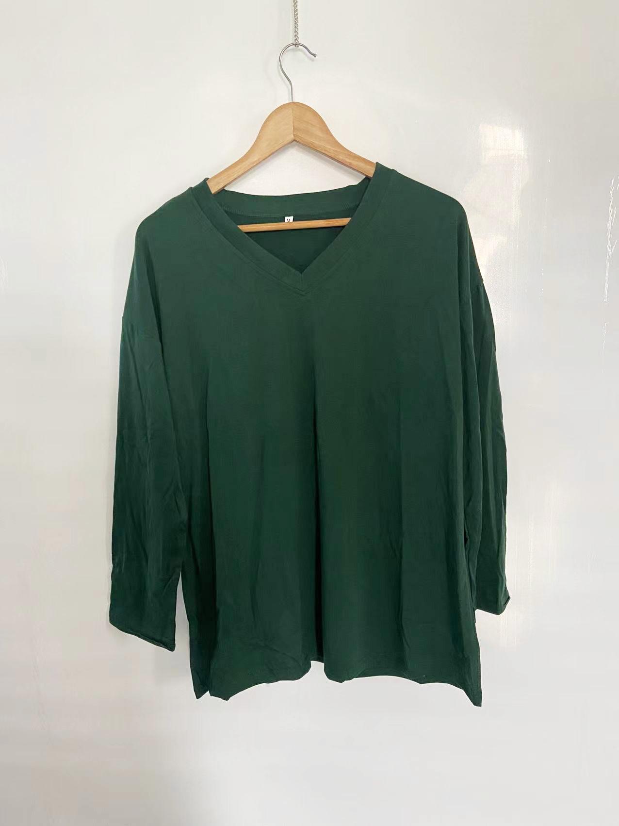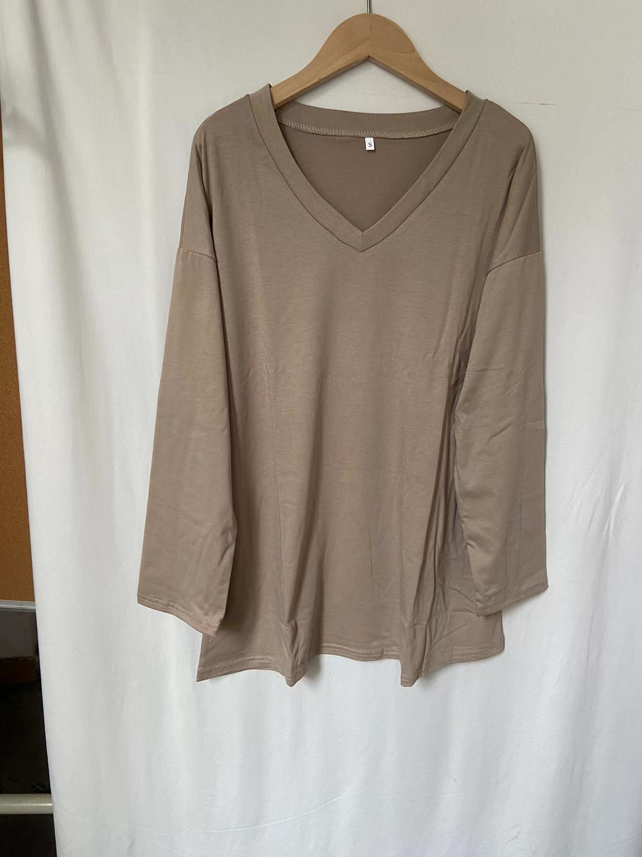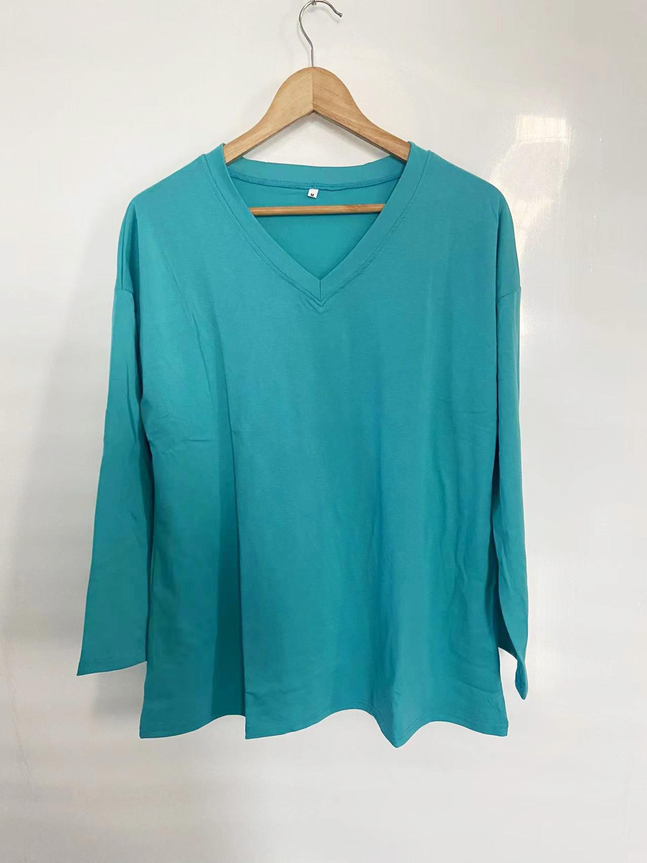 Camiseta Europea y Americana Oversized para Mujer 2022 Exportación Amazon Nueva Multicolor Manga Suelta al Hombro Cuello V Color Puro Tops de Mujer