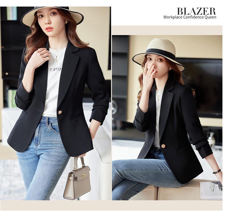Chaqueta de traje corta cruzada para mujer, moda de otoño e invierno, estilo coreano, corte entallado, combinable, elegante, informal, de manga larga.