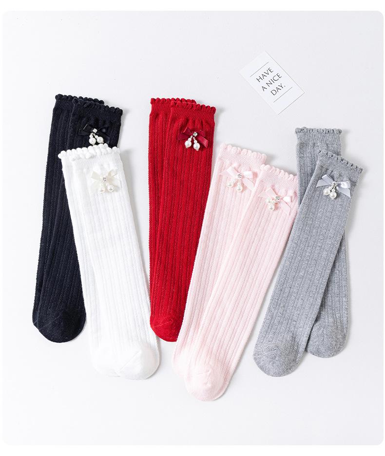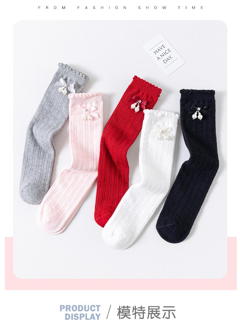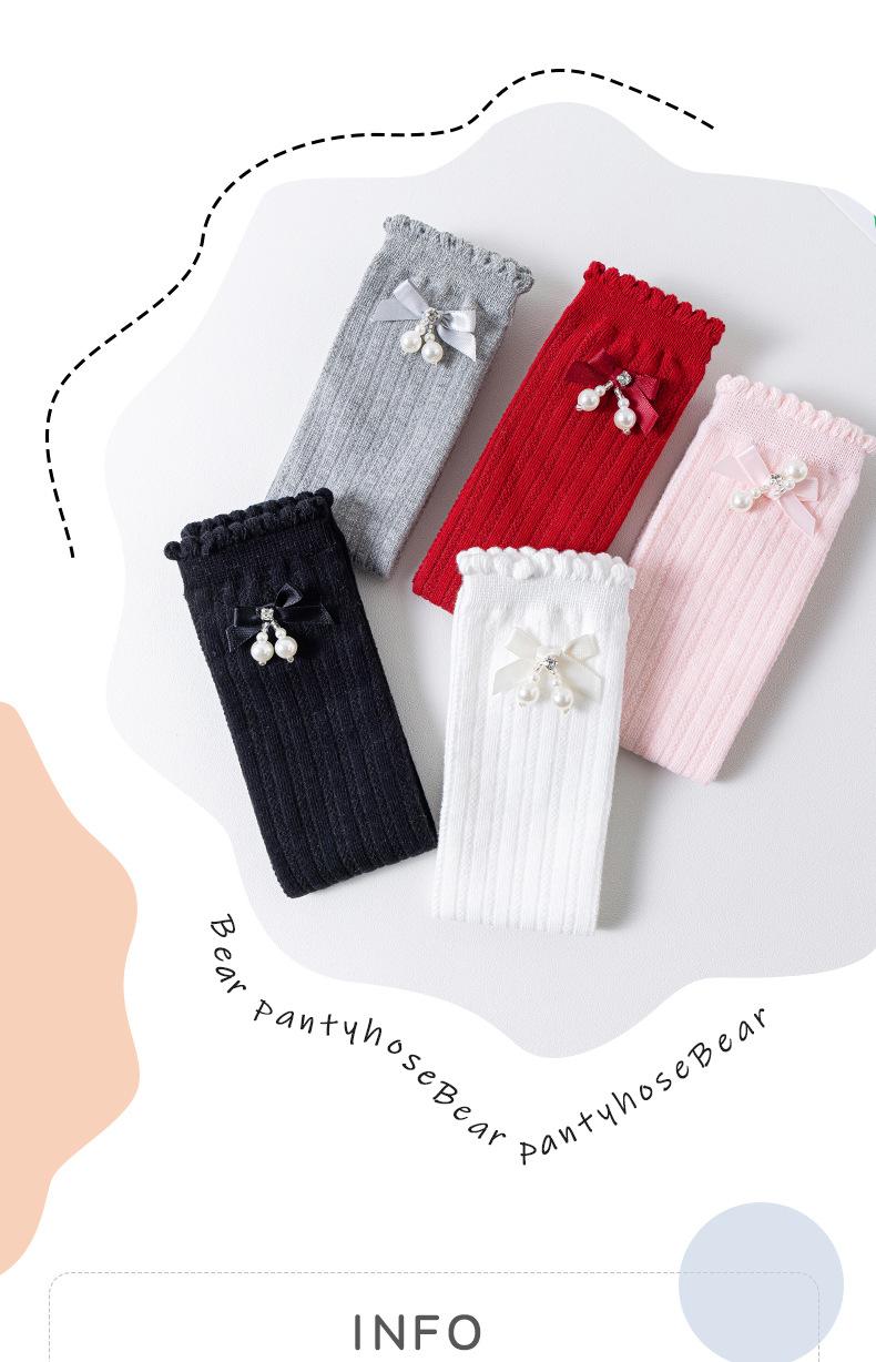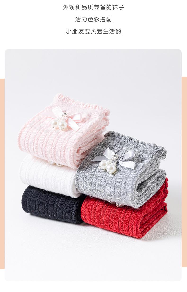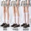 Calcetines para niña primavera y verano de malla delgados hasta la pantorrilla blanco y negro JK modernos lindos moño medias transpirables