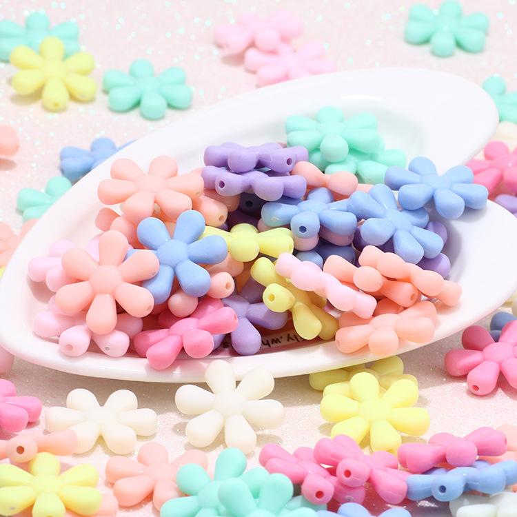 Accesorios de joyería acrílica, cuentas de material artesanal, venta al por mayor, cuentas sueltas de flores de seis pétalos esmeriladas de primavera