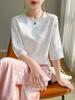 Camisa de satén jacquard de estilo chino para mujer, blusa holgada de verano 2024, camisa sencilla con temperamento