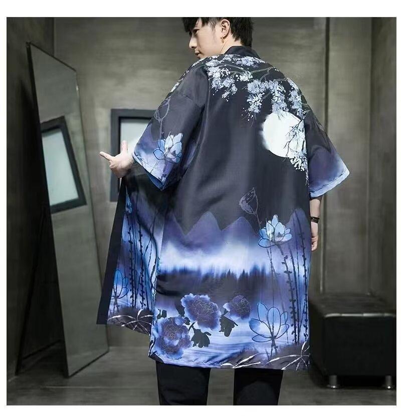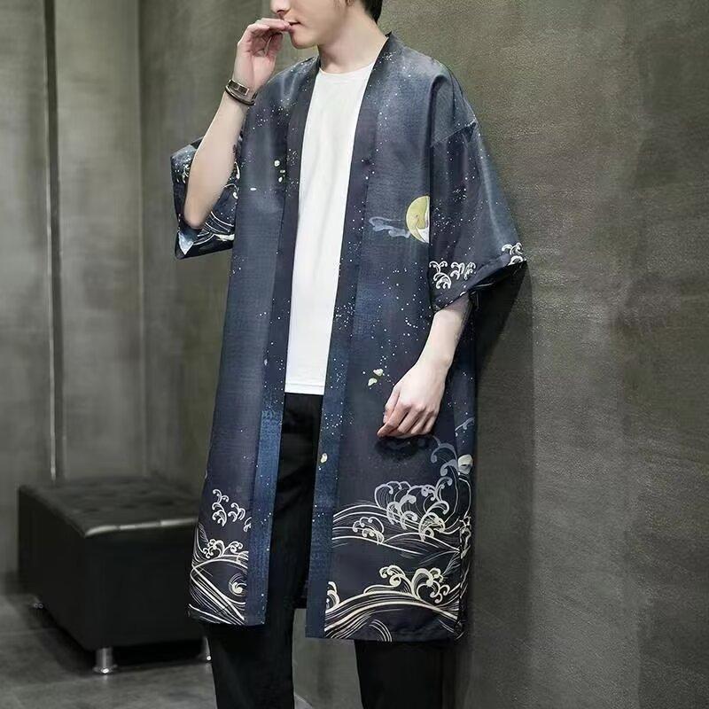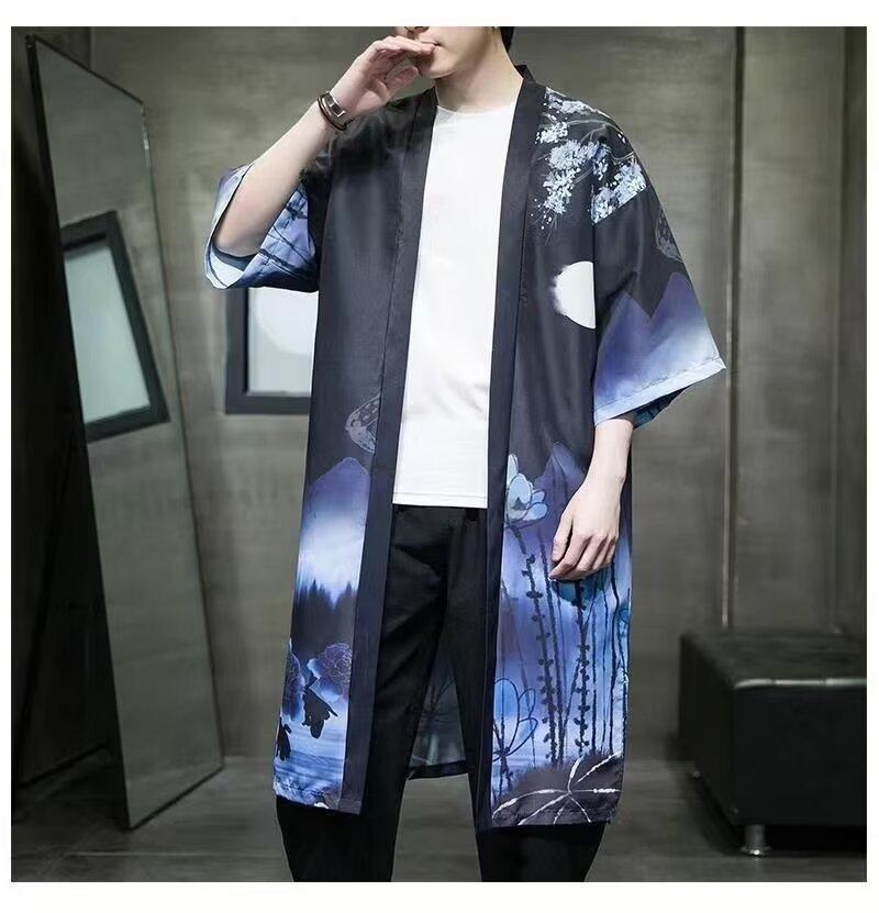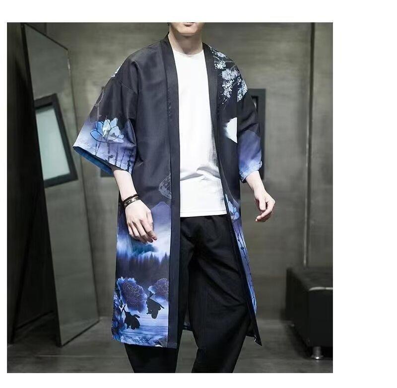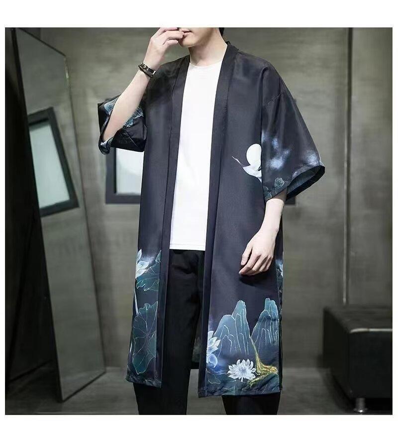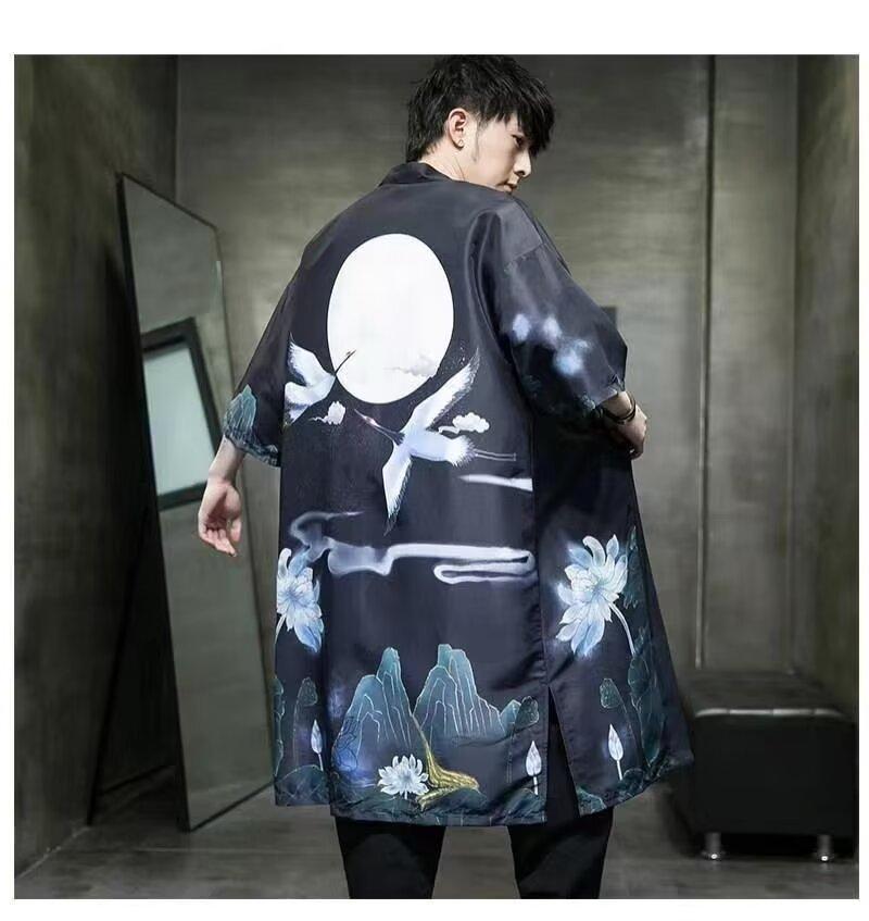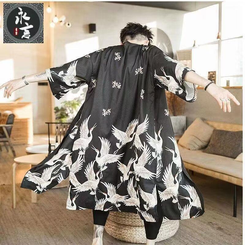 Cárdigan largo holgado estilo kimono capa étnico de grulla verano nuevo vintage Harajuku manga siete cuartos túnica taoísta traje de plumas