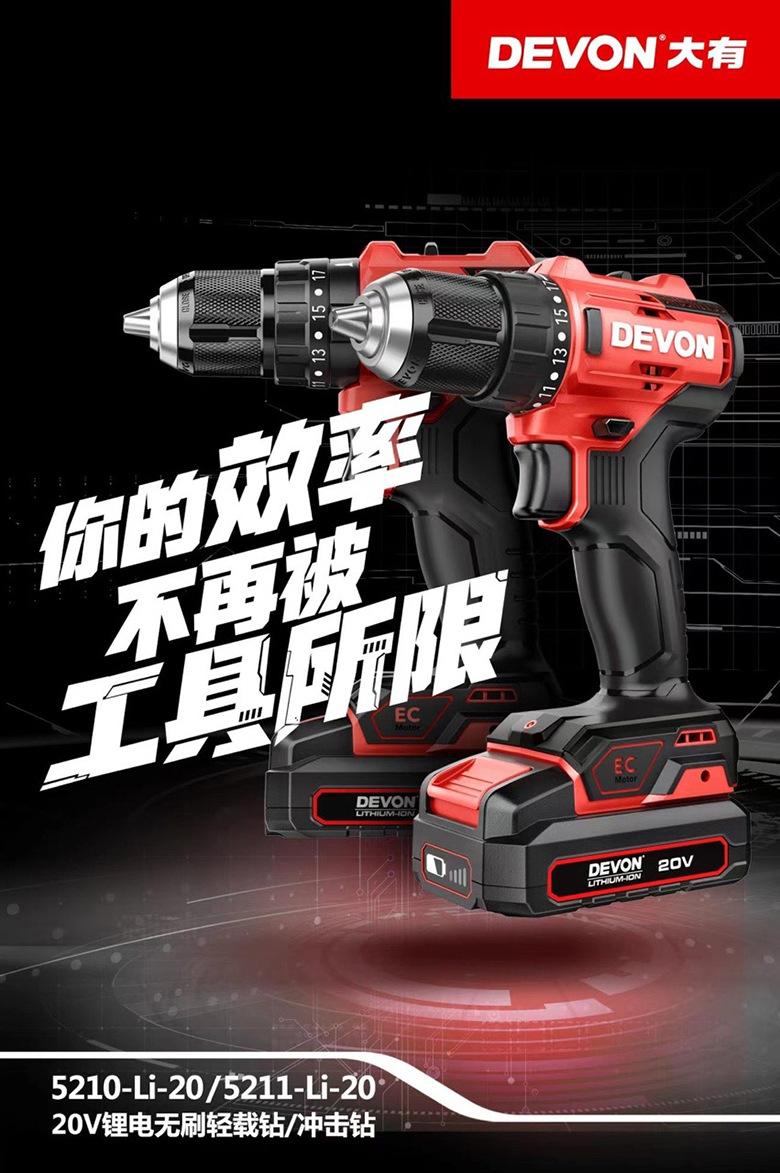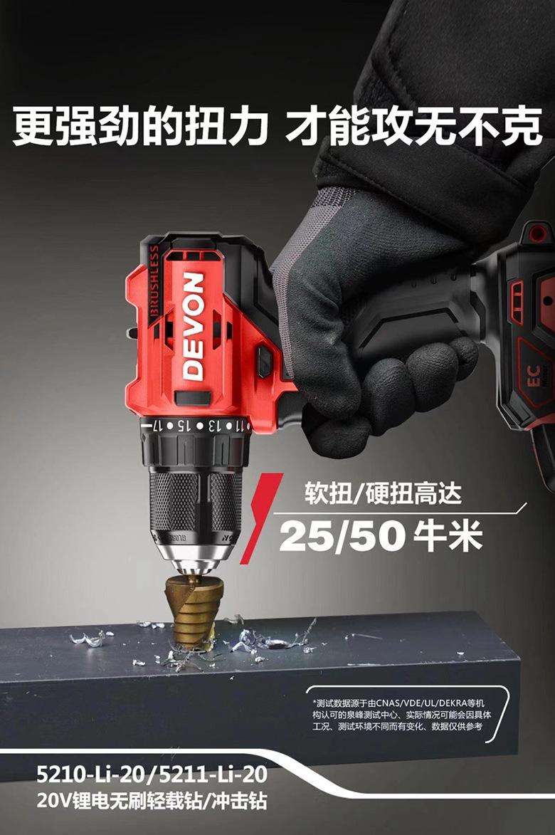 Dayou 5210 Taladro de Mano Eléctrico de Litio Recargable Sin Escobillas Taladro de Impacto Herramienta Eléctrica Multifuncional Taladro de Pistola