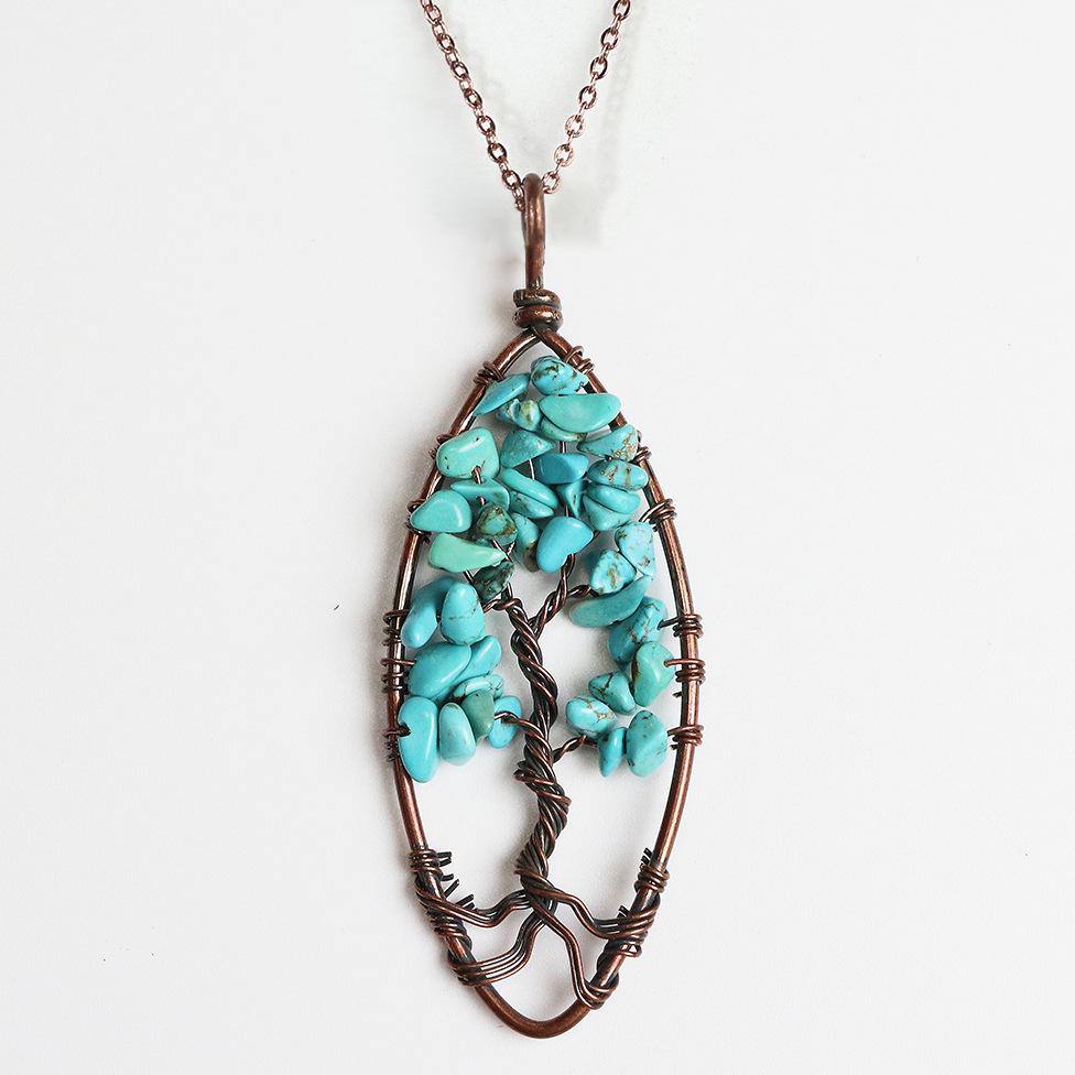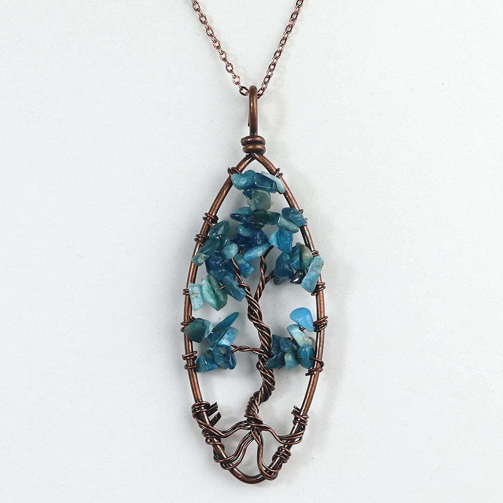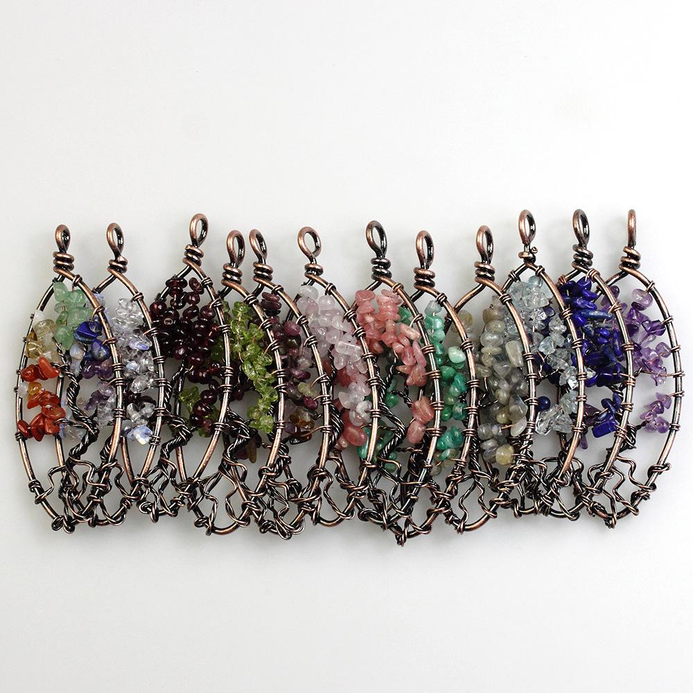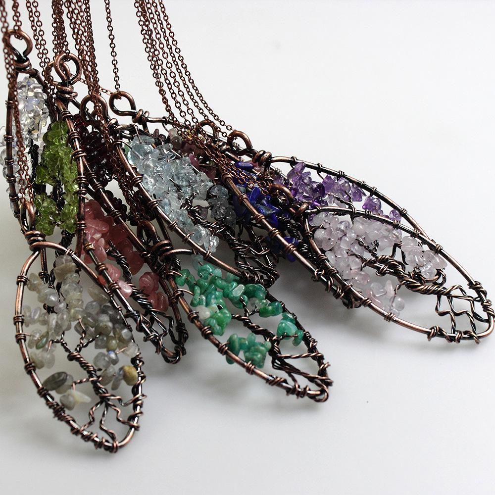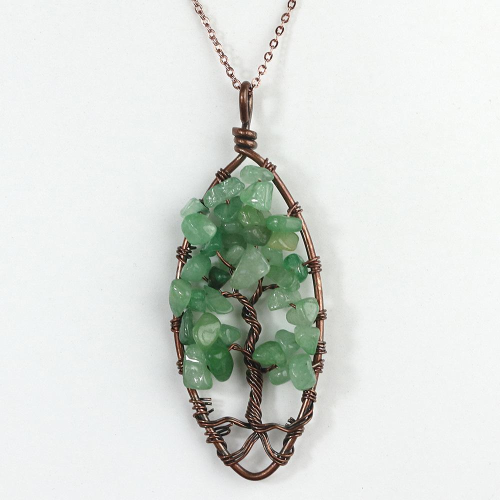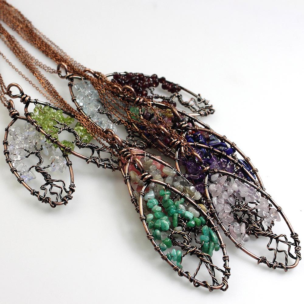Collar con colgante de árbol de la vida con ojo de caballo, de bronce y grava de cristal, venta al por mayor de joyas de comercio exterior transfronterizo de Amazon y eBay.