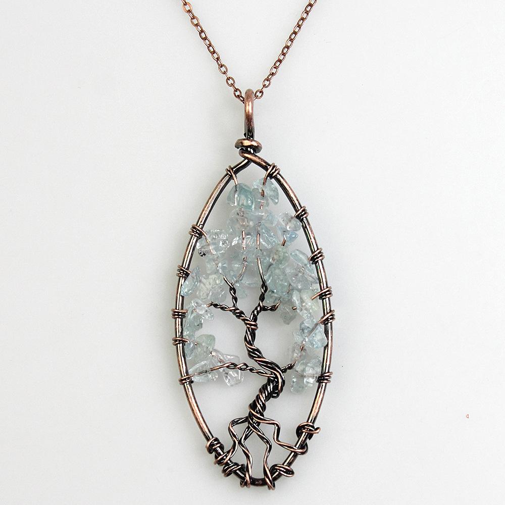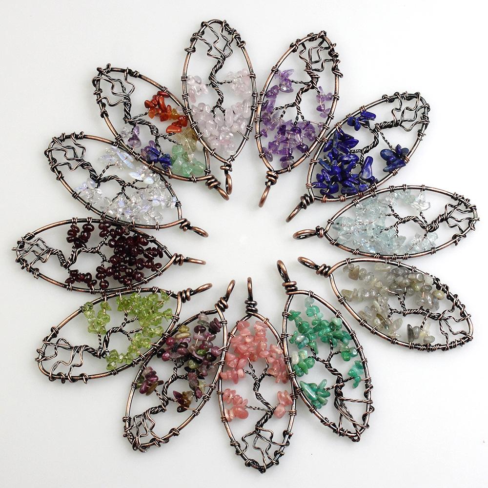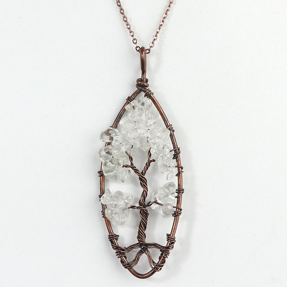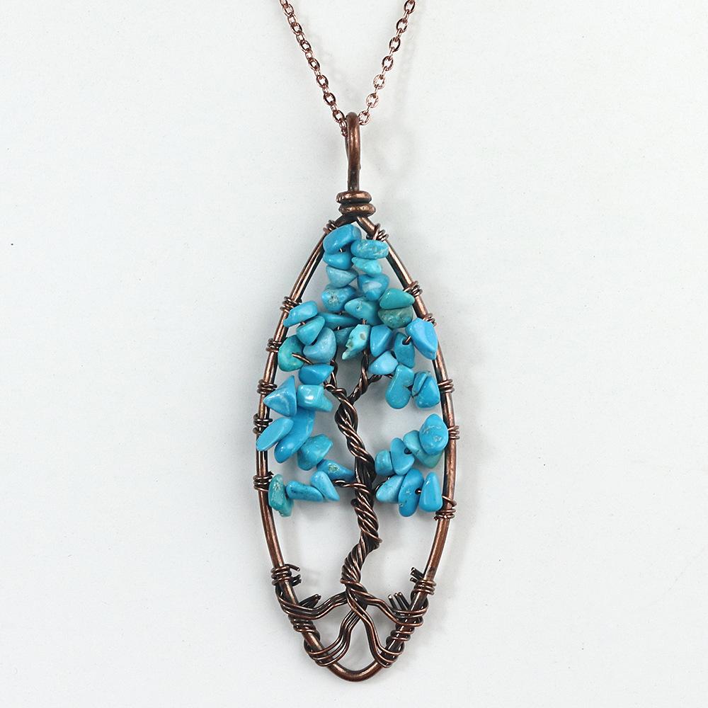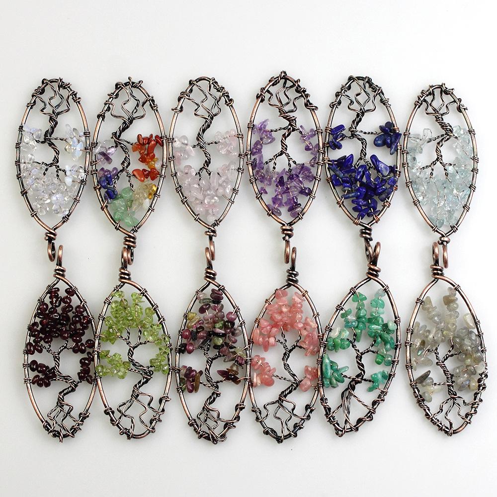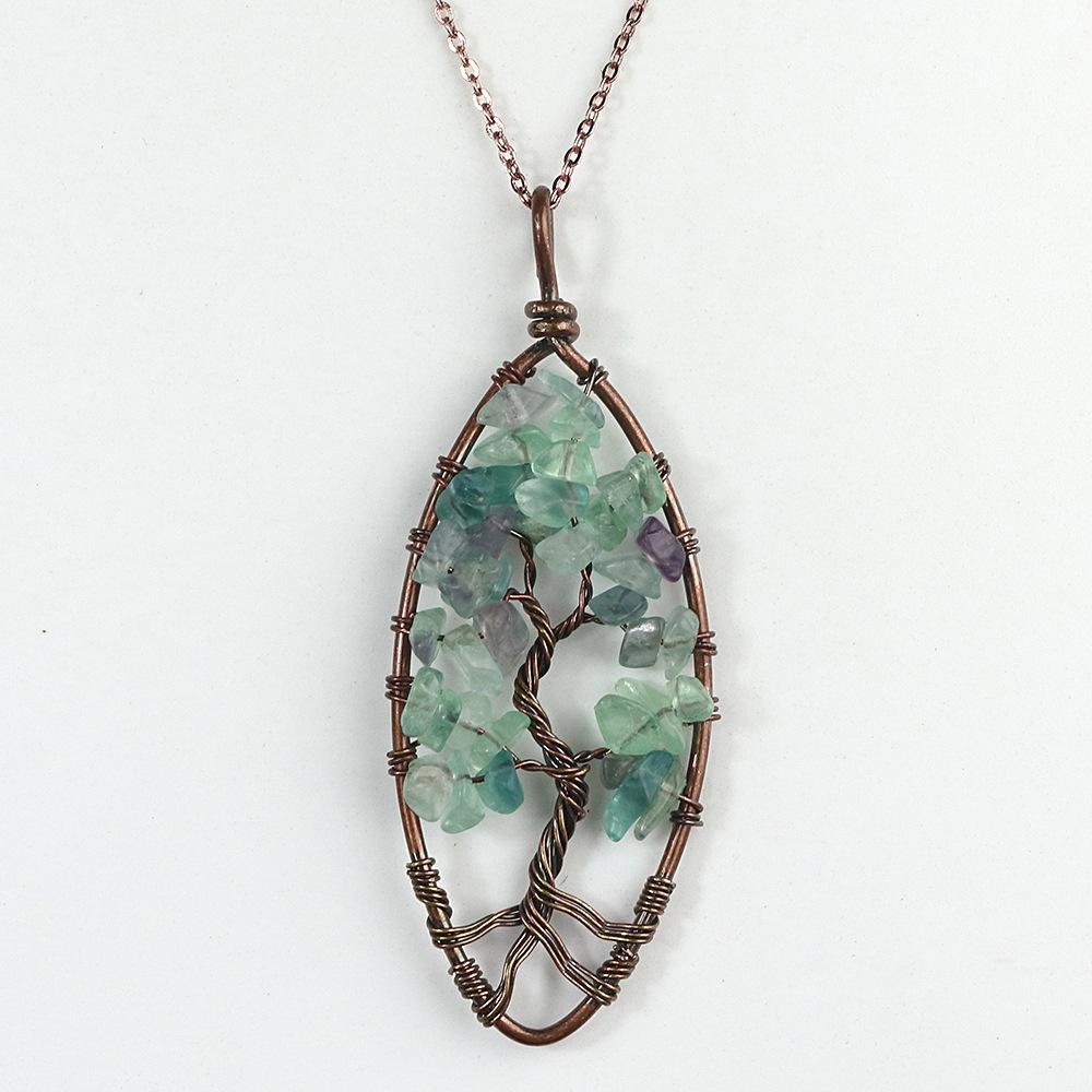 Collar con colgante de árbol de la vida con ojo de caballo, de bronce y grava de cristal, venta al por mayor de joyas de comercio exterior transfronterizo de Amazon y eBay.
