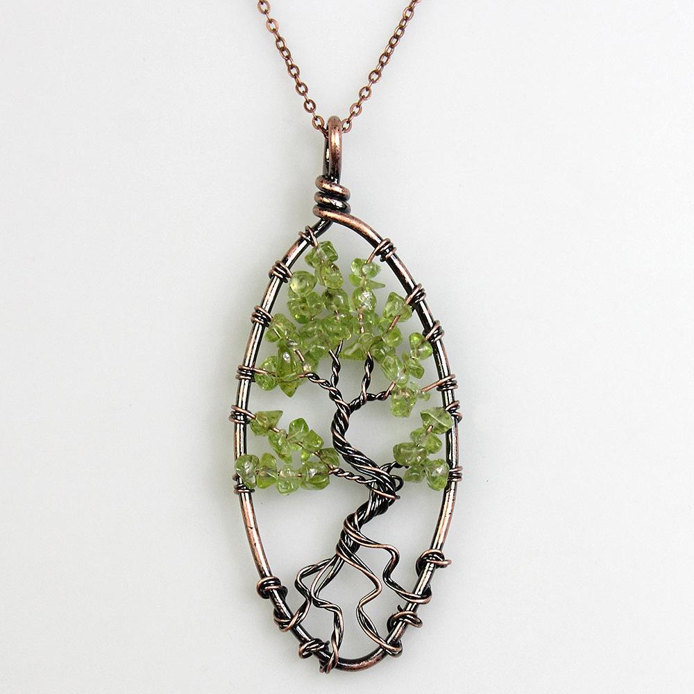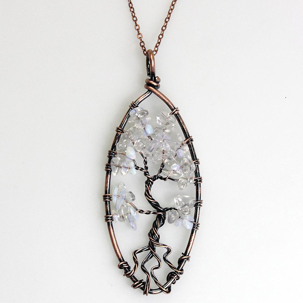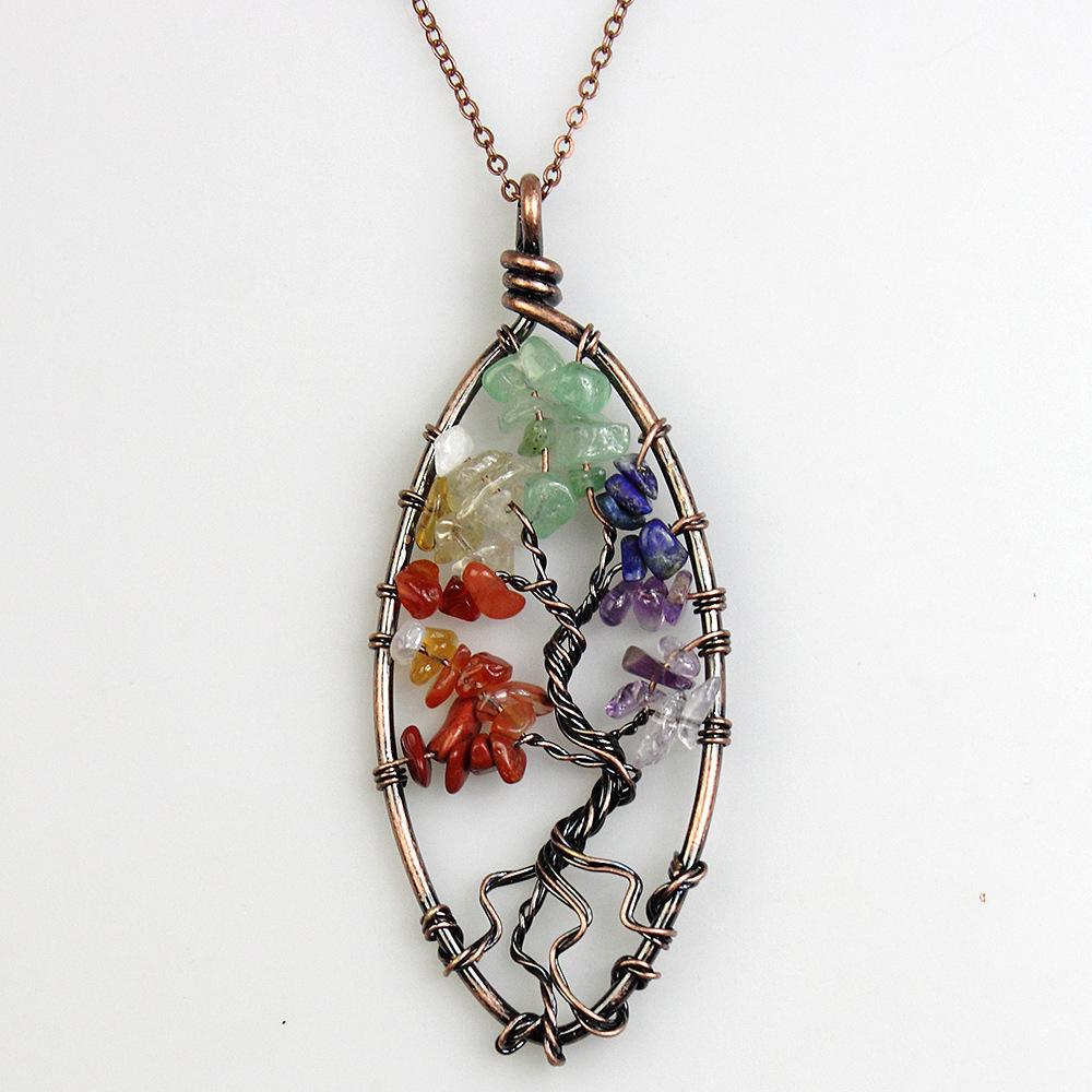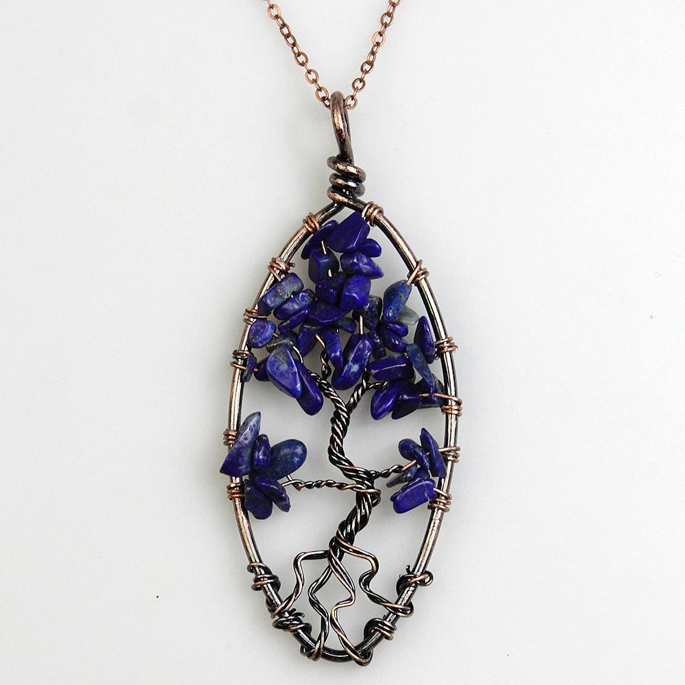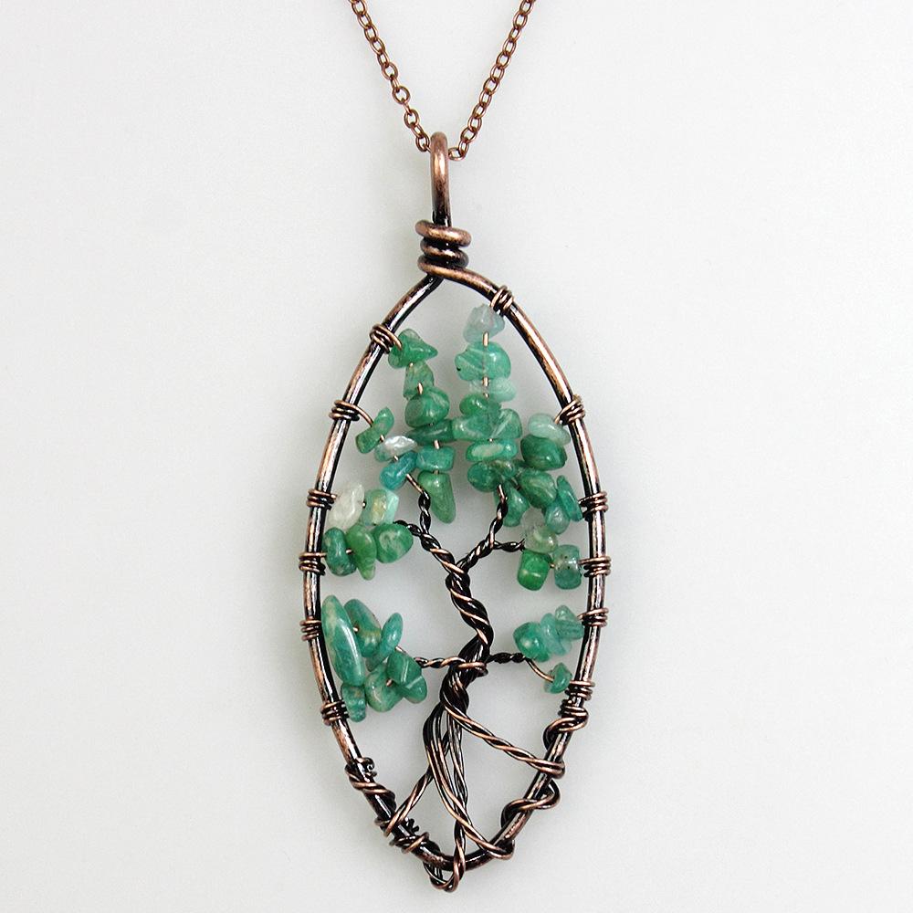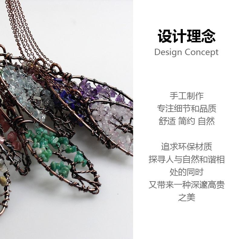 Collar con colgante de árbol de la vida con ojo de caballo, de bronce y grava de cristal, venta al por mayor de joyas de comercio exterior transfronterizo de Amazon y eBay.