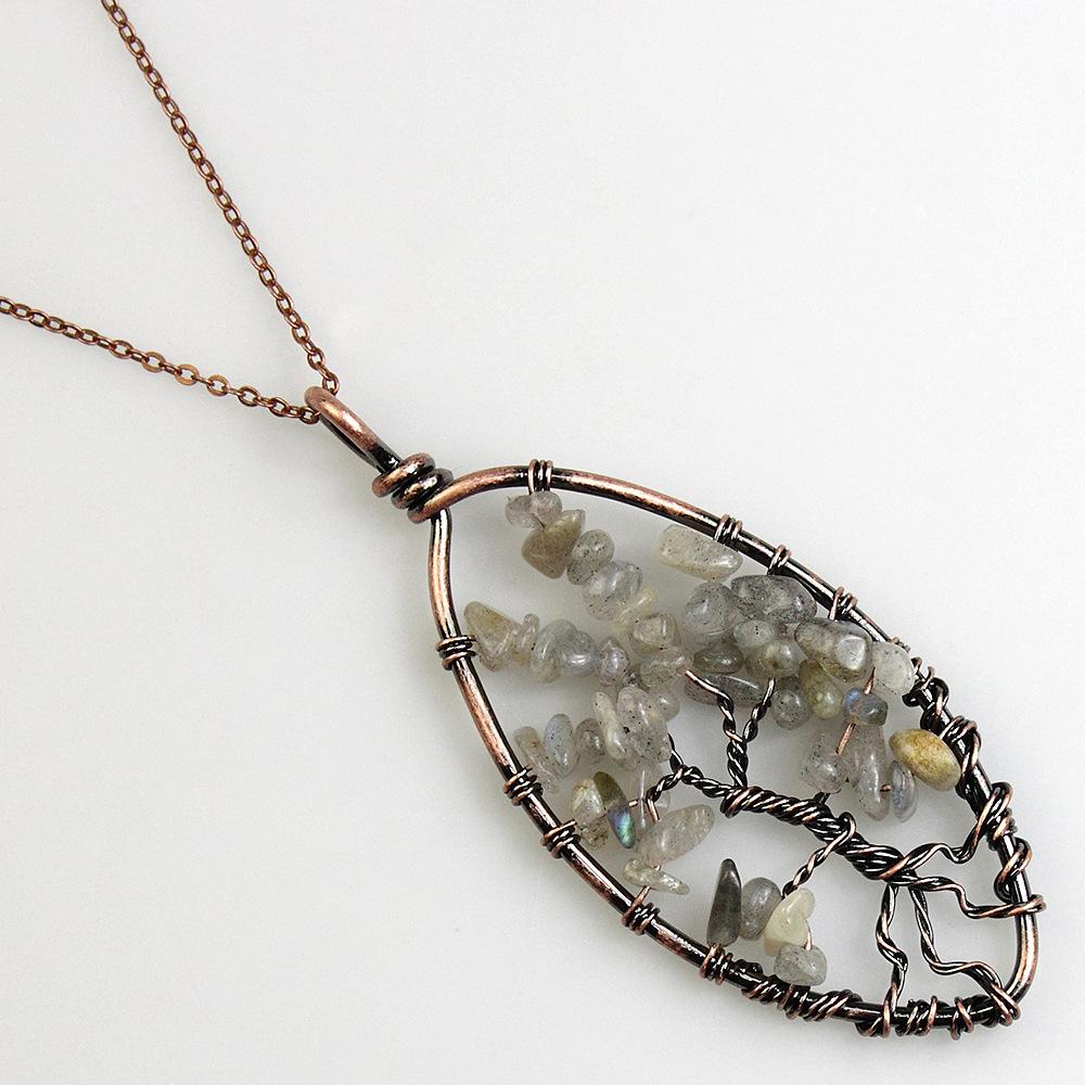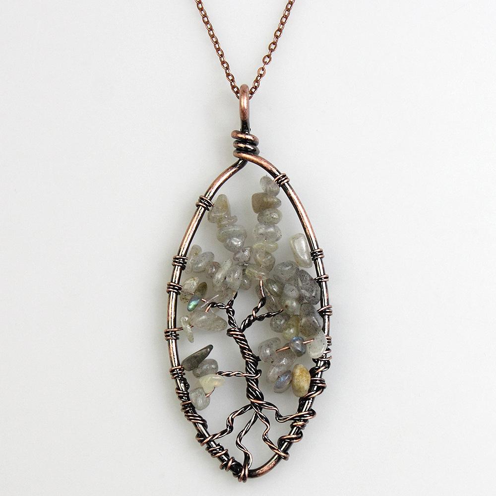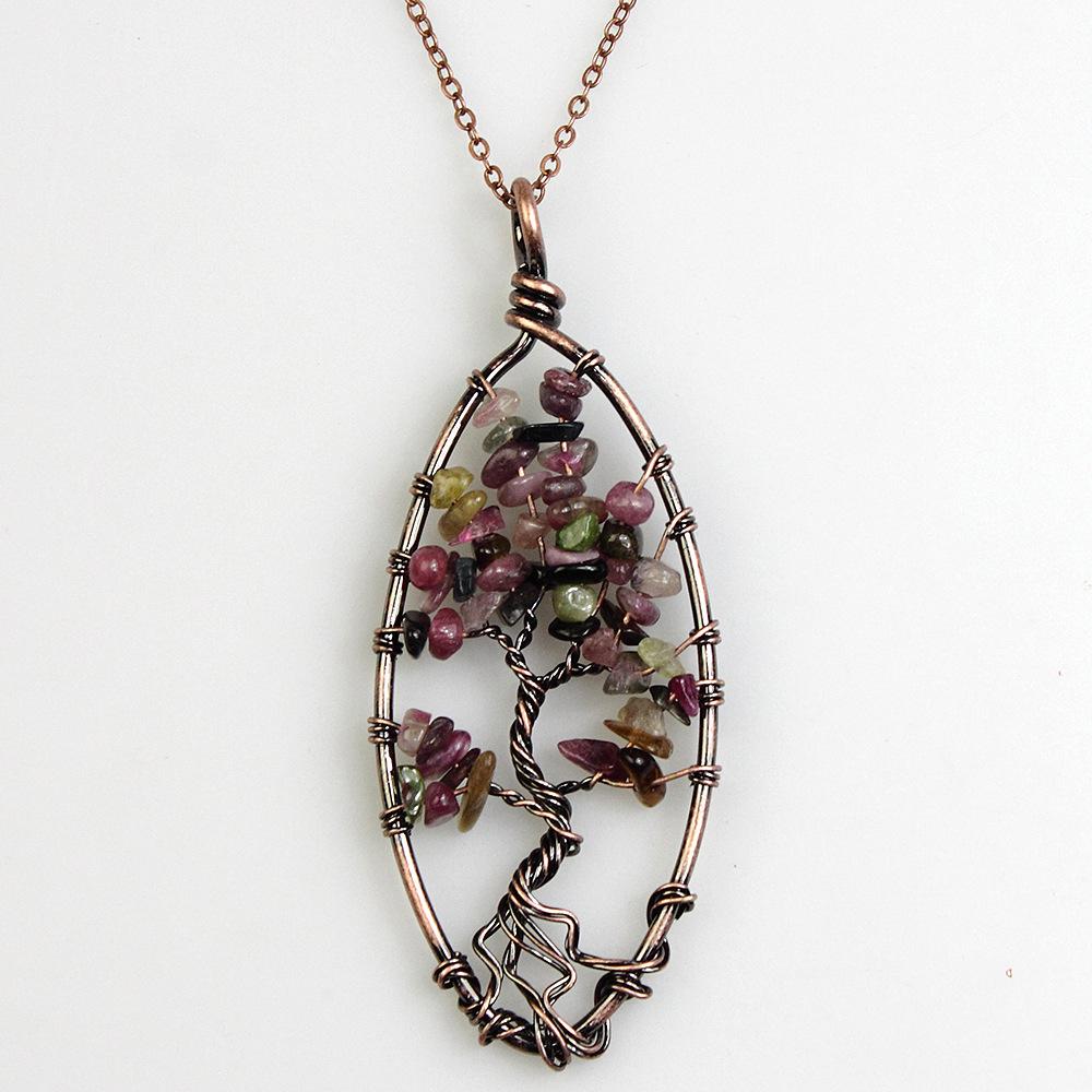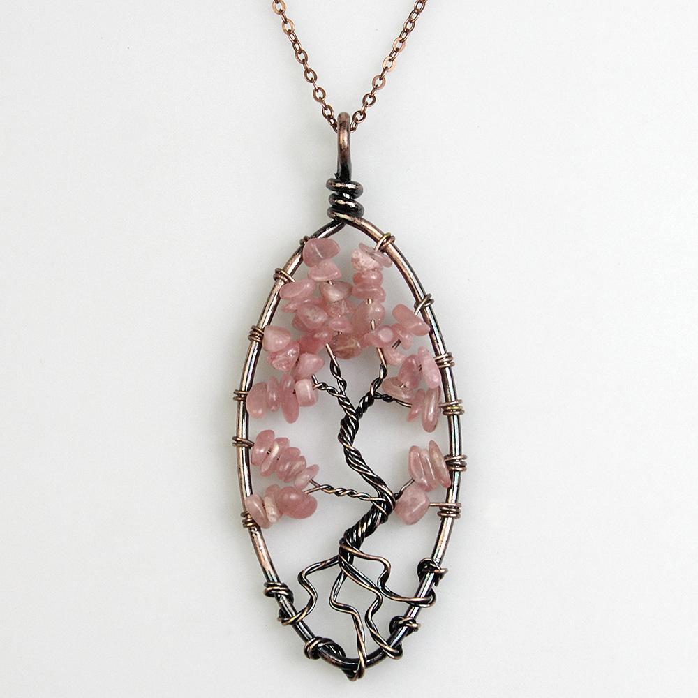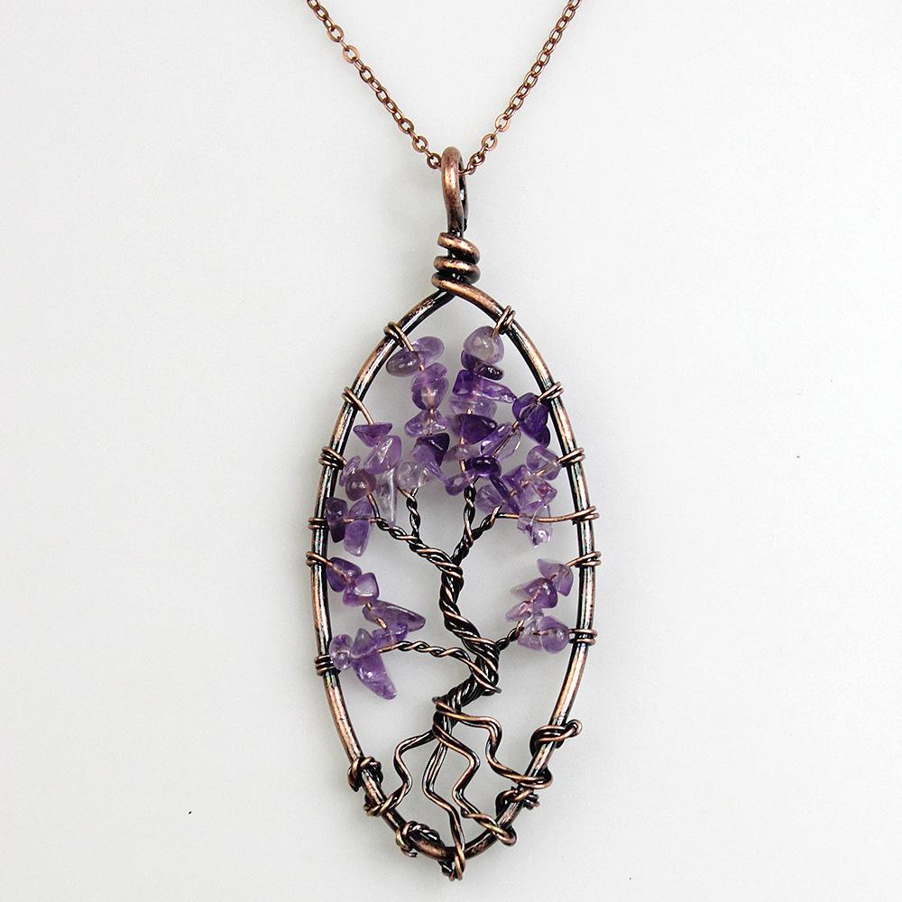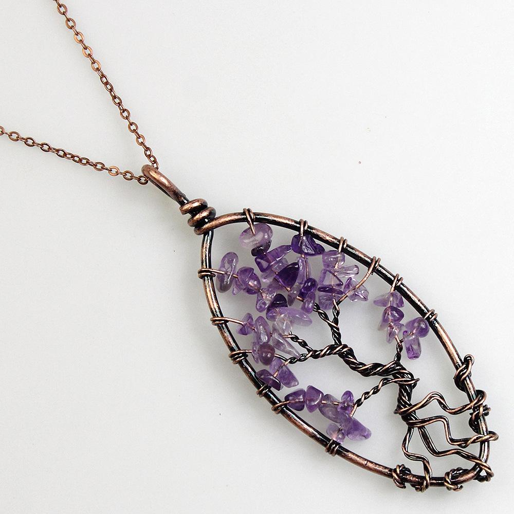 Collar con colgante de árbol de la vida con ojo de caballo, de bronce y grava de cristal, venta al por mayor de joyas de comercio exterior transfronterizo de Amazon y eBay.