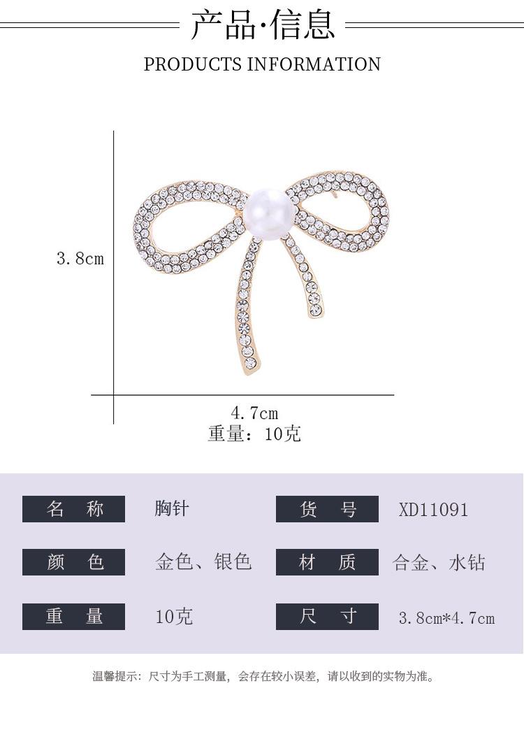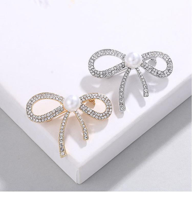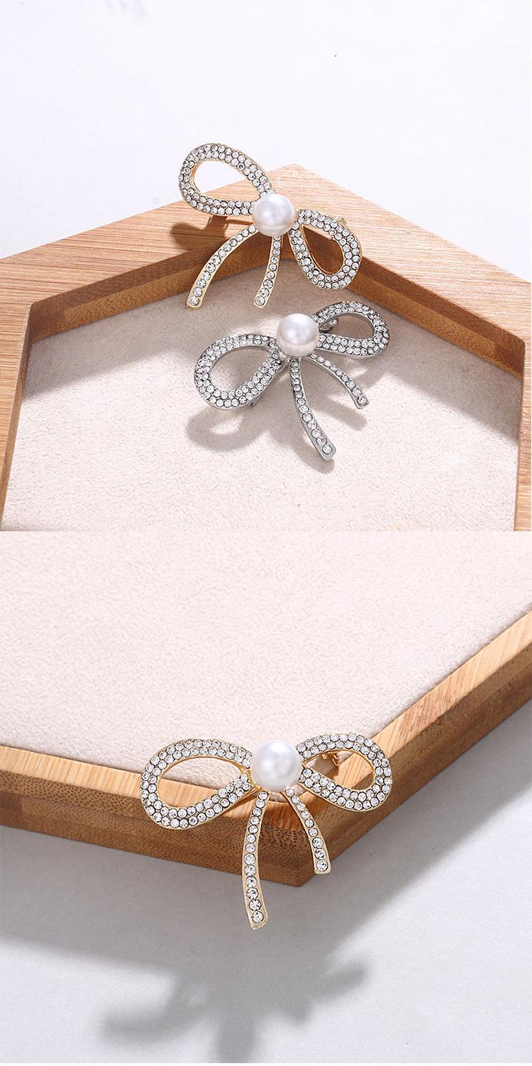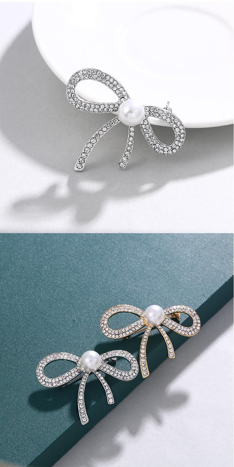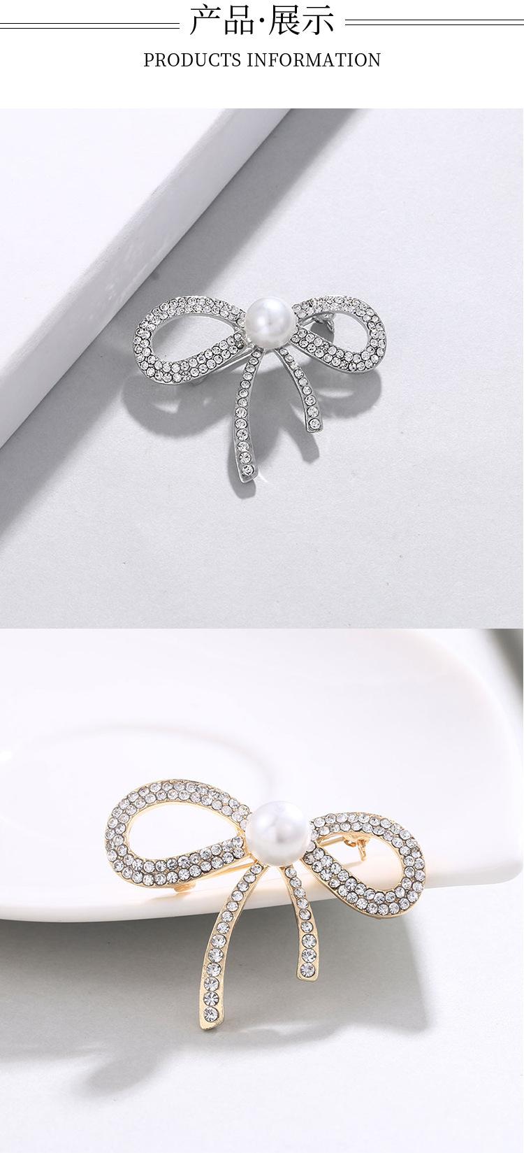 Venta caliente de lazo de perla blanca de estilo coreano con broche de diamantes con diamantes, ramillete de ropa de alta gama, alfileres de joyería para ropa que combinan con todo.