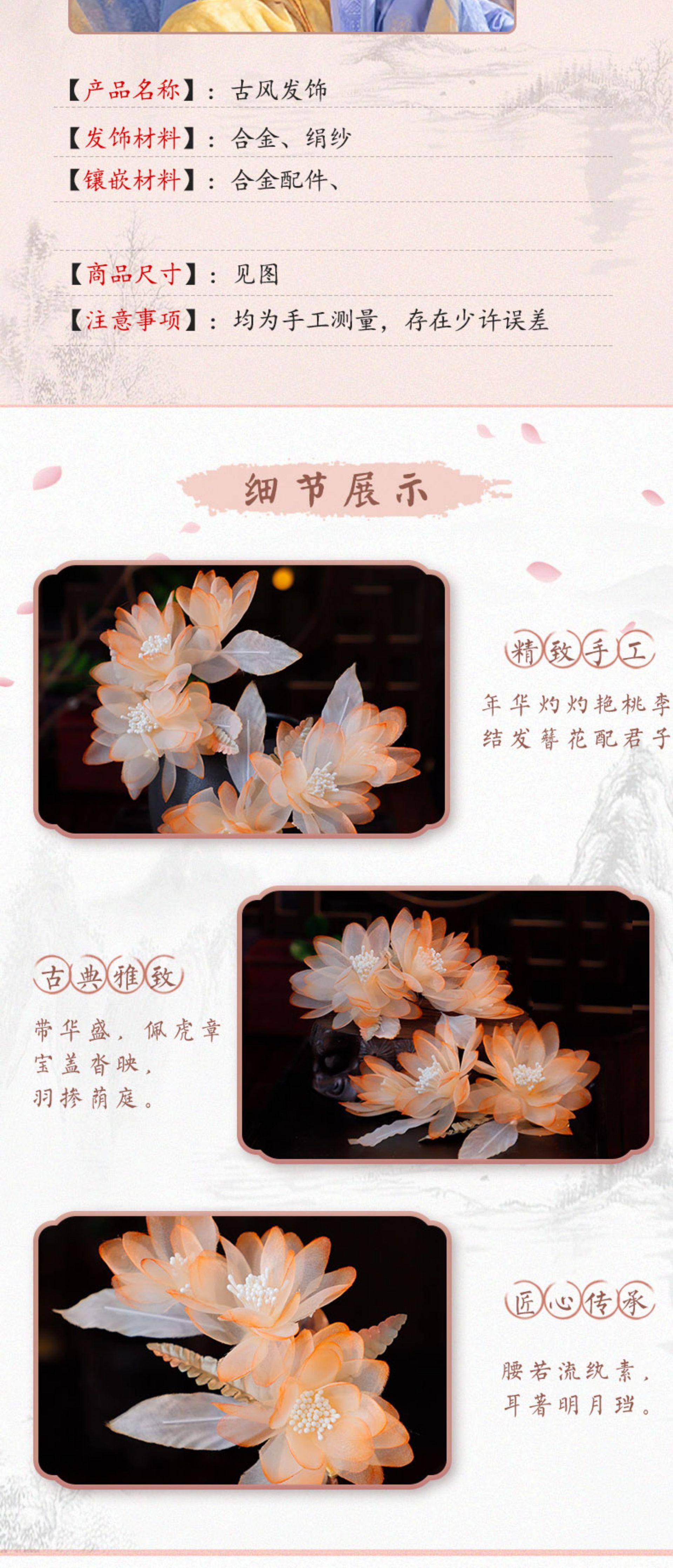 Flor de gasa de seda antigua flor temperamento elegante par clip retro corte naranja hilo de seda flor horquilla todo-fósforo clip lateral accesorios para el cabello