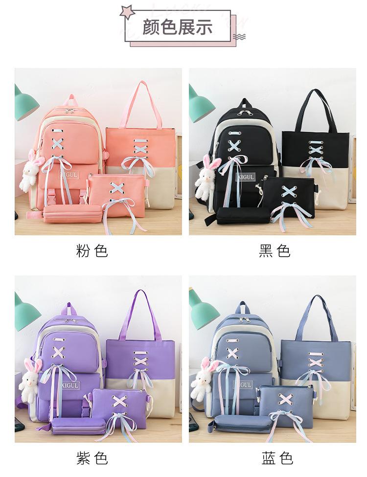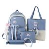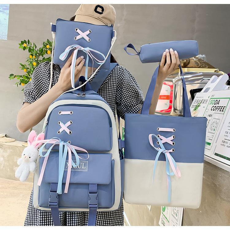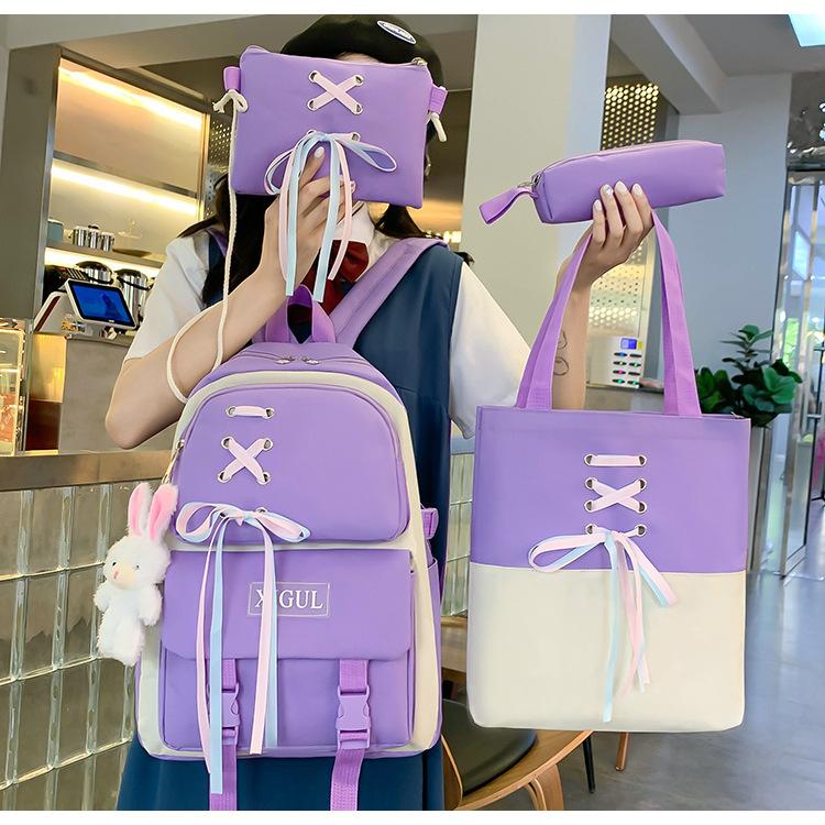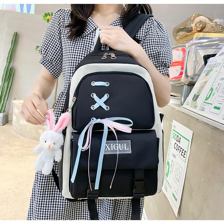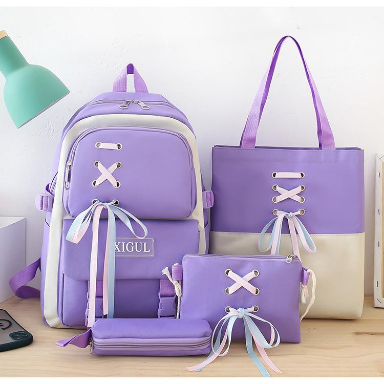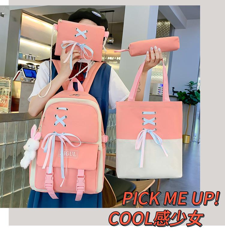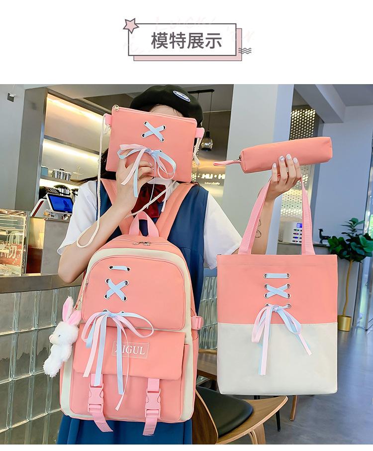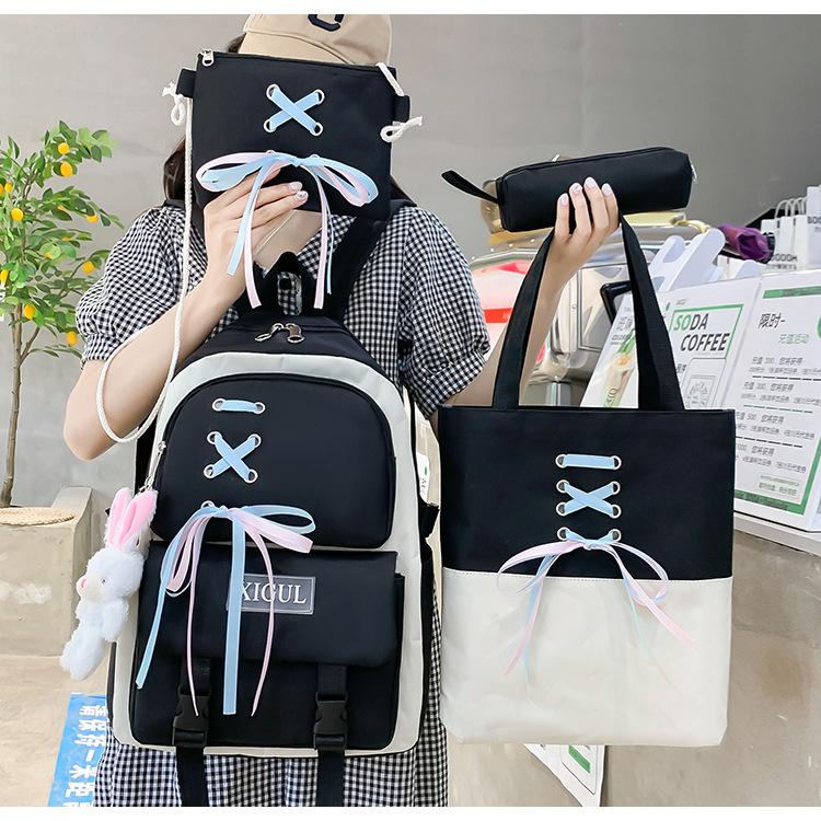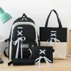 Mochila de nailon estilo coreano Harajuku para mujer, de gran capacidad, de cuatro piezas, para estudiantes de secundaria, con lazo de cinta