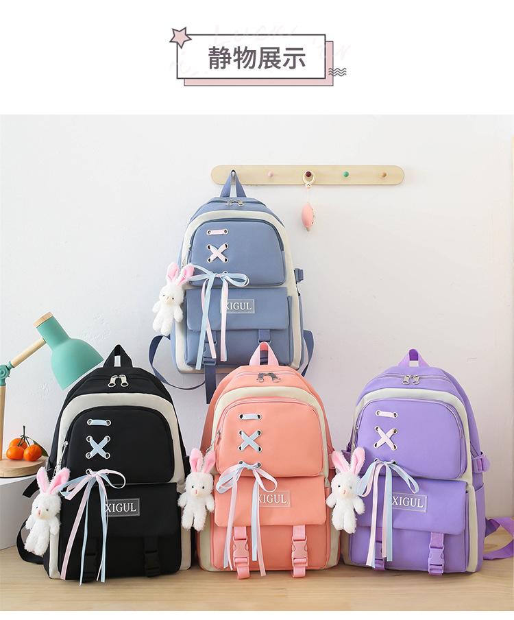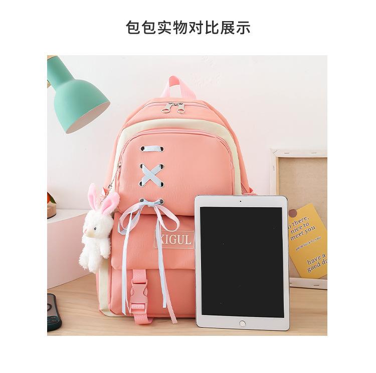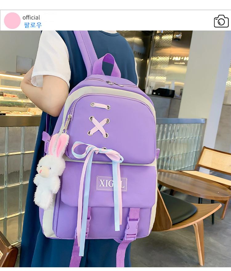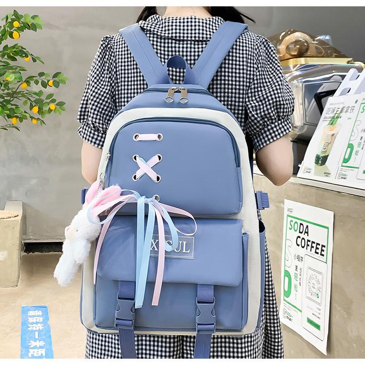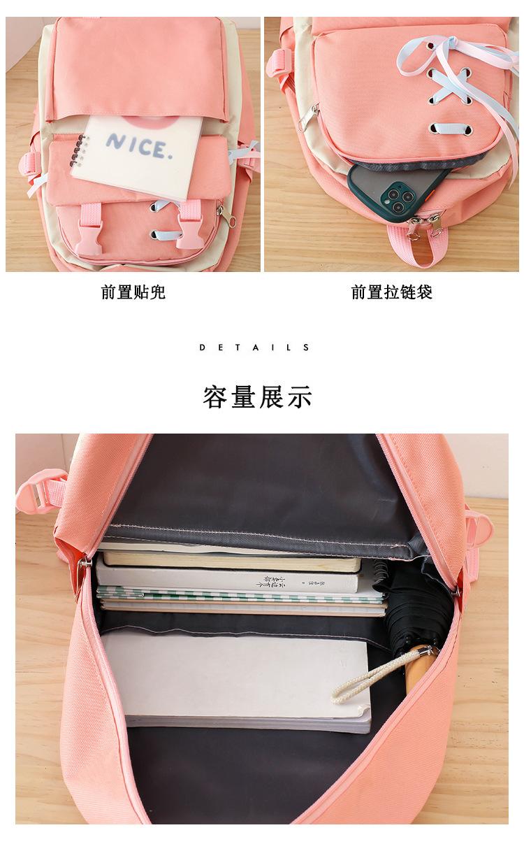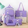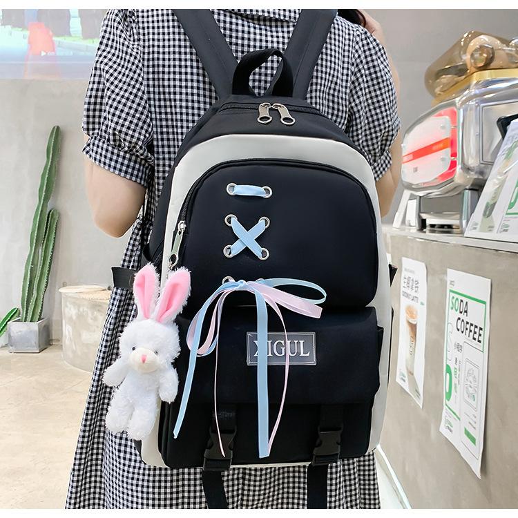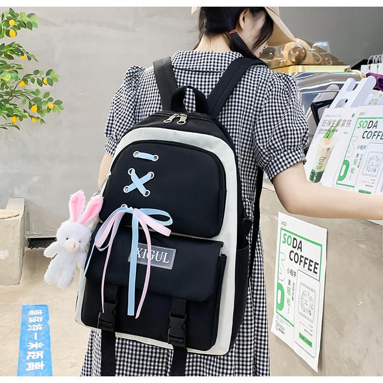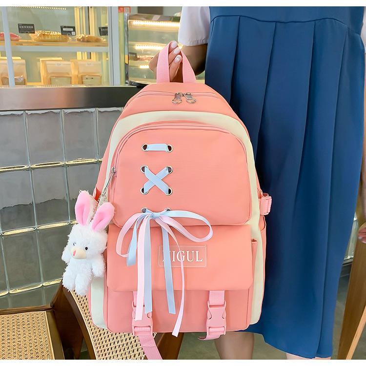 Mochila de nailon estilo coreano Harajuku para mujer, de gran capacidad, de cuatro piezas, para estudiantes de secundaria, con lazo de cinta