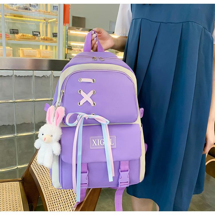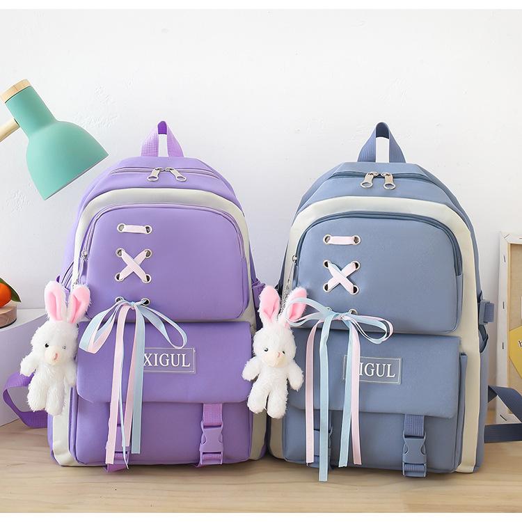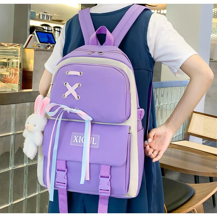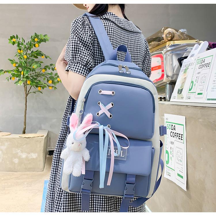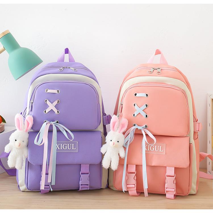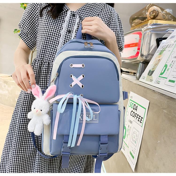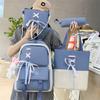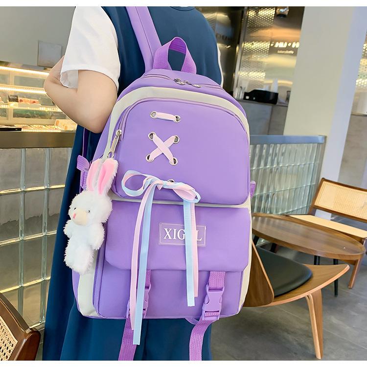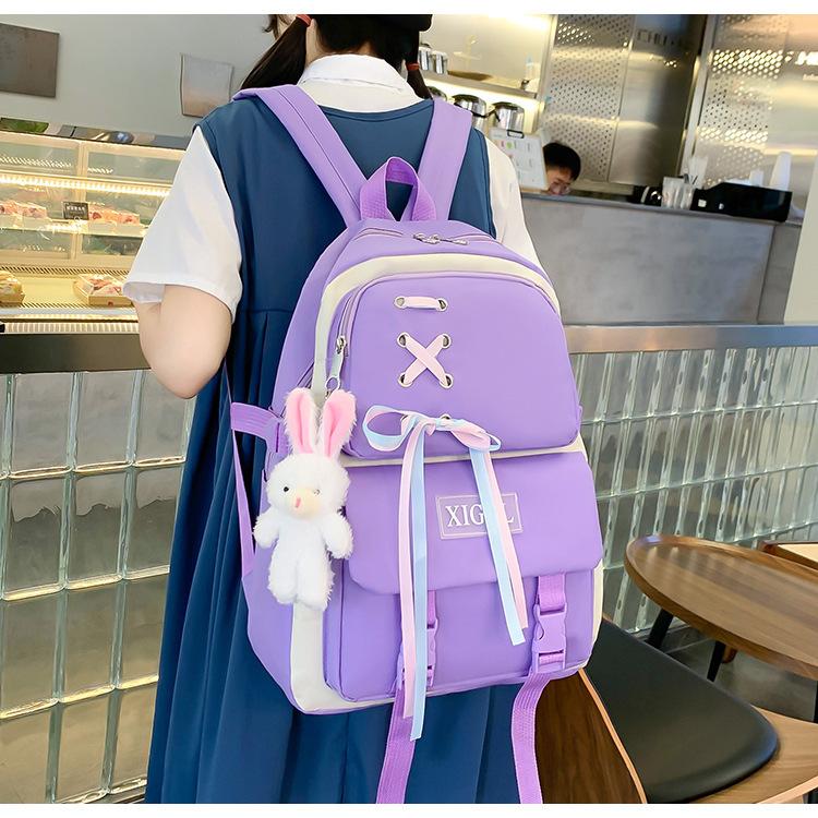 Mochila de nailon estilo coreano Harajuku para mujer, de gran capacidad, de cuatro piezas, para estudiantes de secundaria, con lazo de cinta