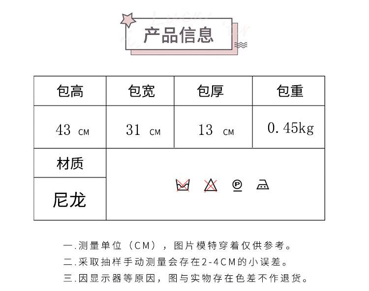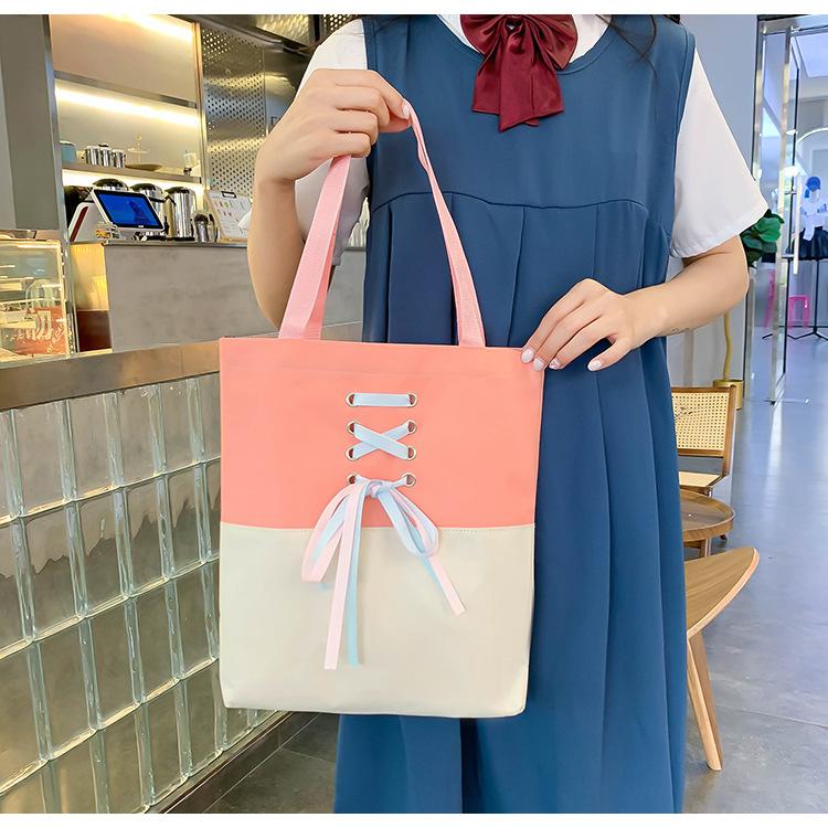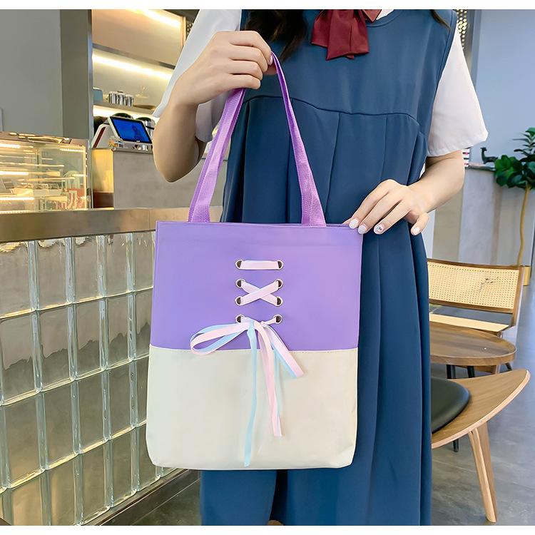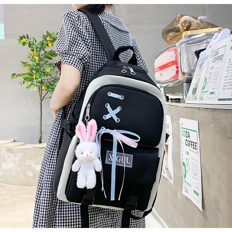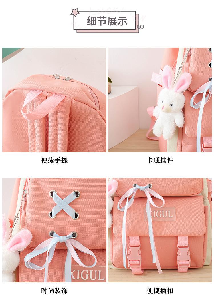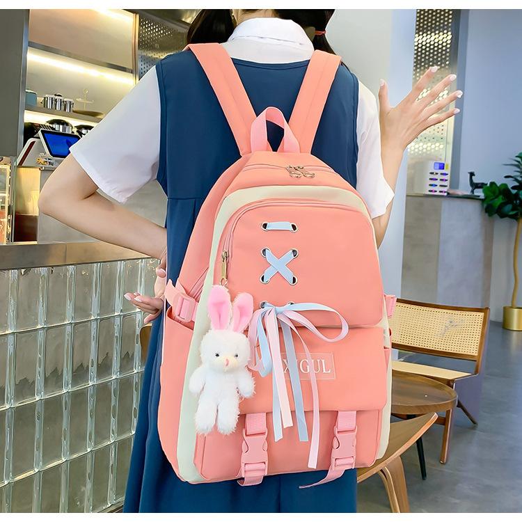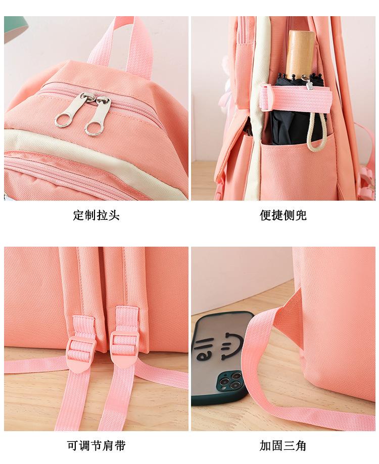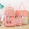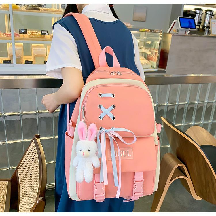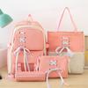 Mochila de nailon estilo coreano Harajuku para mujer, de gran capacidad, de cuatro piezas, para estudiantes de secundaria, con lazo de cinta