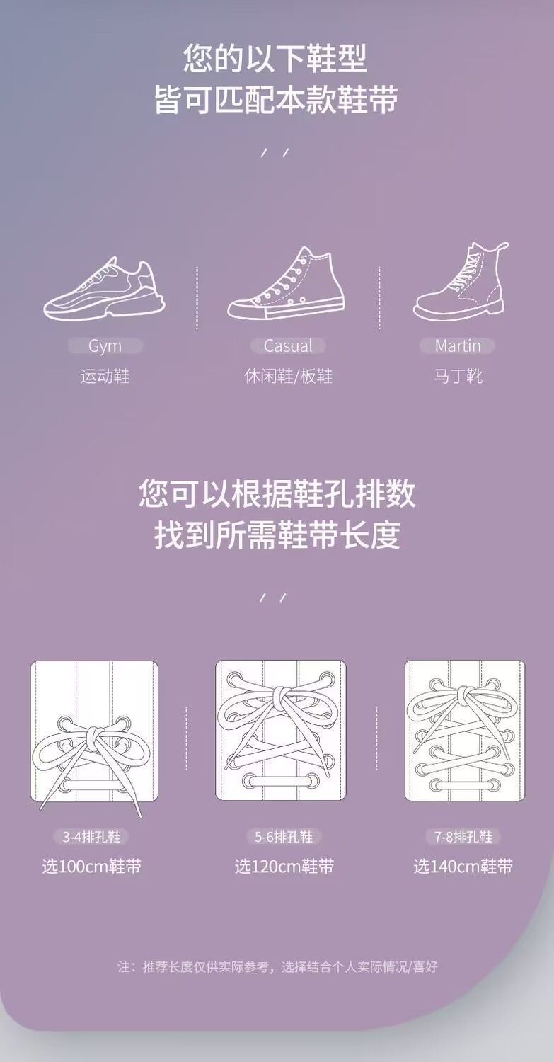 100cm (5 pairs of shoe holes recommended), 120cm (6 pairs of shoe holes recommended), 140cm (7 pairs of shoe h...