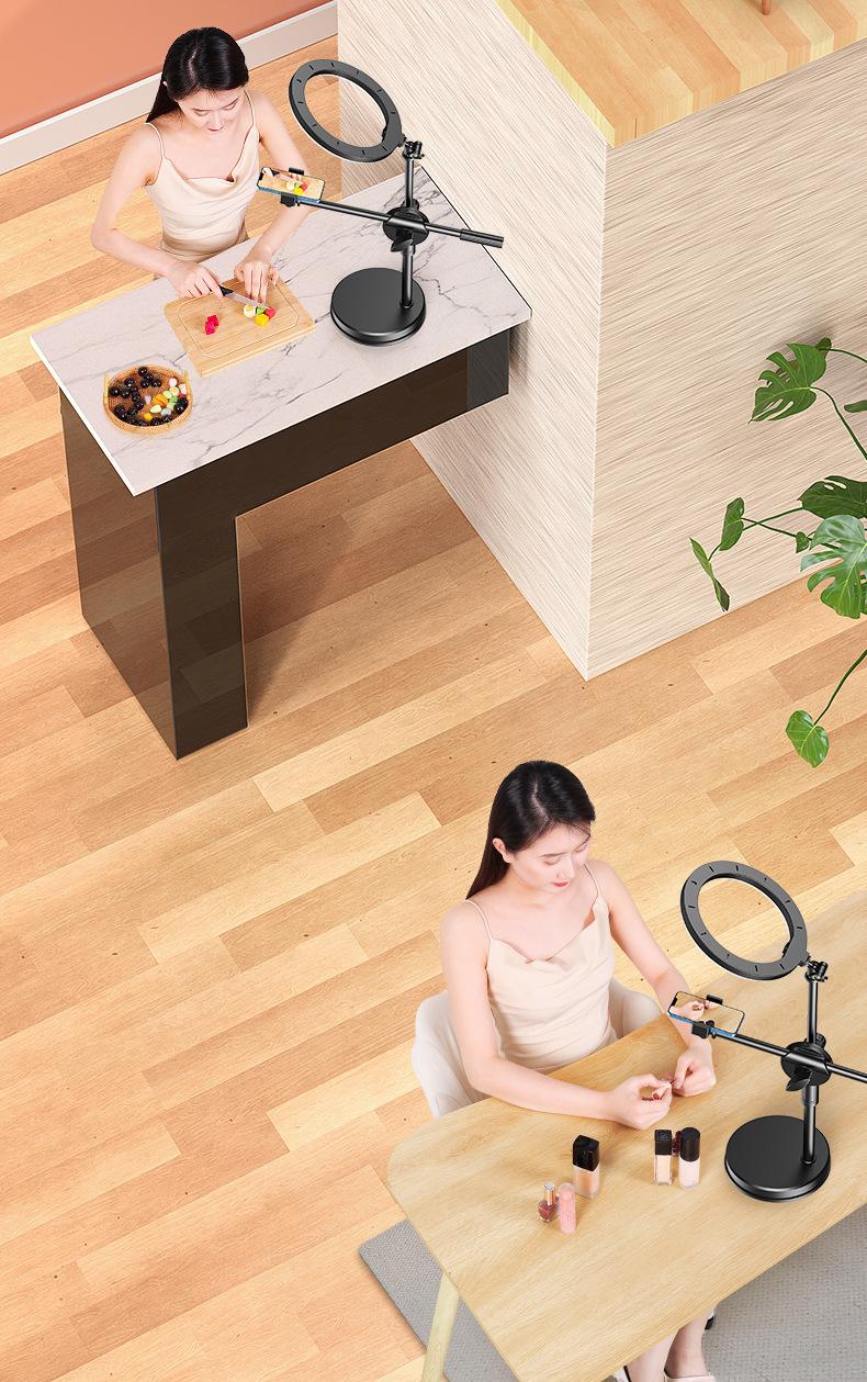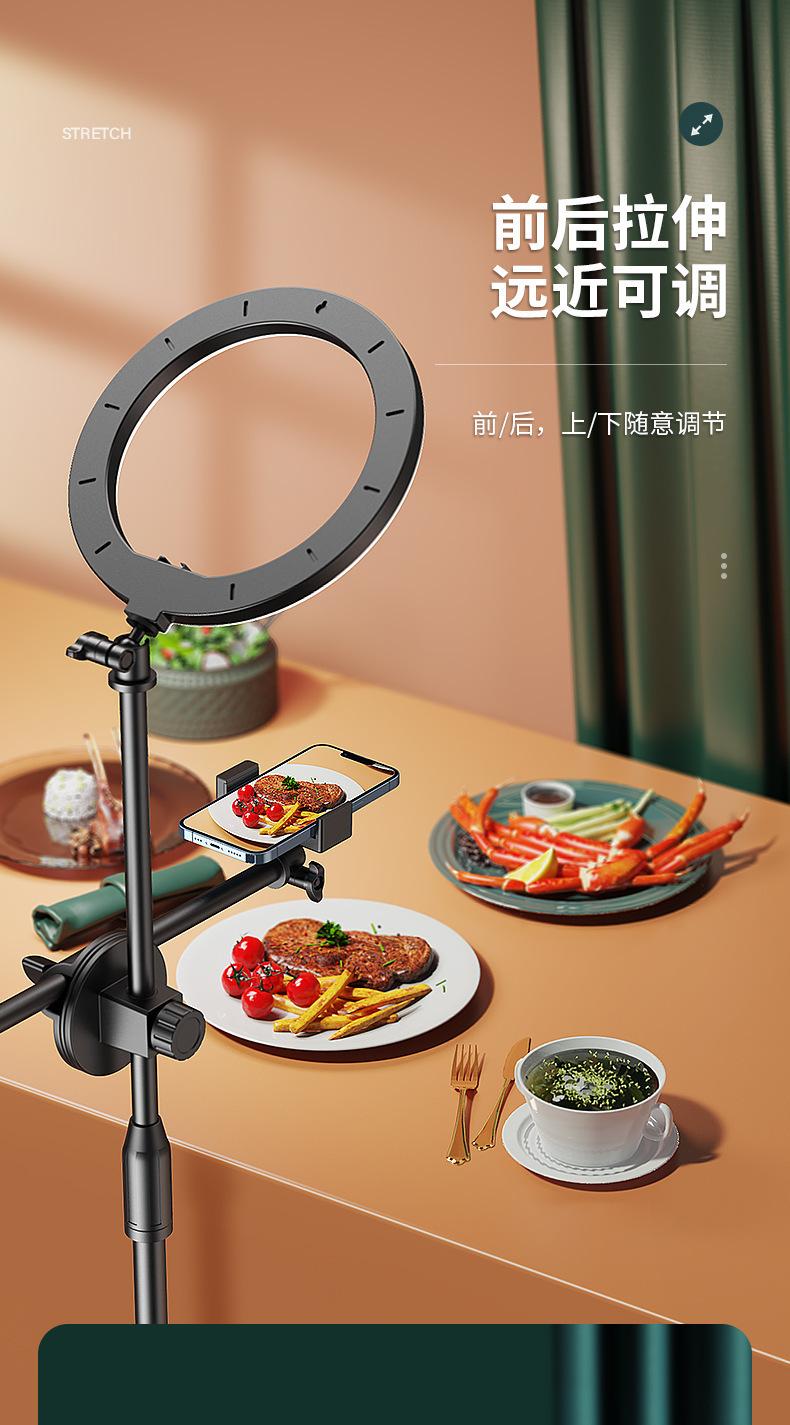Soporte para transmisión en vivo de TikTok Soporte para teléfono móvil de escritorio elevación multifunción soporte con luz de relleno giratorio grabación vertical soporte para transmisión en vivo