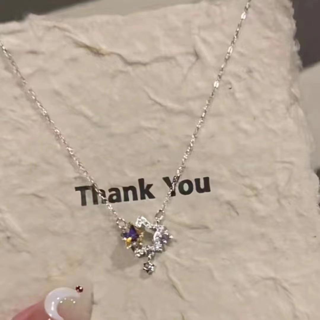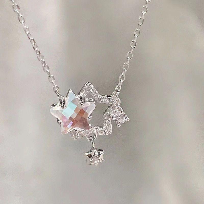 Nuevo Collar Brillante Géminis para Mujer Diseño Nicho Ins Cadena Clavícula de Alta Gama Verano Regalo para Novia