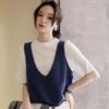 Chaleco de punto para mujer, nuevo chaleco de punto cruzado de primavera y otoño, coreano, con cuello en V, sin mangas, pequeño, para mujer