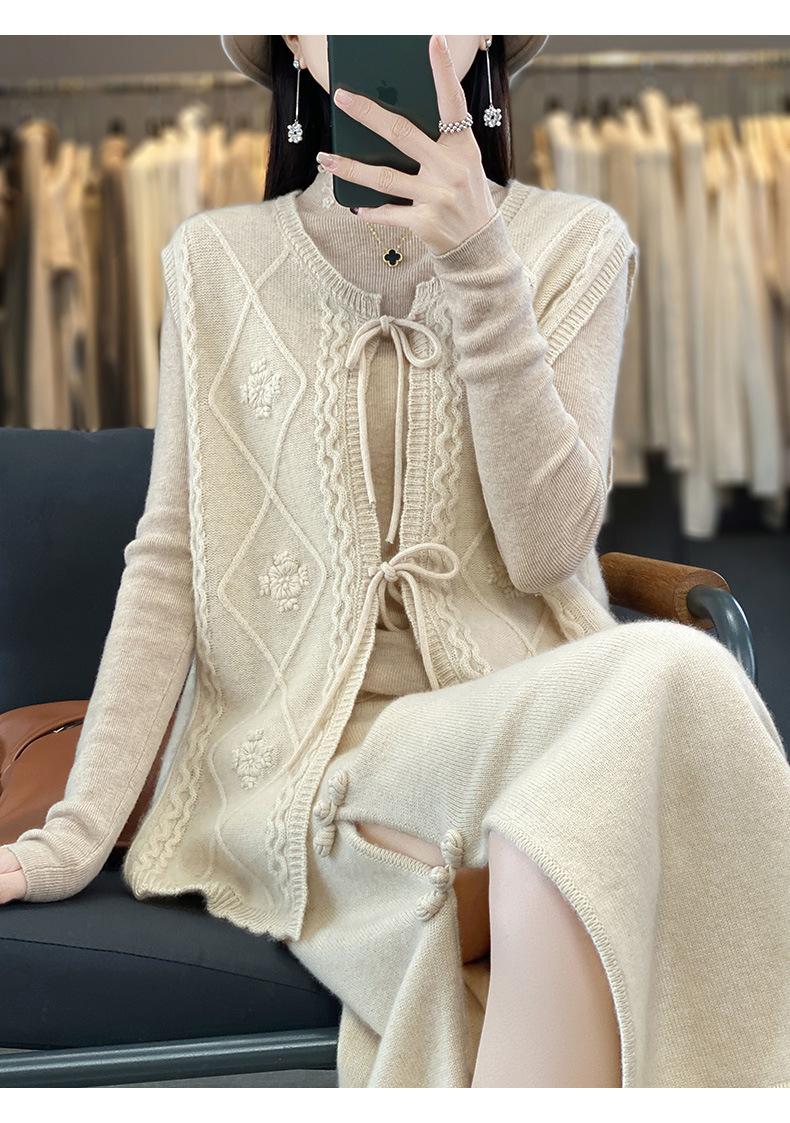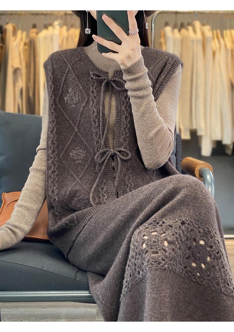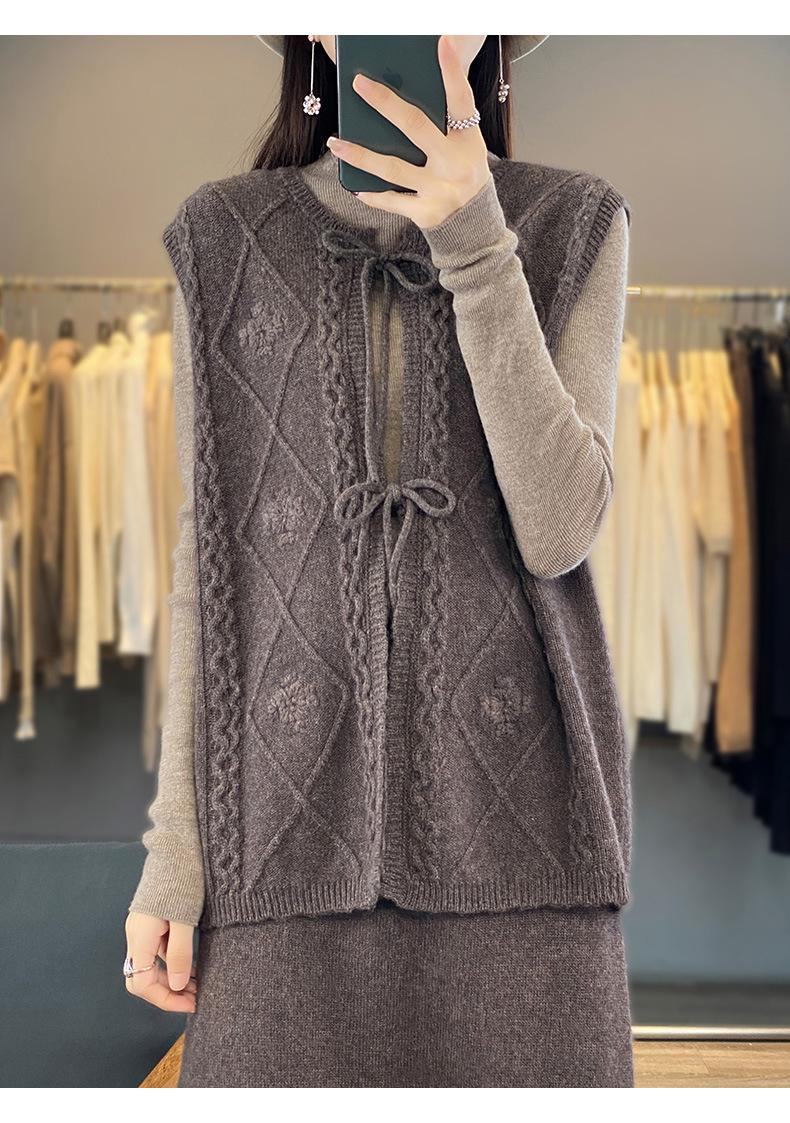 Chaleco Suéter Trenzado Chaleco de Lana para Mujer Otoño 2023 Nuevo Top sin Mangas de Punto Apilado Estilo Corto de Moda