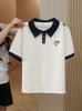 Camiseta de manga corta con cuello POLO en contraste, verano 2024, estilo coreano, con hombros bordados y corte entallado.