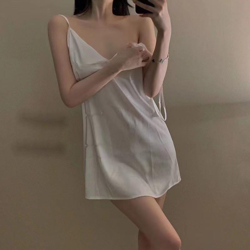 Lencería Sexy Nuevo Seda de Hielo Verano Camisón para Casa Tirantes Deseo Puro Espalda Descubierta Sexy Pasión Pijama Dropshipping