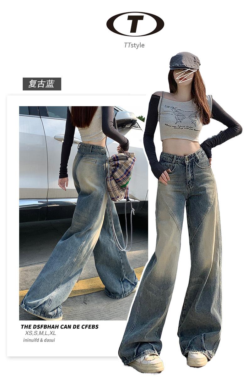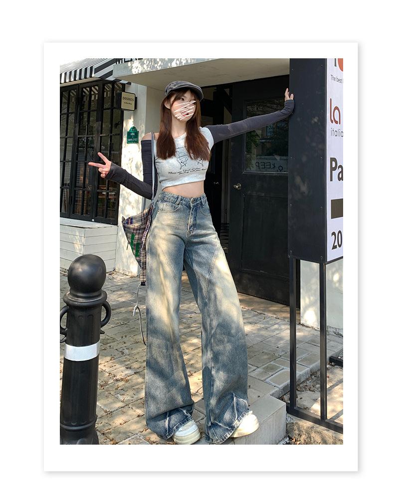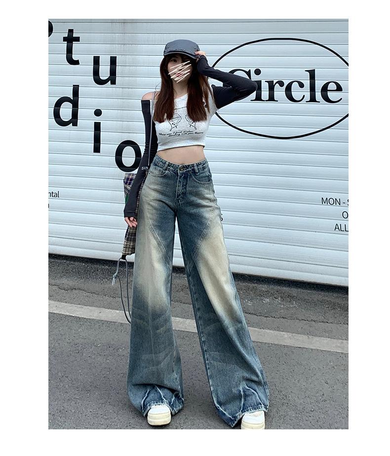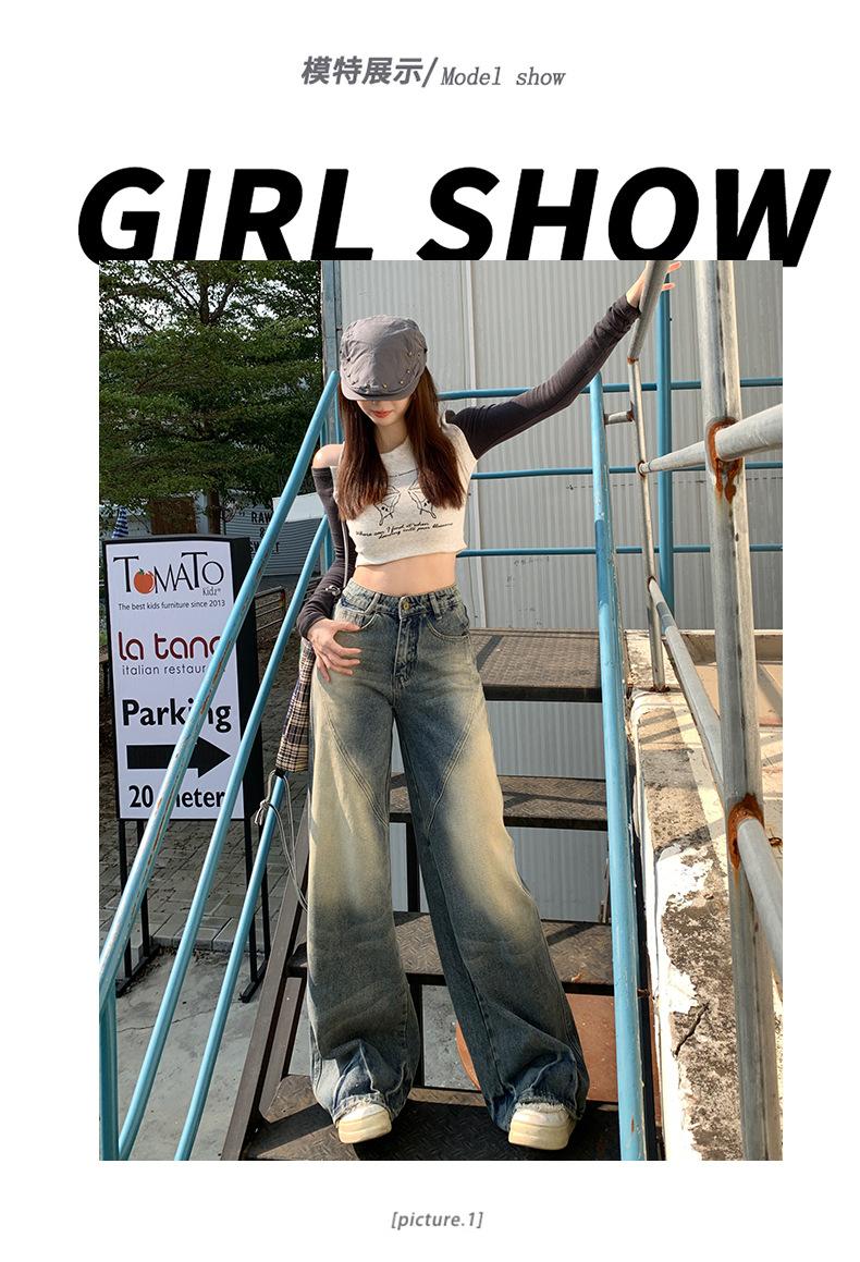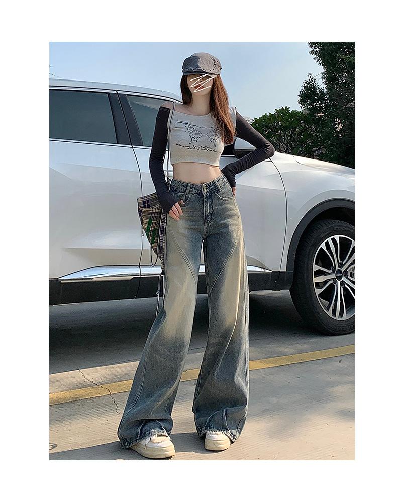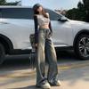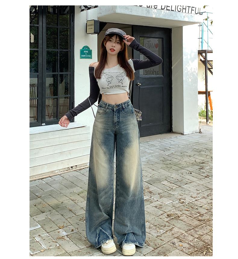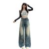 Pantalones vaqueros anchos y desgastados retro para mujer, nuevos pantalones rectos americanos de cintura alta y colgantes de verano