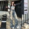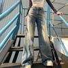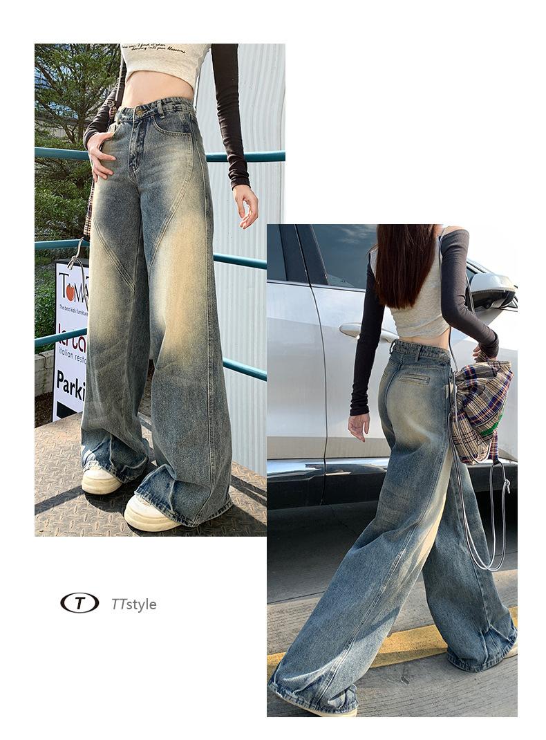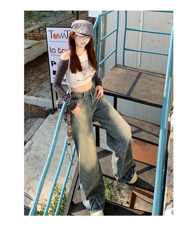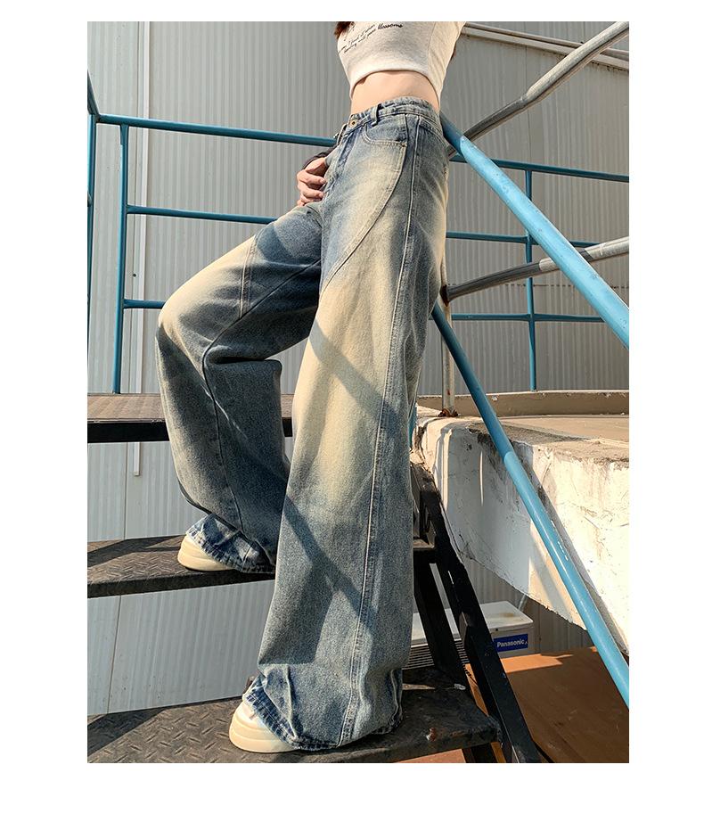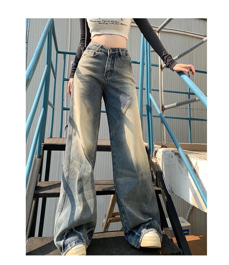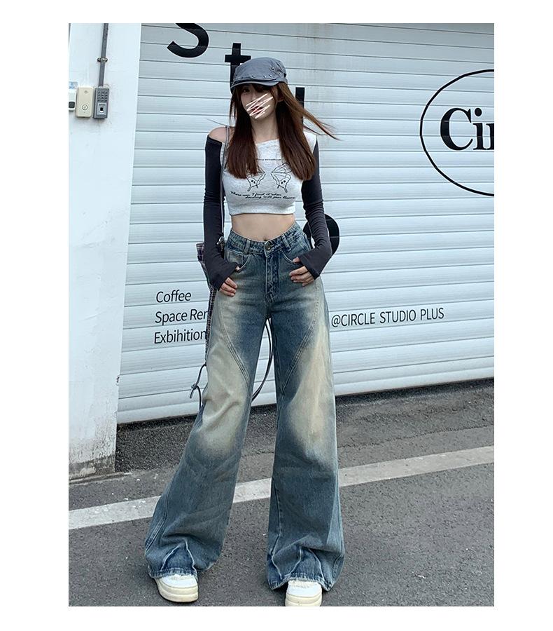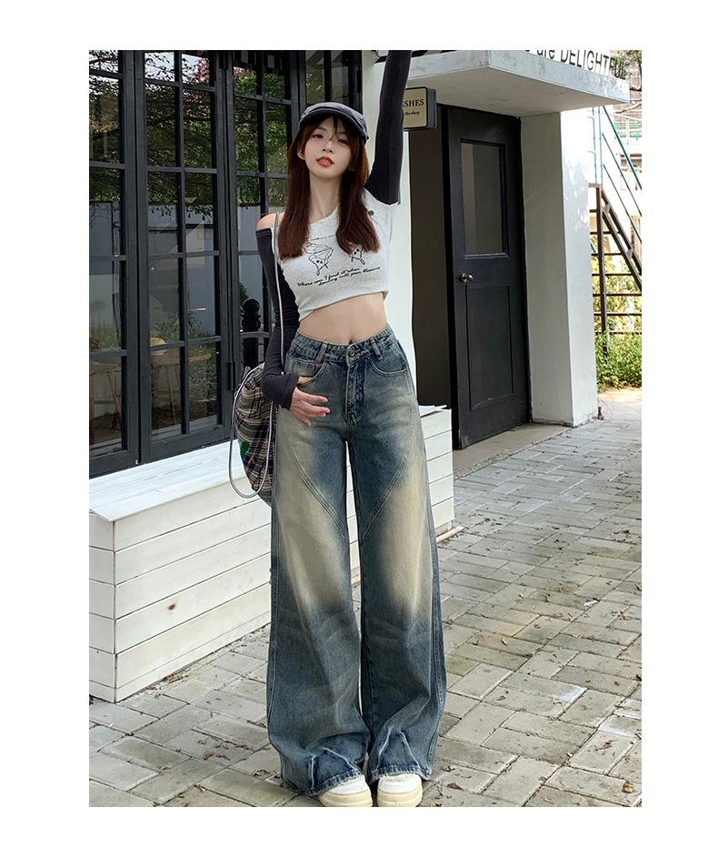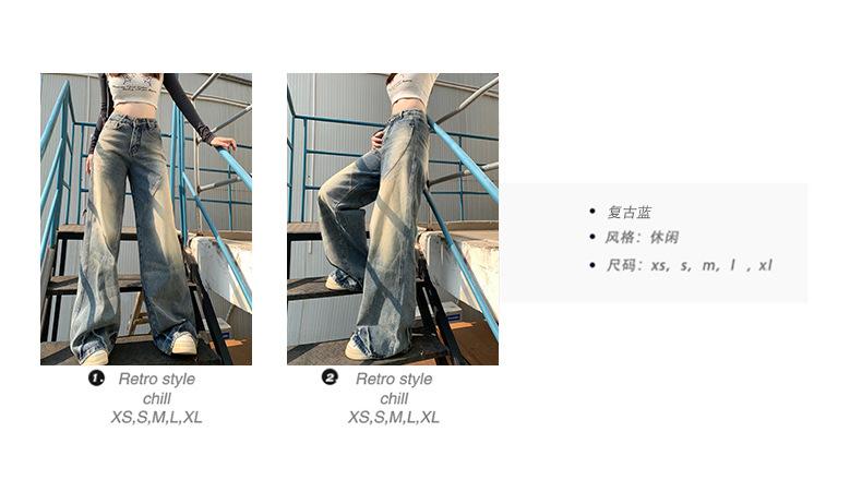 Pantalones vaqueros anchos y desgastados retro para mujer, nuevos pantalones rectos americanos de cintura alta y colgantes de verano
