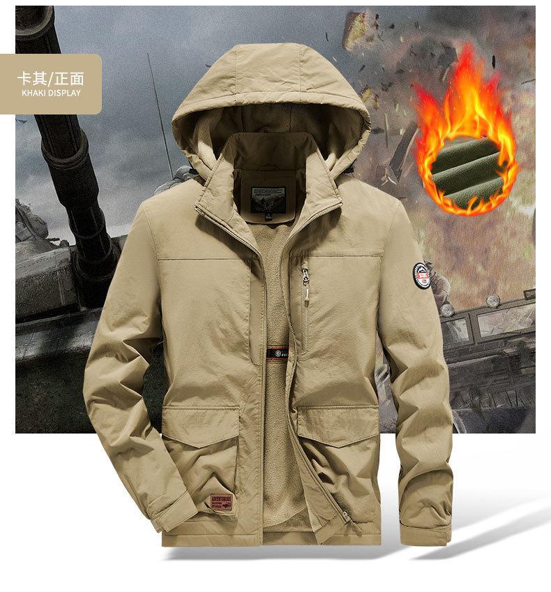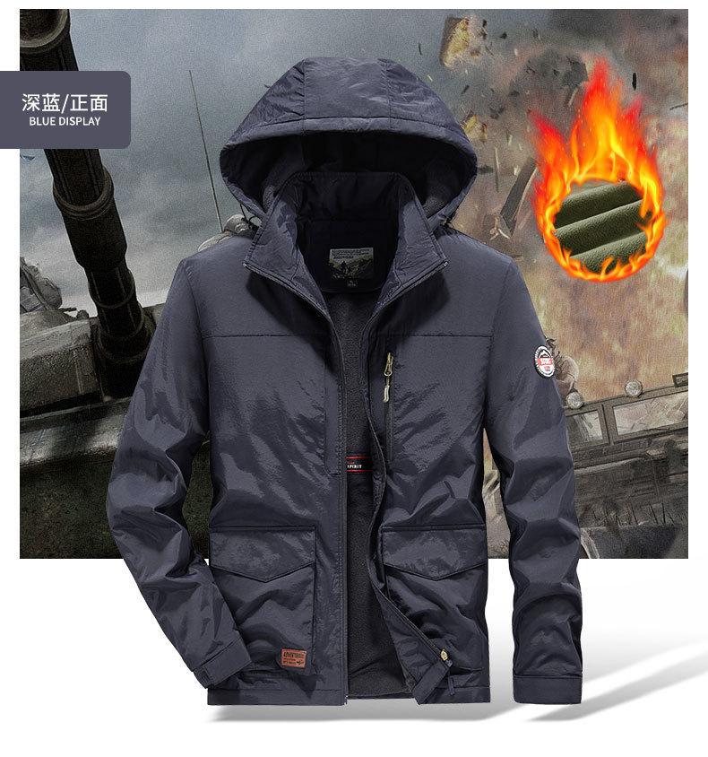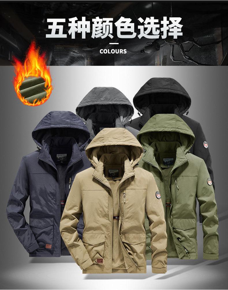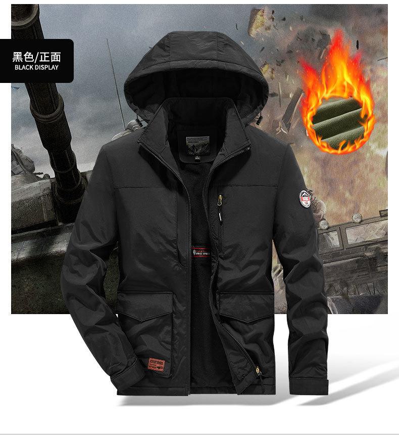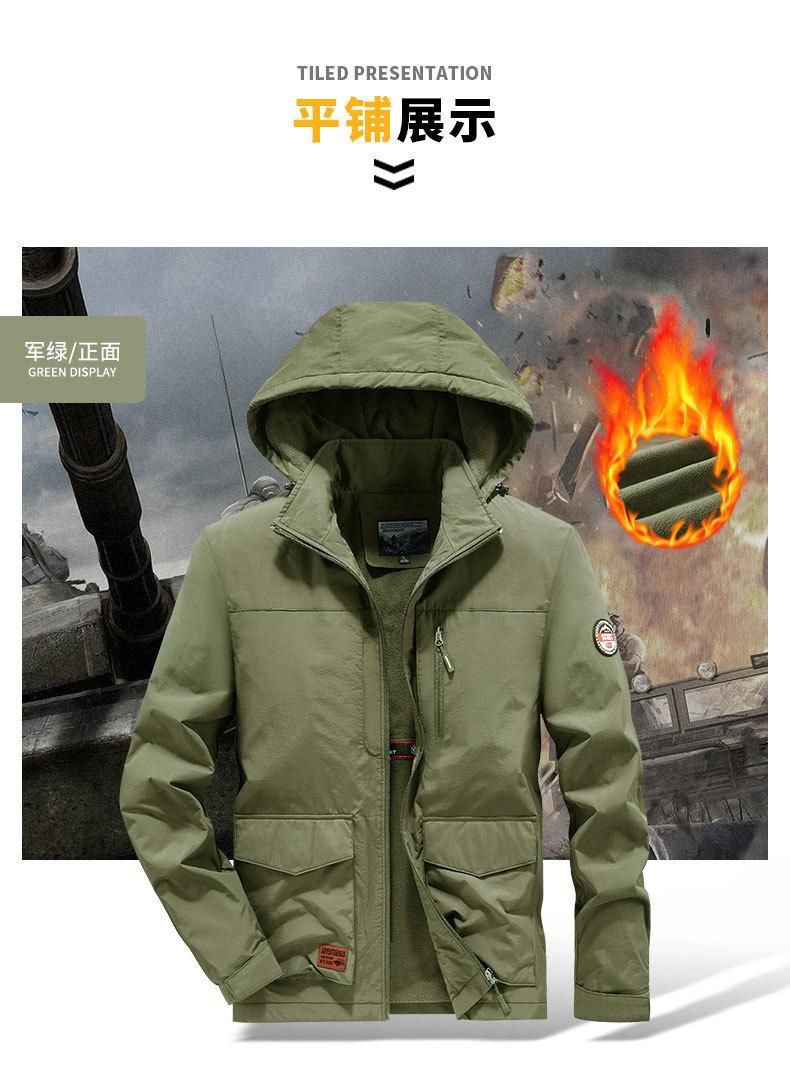 Chaqueta Gruesa con Forro Polar Venta al por Mayor Transfronteriza Nueva para Primavera y Otoño para Hombre para Exteriores Capucha Desmontable Impermeable Cortavientos