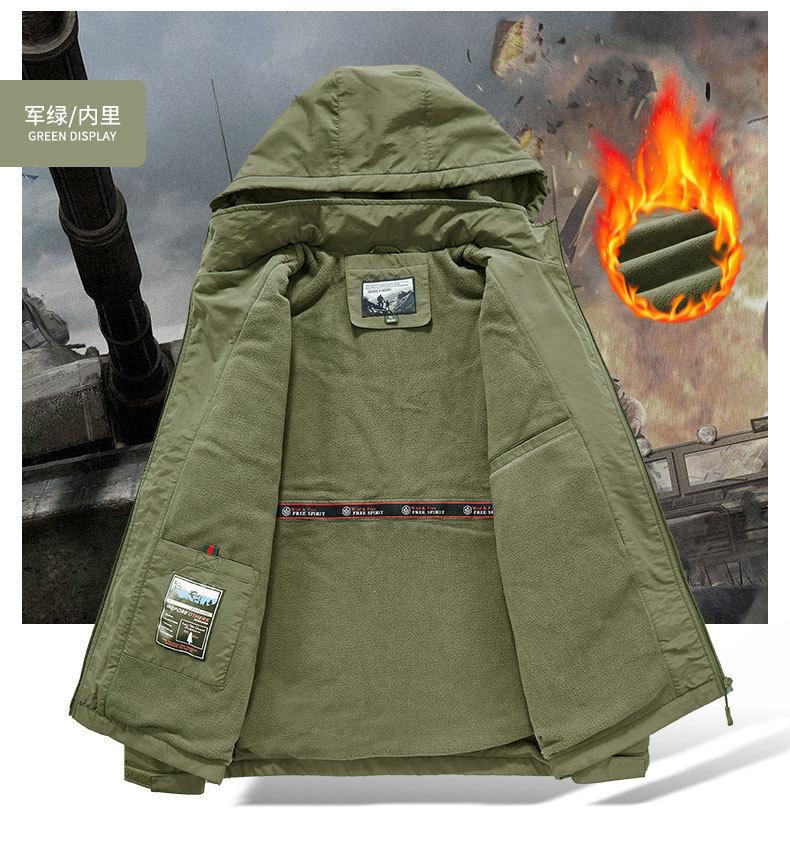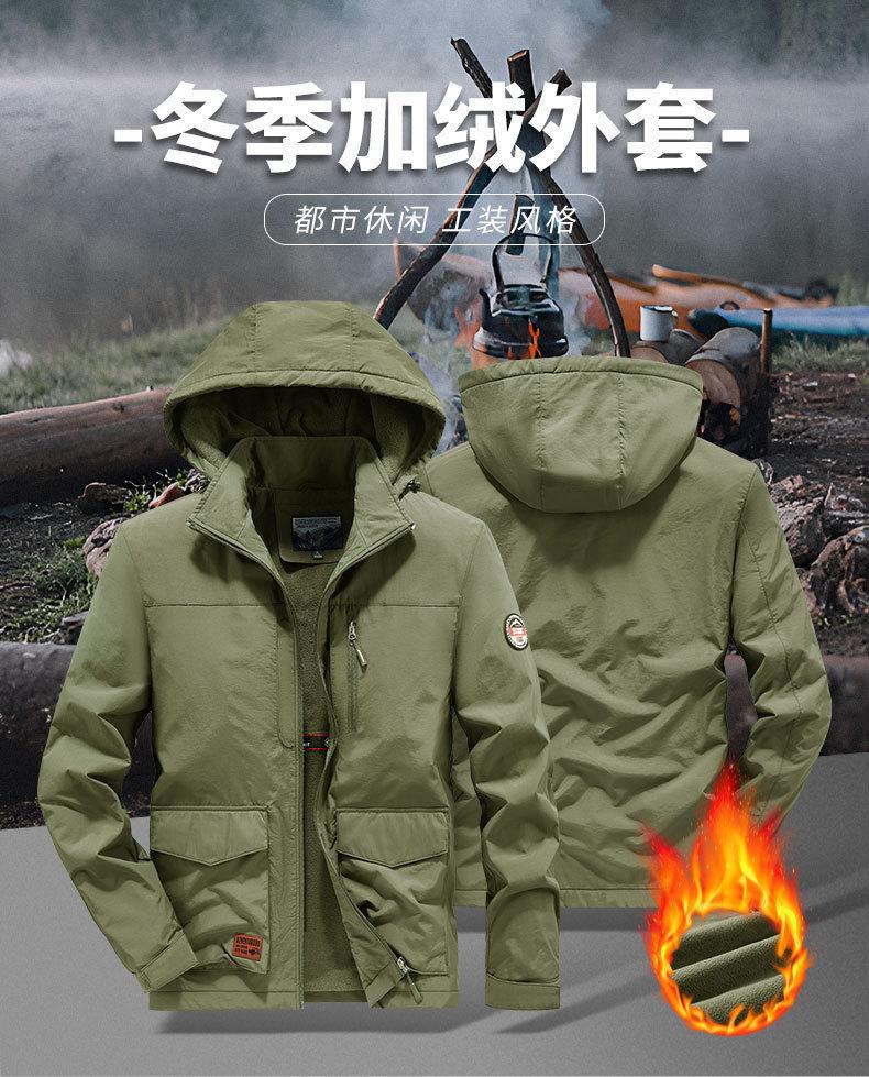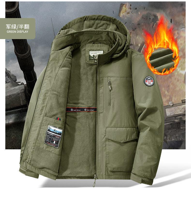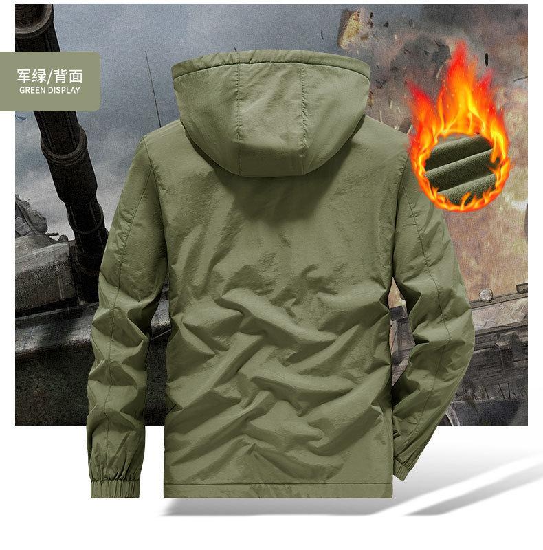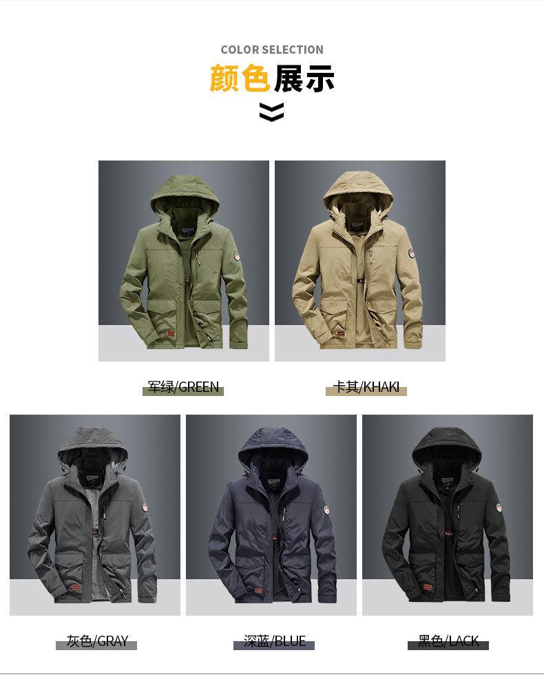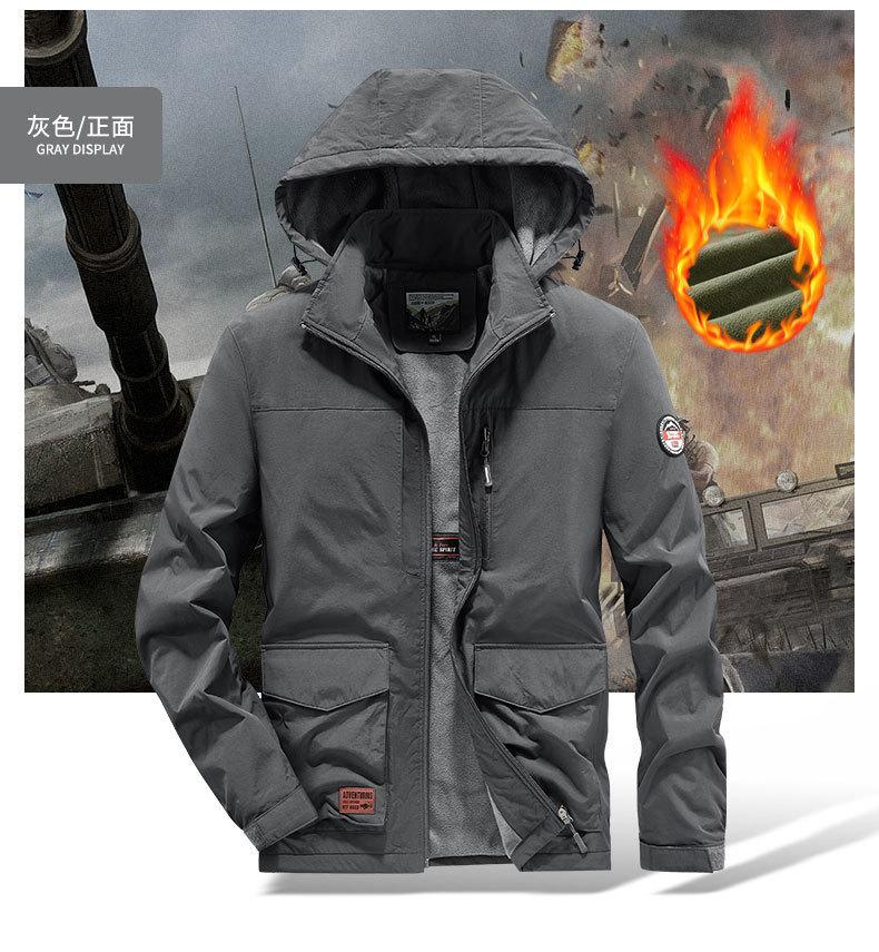 Chaqueta Gruesa con Forro Polar Venta al por Mayor Transfronteriza Nueva para Primavera y Otoño para Hombre para Exteriores Capucha Desmontable Impermeable Cortavientos