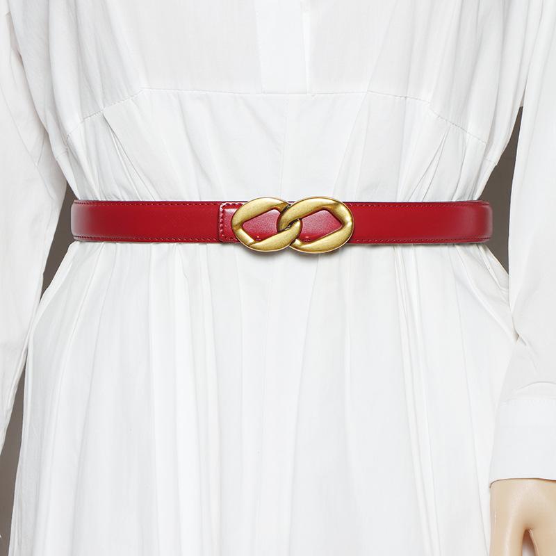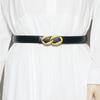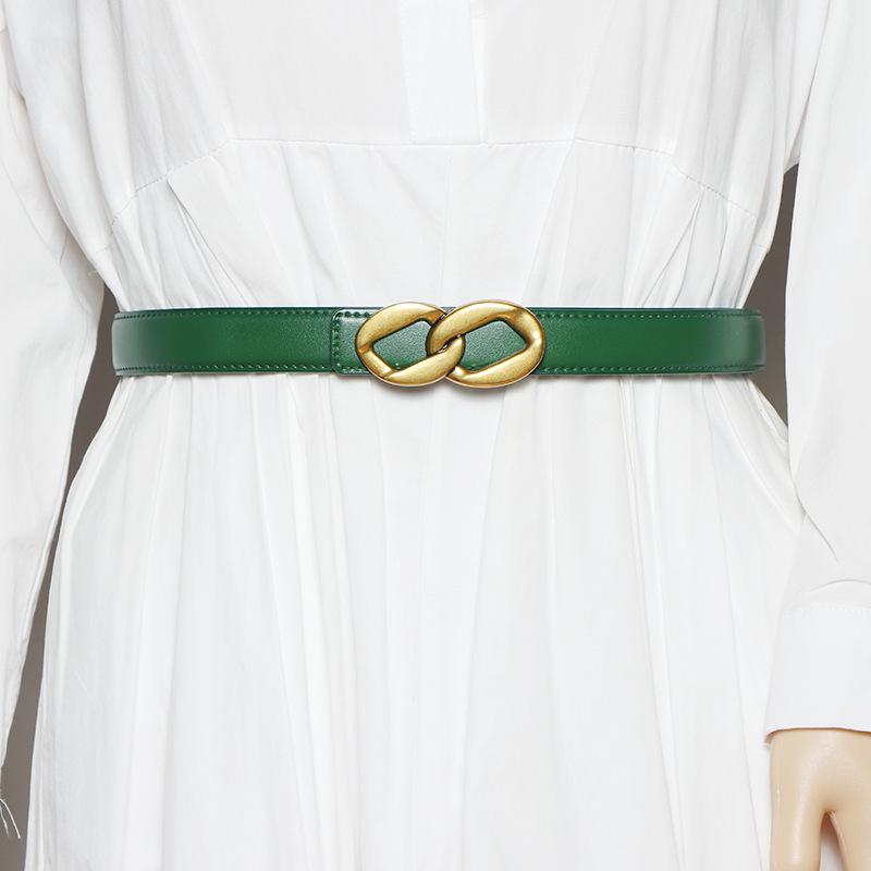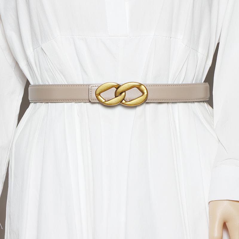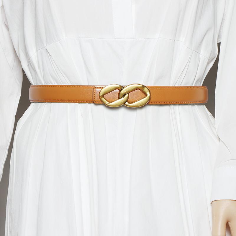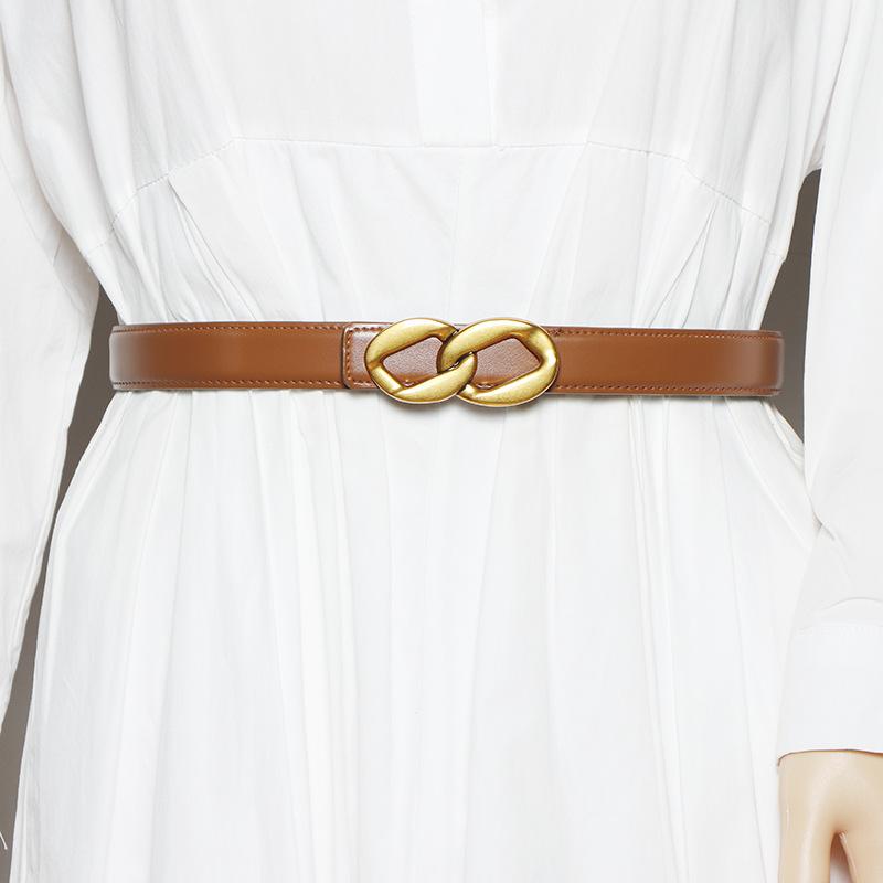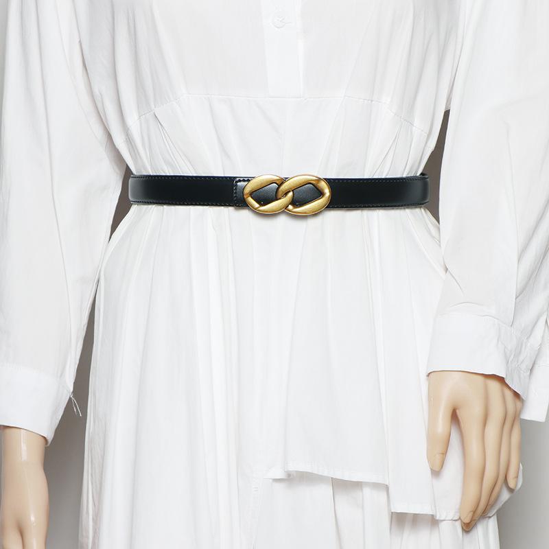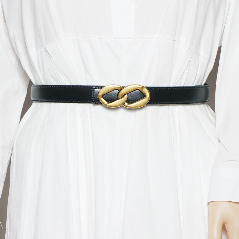 Cinturón de mujer de cuero genuino, combinable, decorativo, para gabardina, cintura ajustada, para jeans, para traje de vestir, cinturón negro de alta gama.