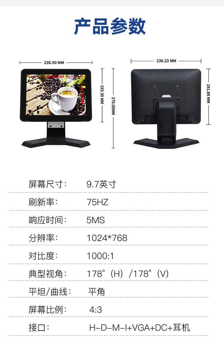 Monitor de computadora IPS de 9,7 pulgadas, escritorio para el hogar, HDMI, montado en la pared, oficina, pantalla LCD HD, venta directa de fábrica
