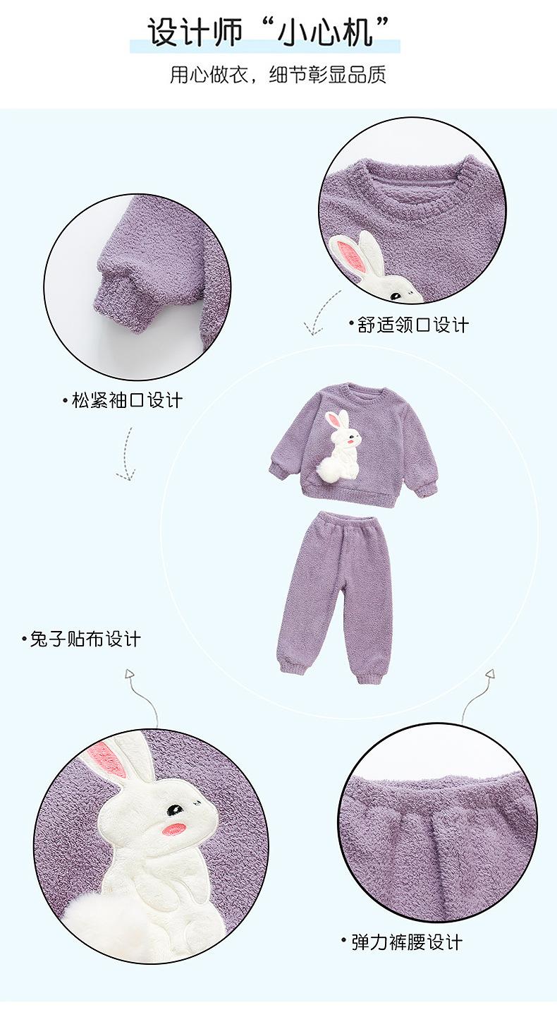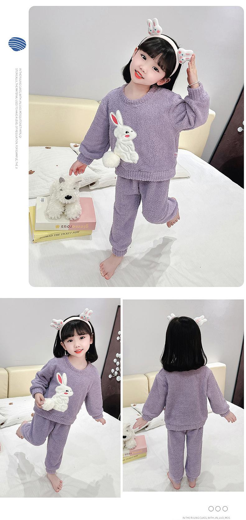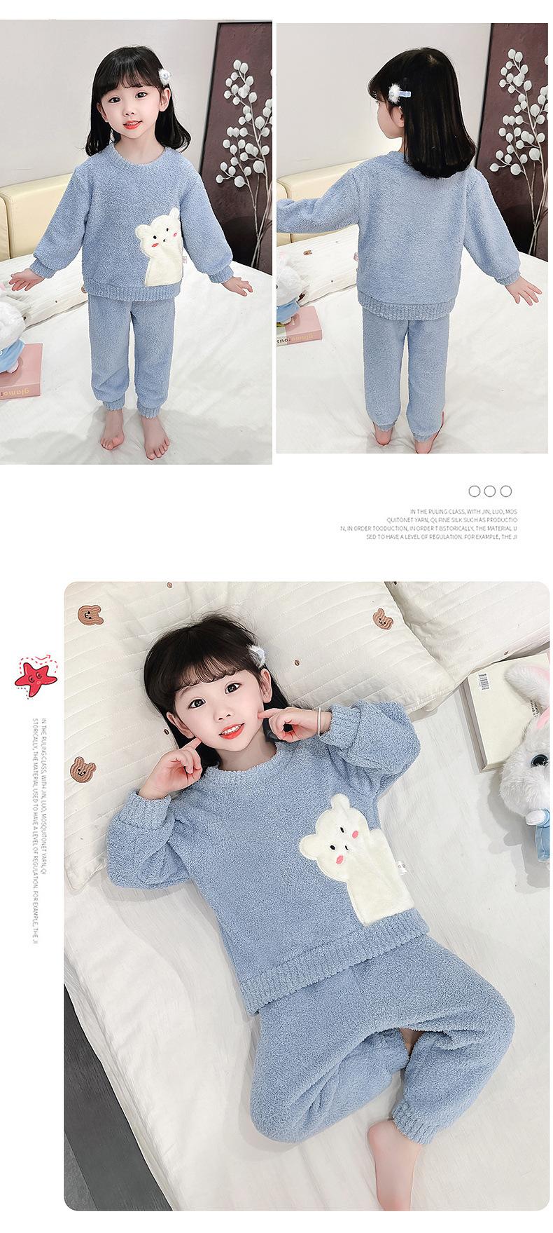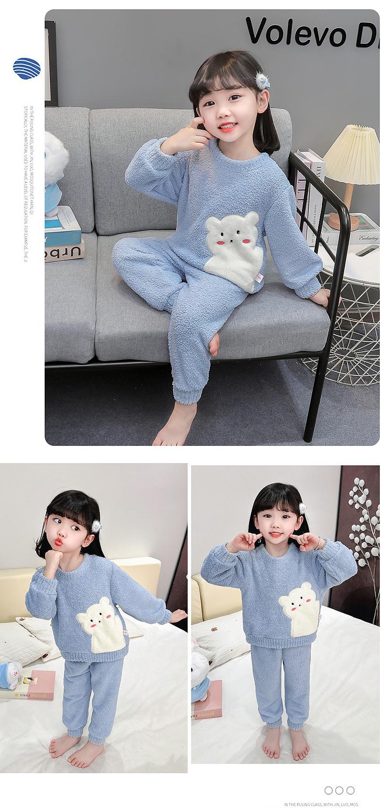 Conjunto de Ropa para el Hogar para Niños Terciopelo Coral Pijama para Niños Franela Otoño e Invierno Dibujos Animados Lindo