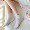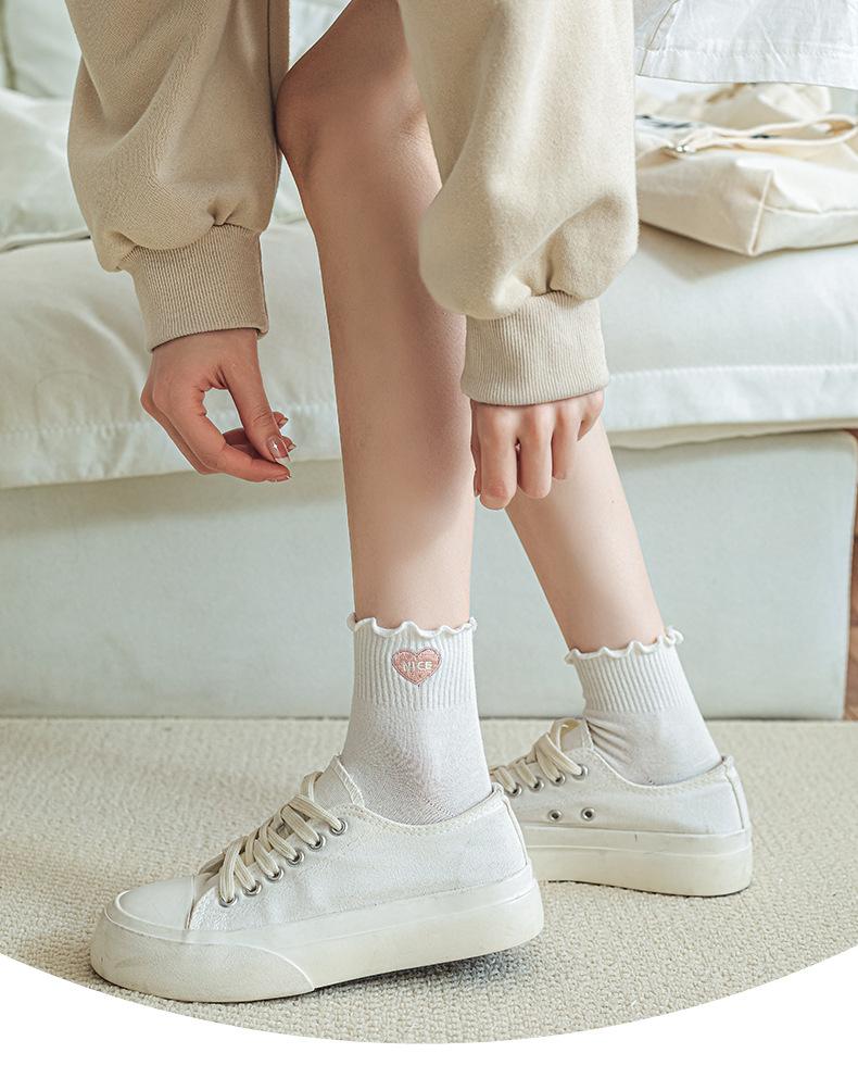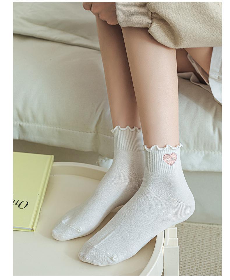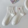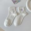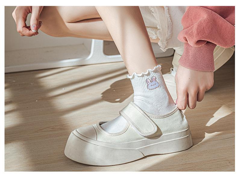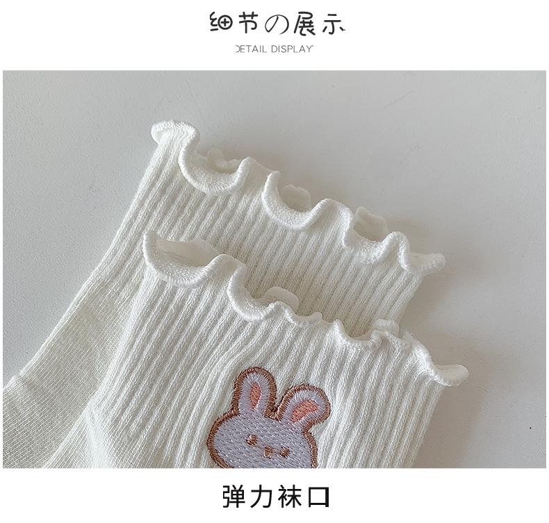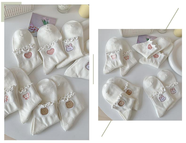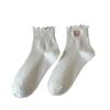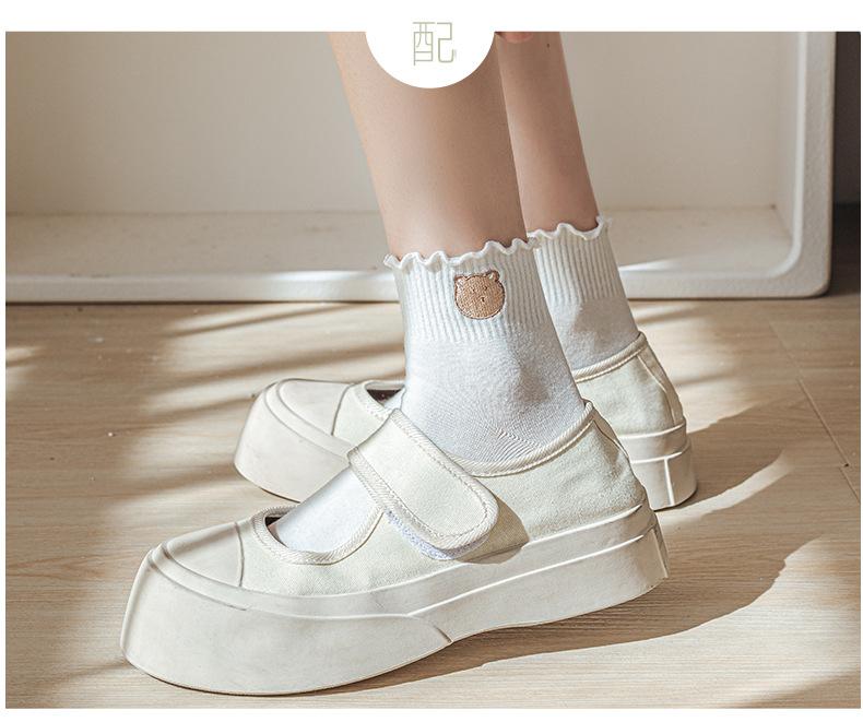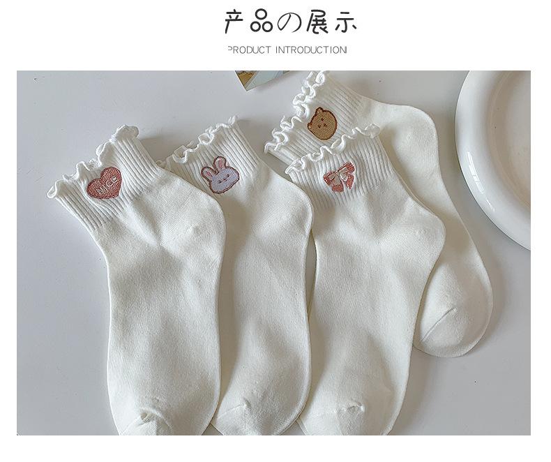 Calcetines blancos con borde de oreja bordados para mujer, modernos calcetines náuticos de algodón para primavera, verano y otoño, estilo japonés JK, calcetines cortos para niñas.