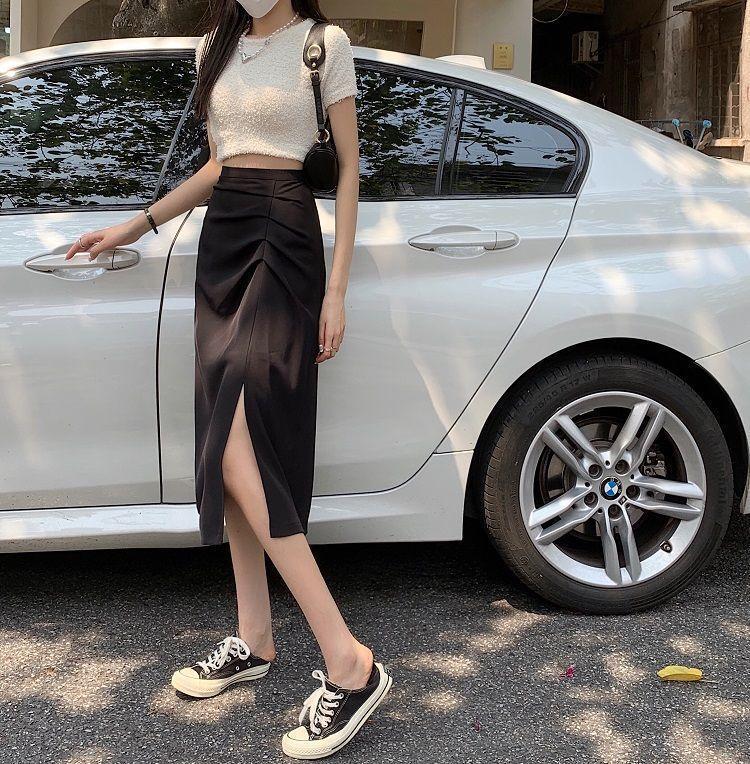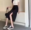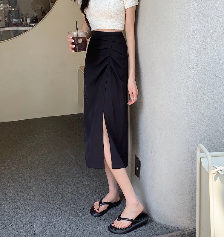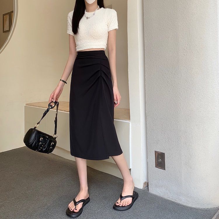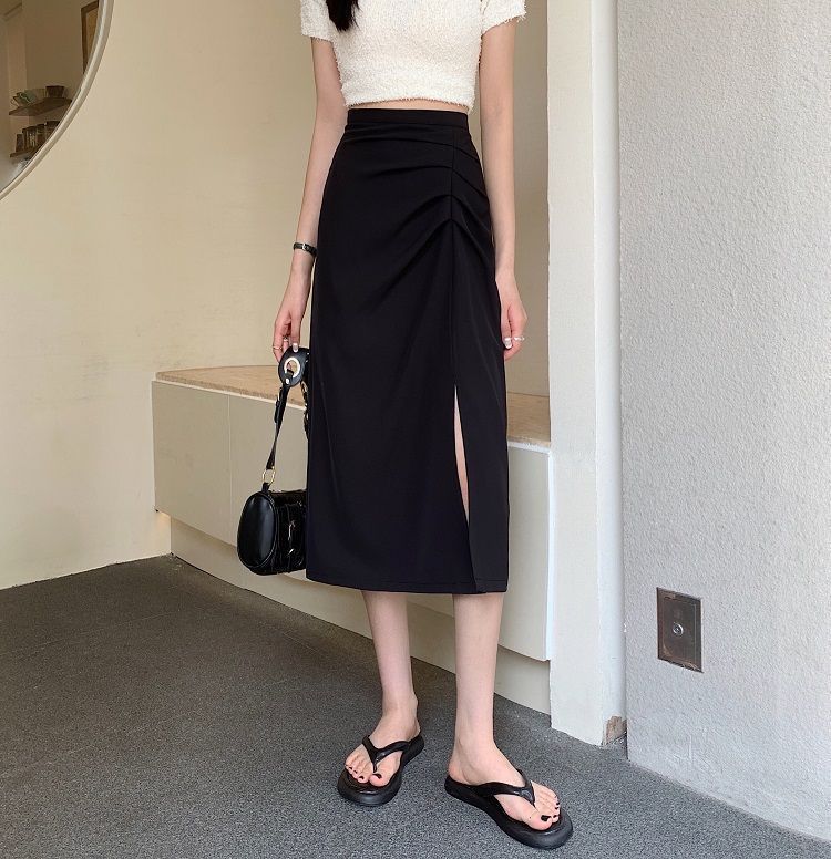 Falda negra de verano para chica gordita, de talla grande, popular, de cintura alta, adelgazante, de longitud media, plisada, con abertura en forma de A, falda a la cadera