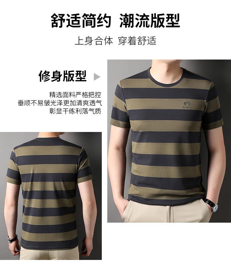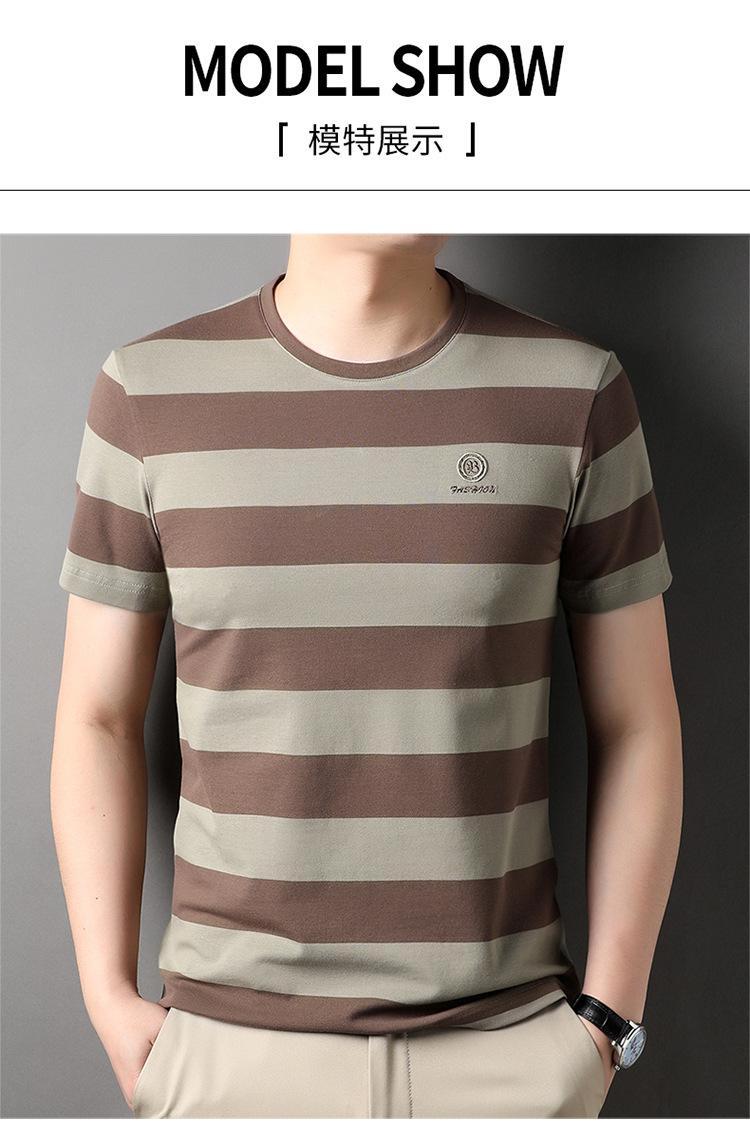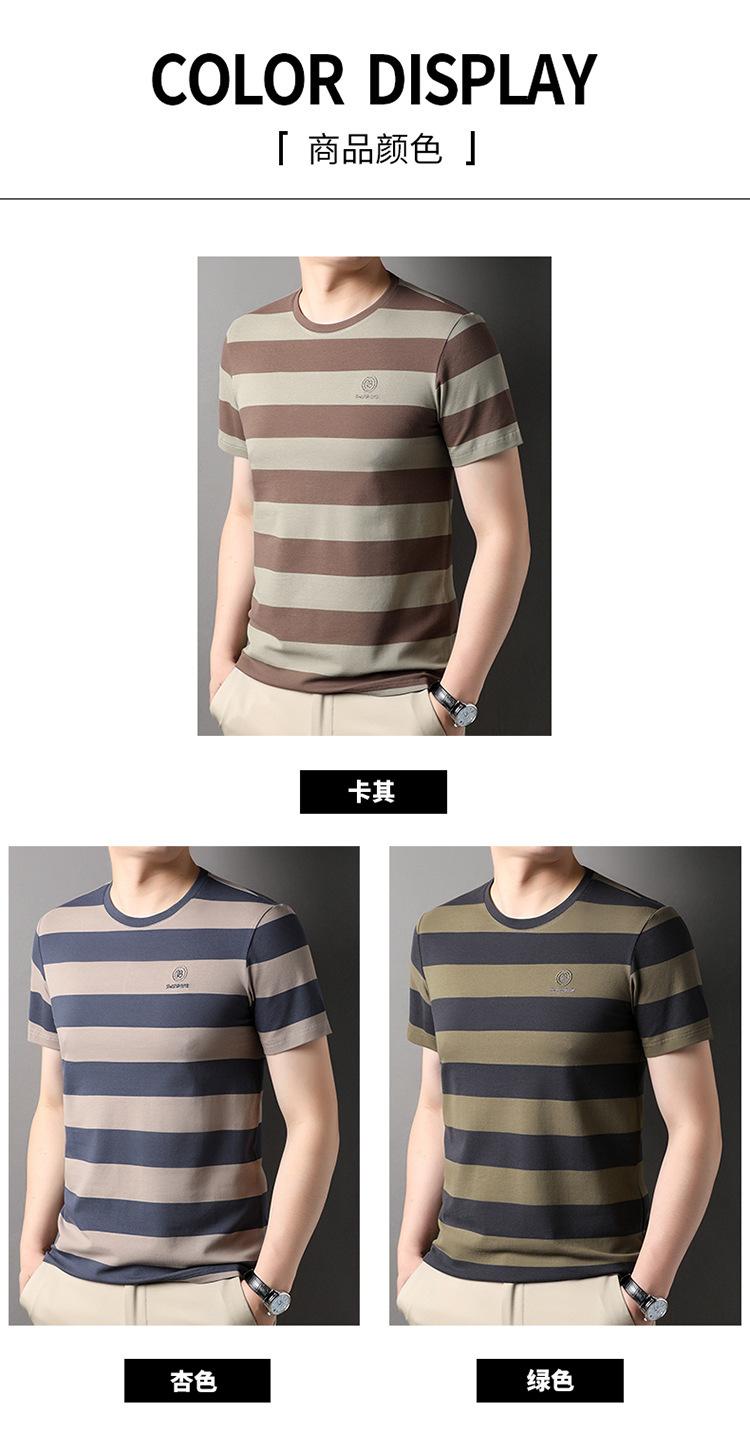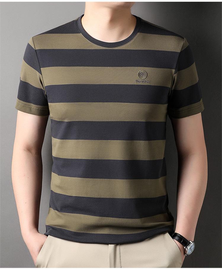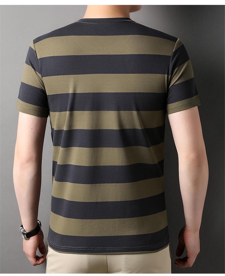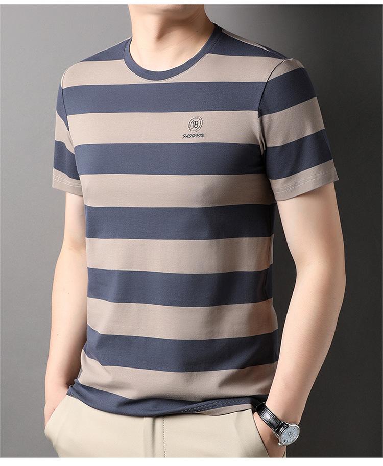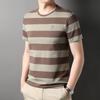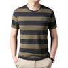 Nueva camiseta de verano de manga corta para hombre, cuello redondo, manga corta, informal, a rayas, moda masculina