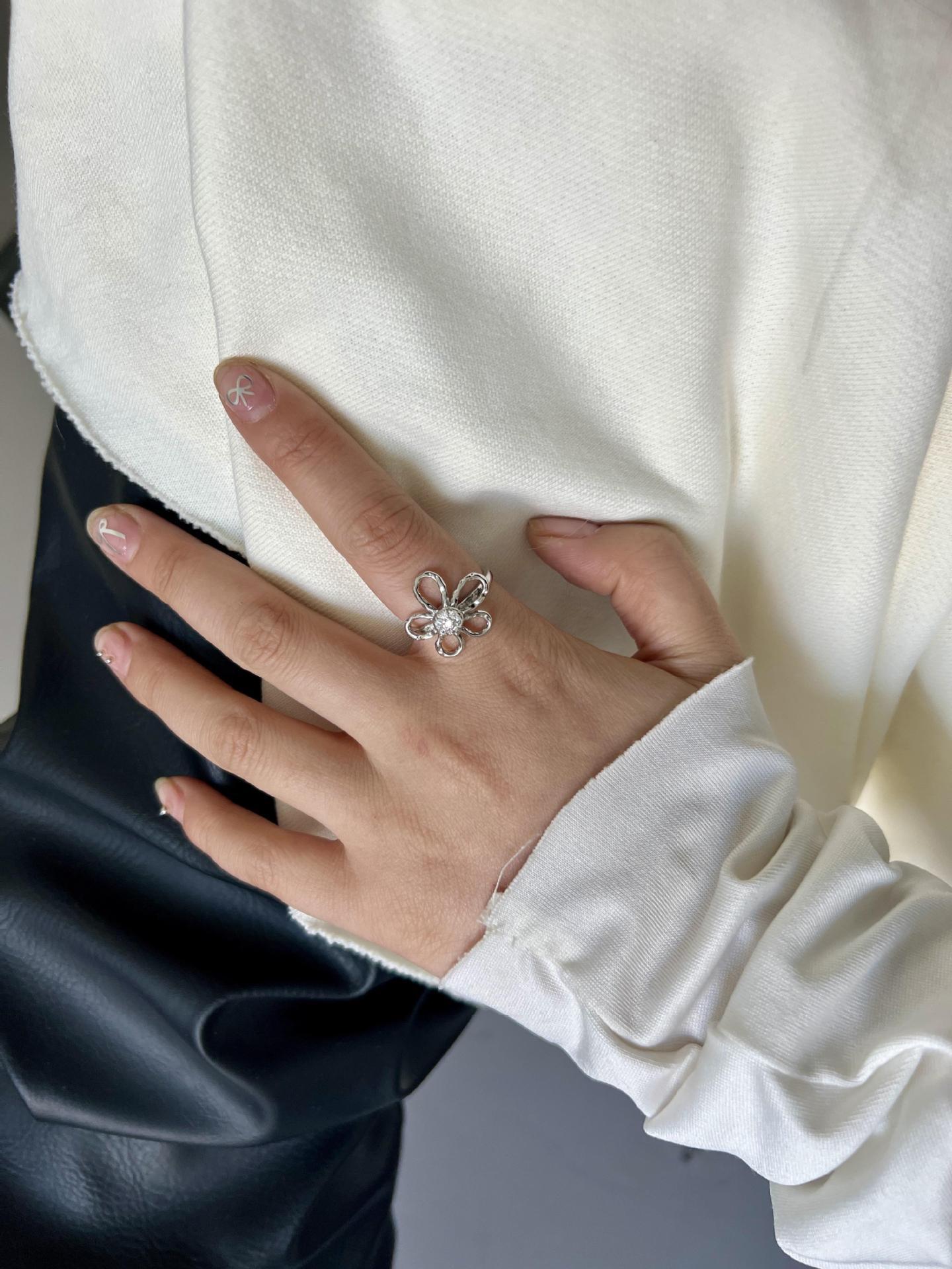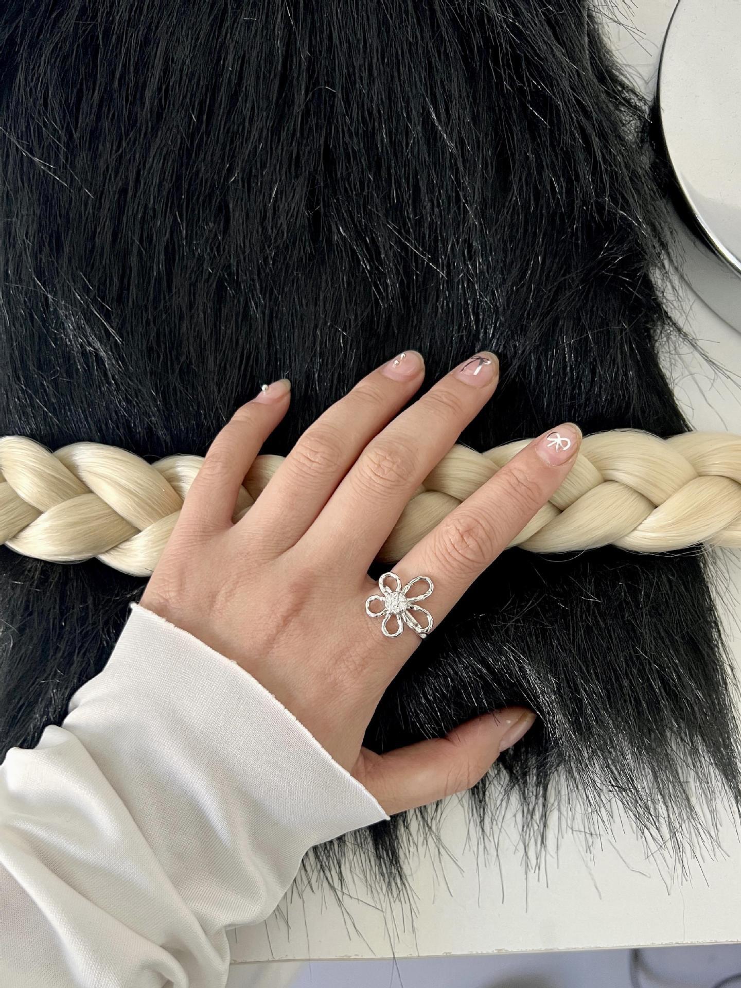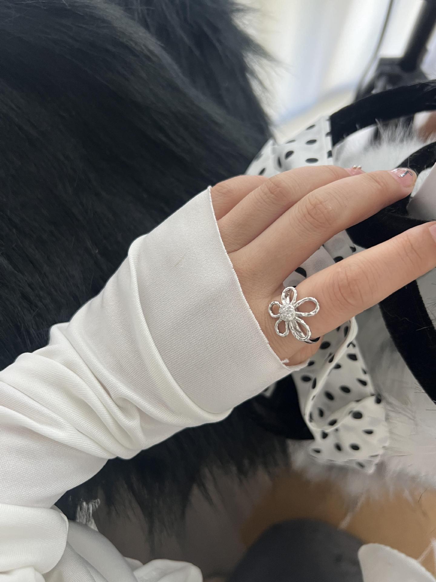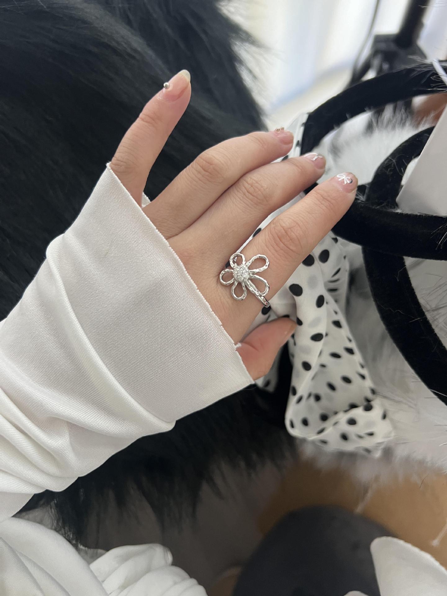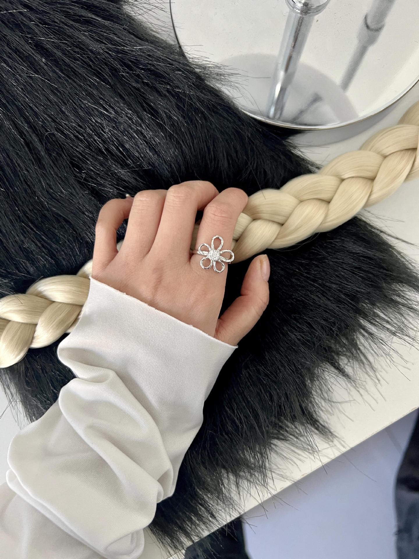 Anillo de Flor Dulce y Fresco Anillo Elegante Elegante Abierto para Mujer Micro-incrustado Zircón Brillante Creativo Nuevo Anillo de Dedo
