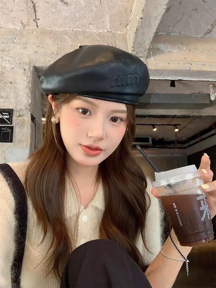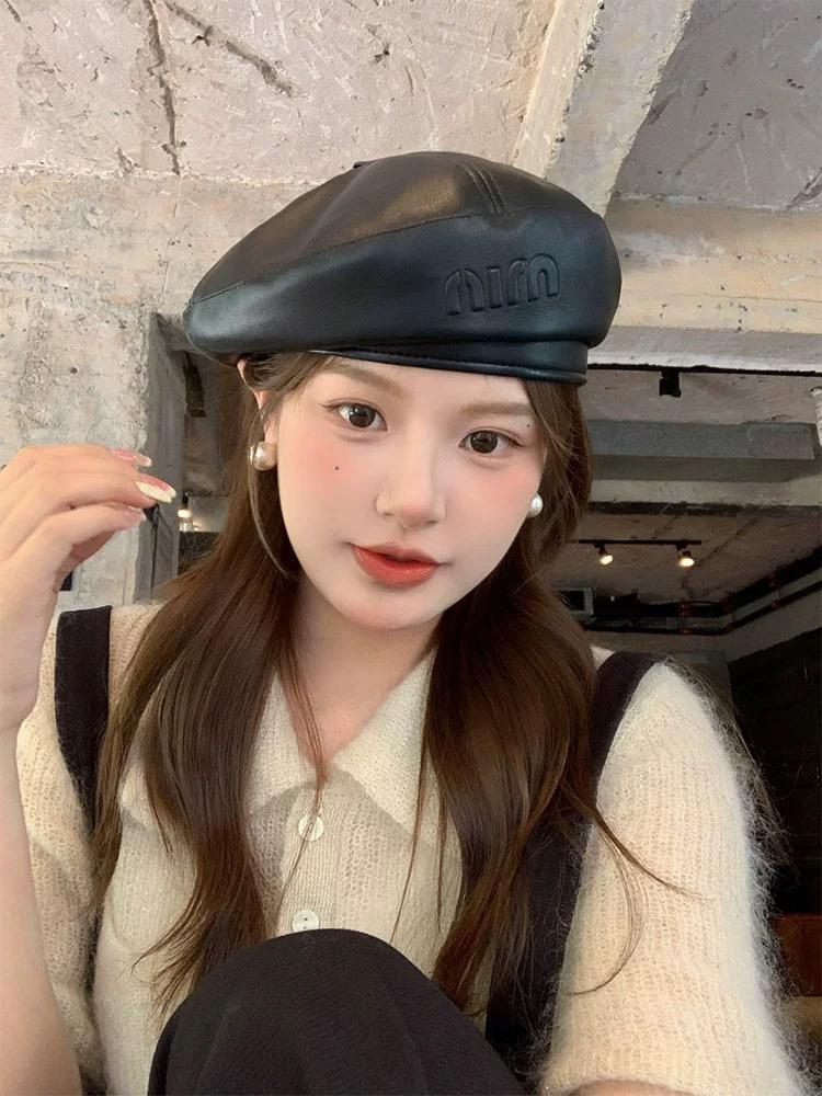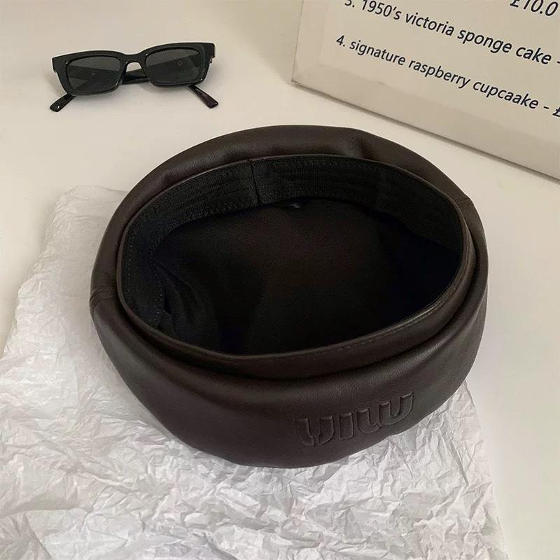 Boina Elegante Retro de PU Estilo Hong Kong Simple Combinable Sombrero de Pintor Artístico Sombrero Protector Solar de Viaje para Mujer