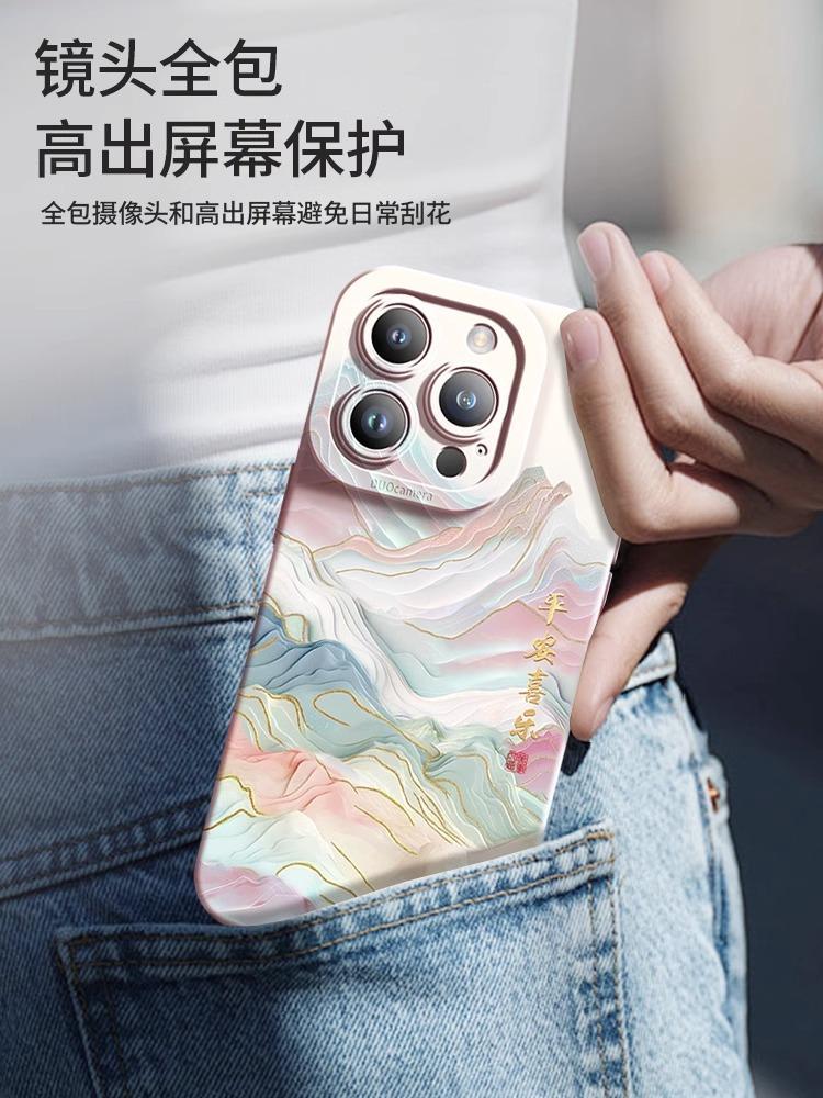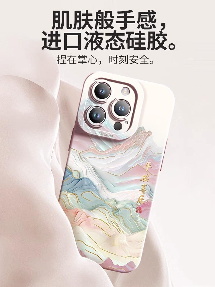 Adecuado para Apple 15 Funda para teléfono móvil Paisaje Japonés Todo incluido 12 Silicona líquida Ligera 13 Carcasa protectora 14 Verano