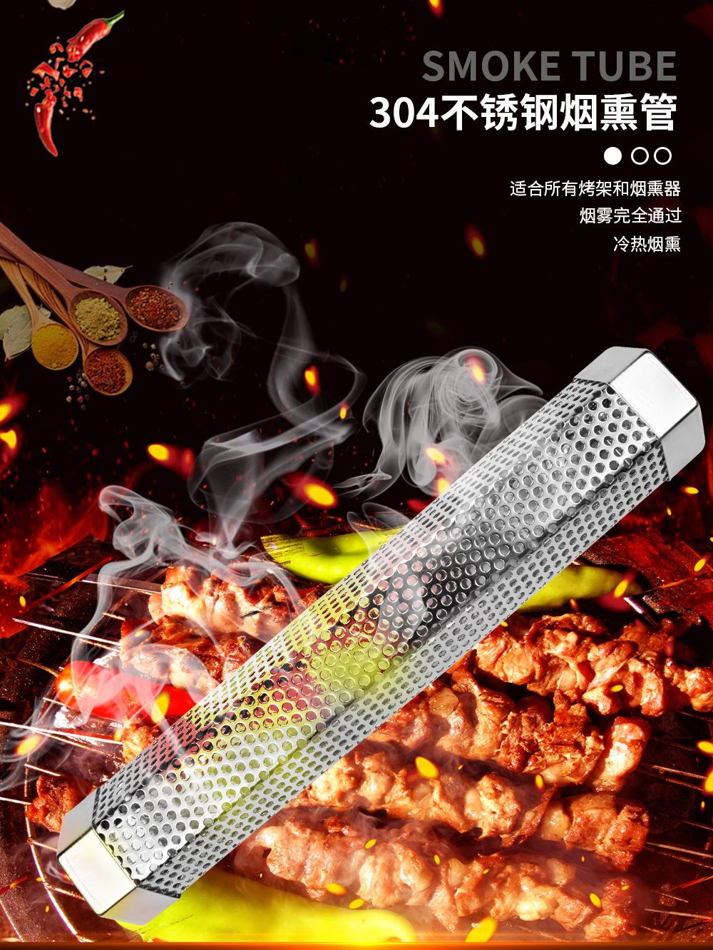 Pipa para ahumar transfronteriza de acero inoxidable 304, caja de madera de diamante para fruta, caja para ahumar carbón para barbacoa, herramientas para barbacoa al aire libre, pipa de red