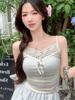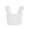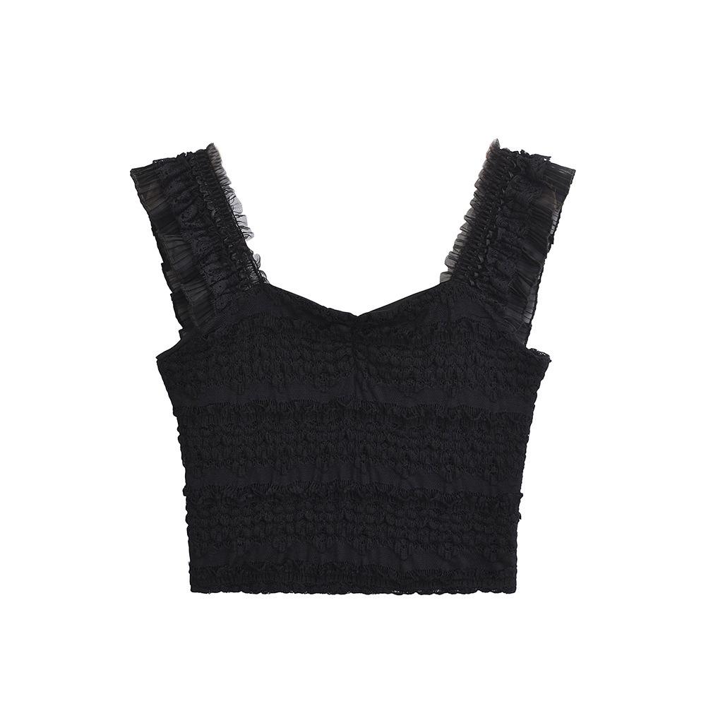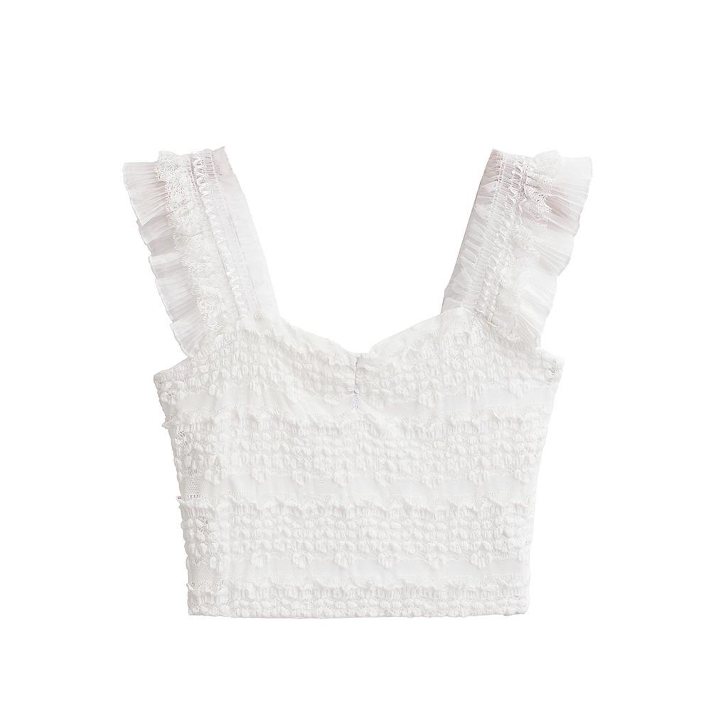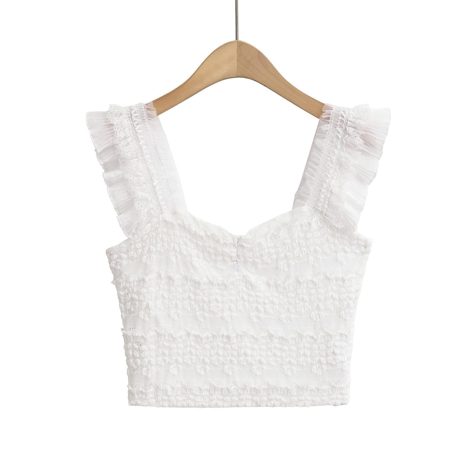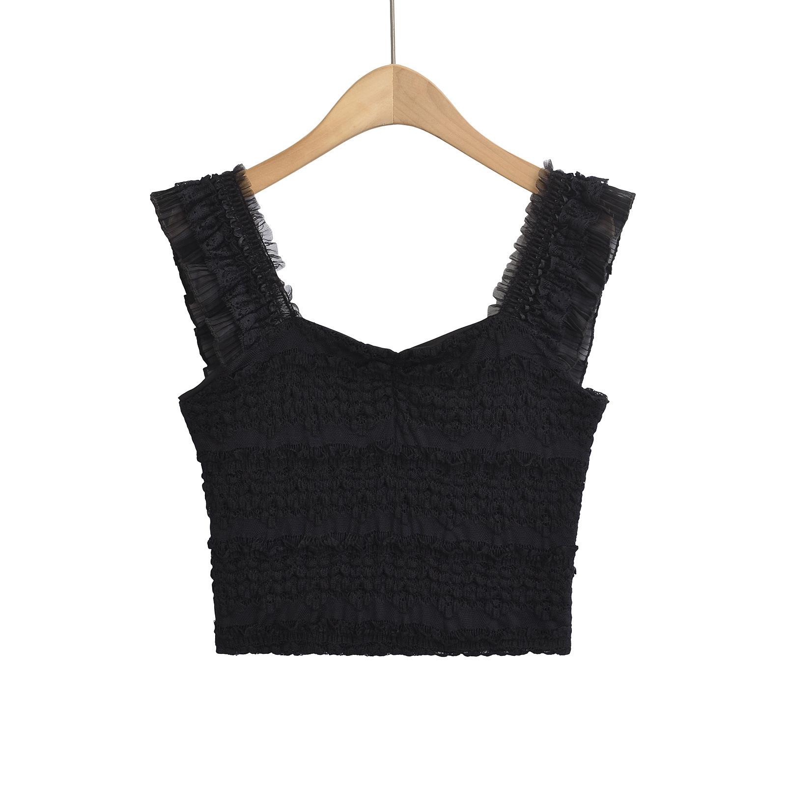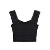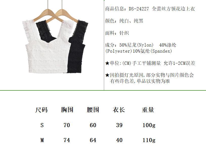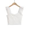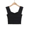 Nuevo estilo 2024, camiseta corta sin mangas con encaje completo y cuello cuadrado en los hombros, sexy y ajustada para mujer