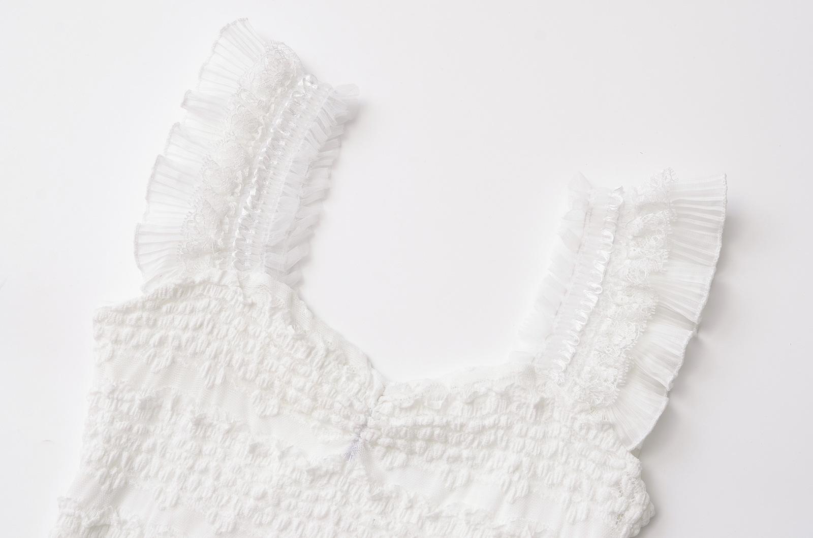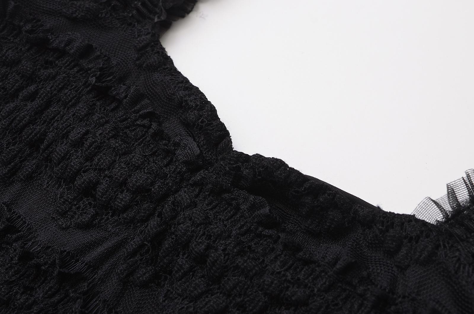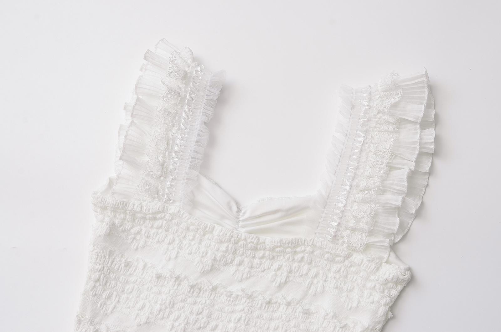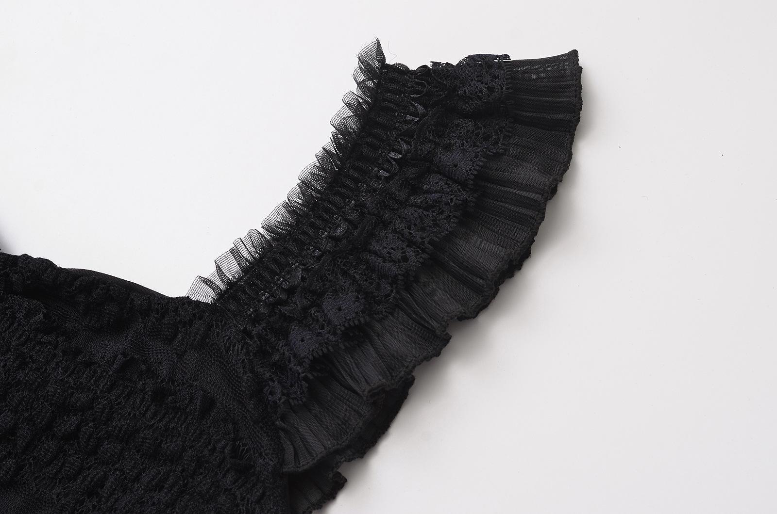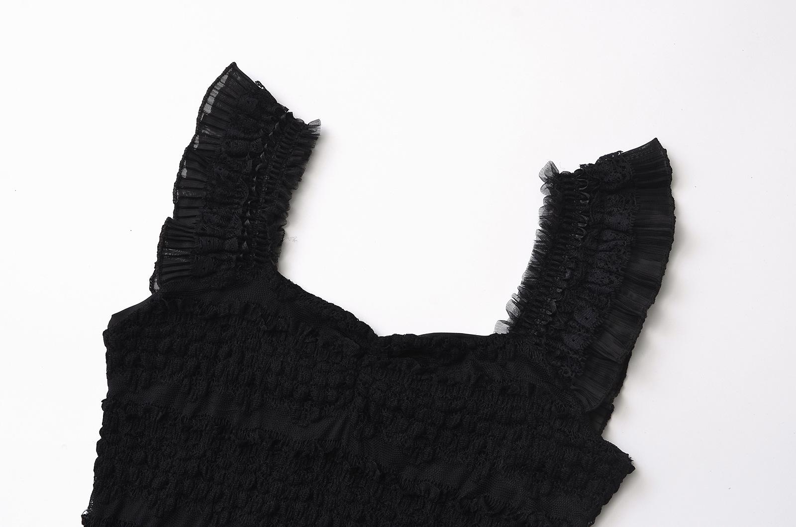 Nuevo estilo 2024, camiseta corta sin mangas con encaje completo y cuello cuadrado en los hombros, sexy y ajustada para mujer