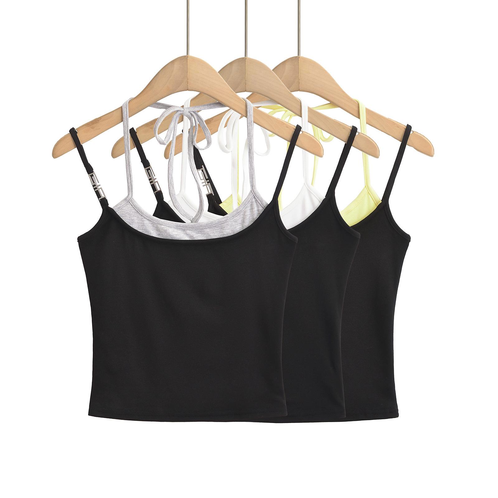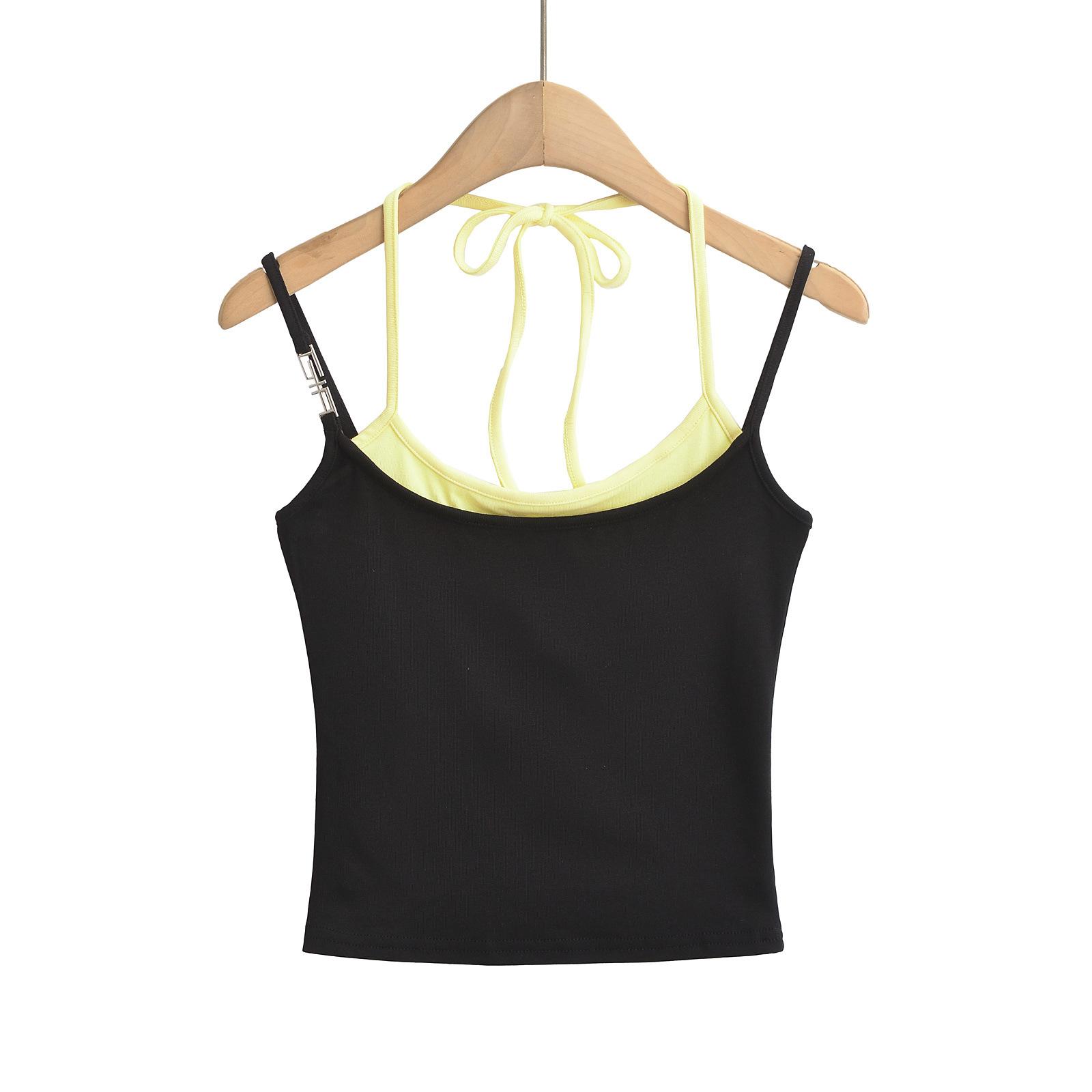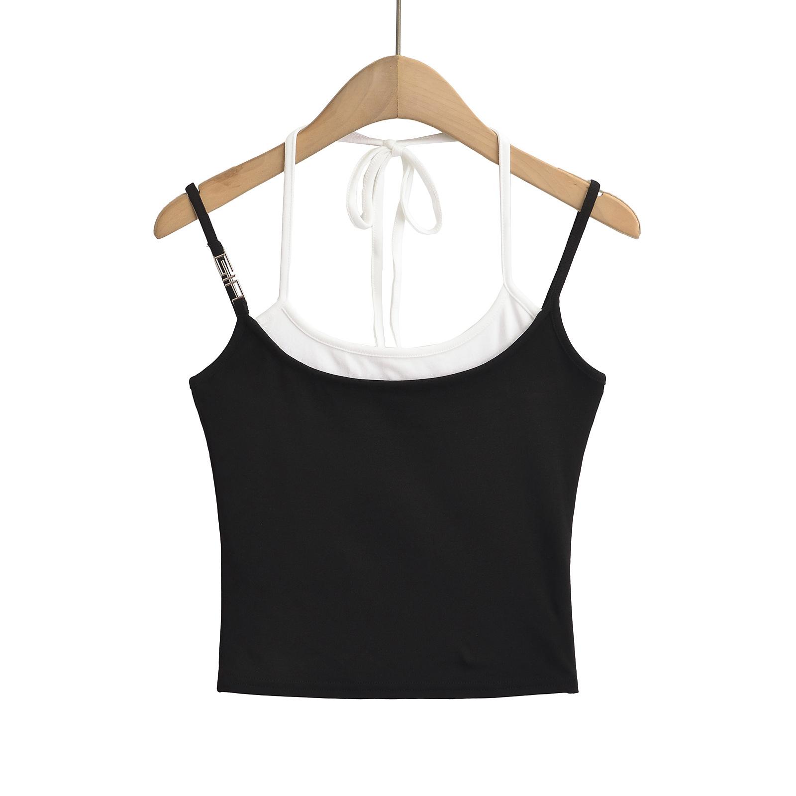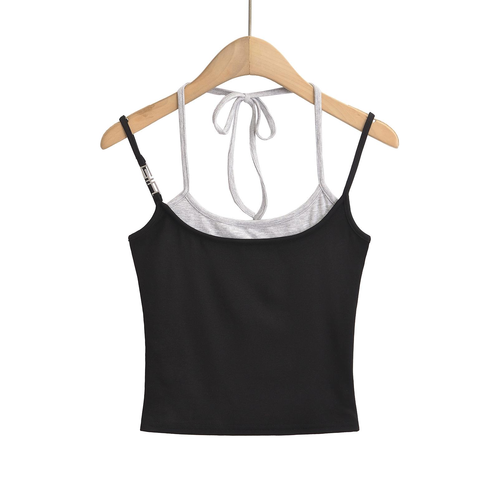 Verano 2024 Sexy Espalda Grande Descubierta Ombligo Corto Sin Mangas Tirantes Europeo Americano Anillo Metálico Cadena Halter Chaleco