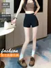 Shorts de Traje Negros de Cintura Alta para Mujer Verano Delgados 2025 Nuevos Ajustados Elásticos Casuales Sexys Pantalones Cortos Hot para Ropa Exterior