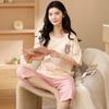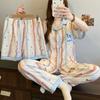 Pijama Jacquard de Algodón Nube para Mujer Verano Estilo Princesa Dulce Manga Corta Shorts Pantalones Conjunto de Tres Piezas Ropa para el Hogar