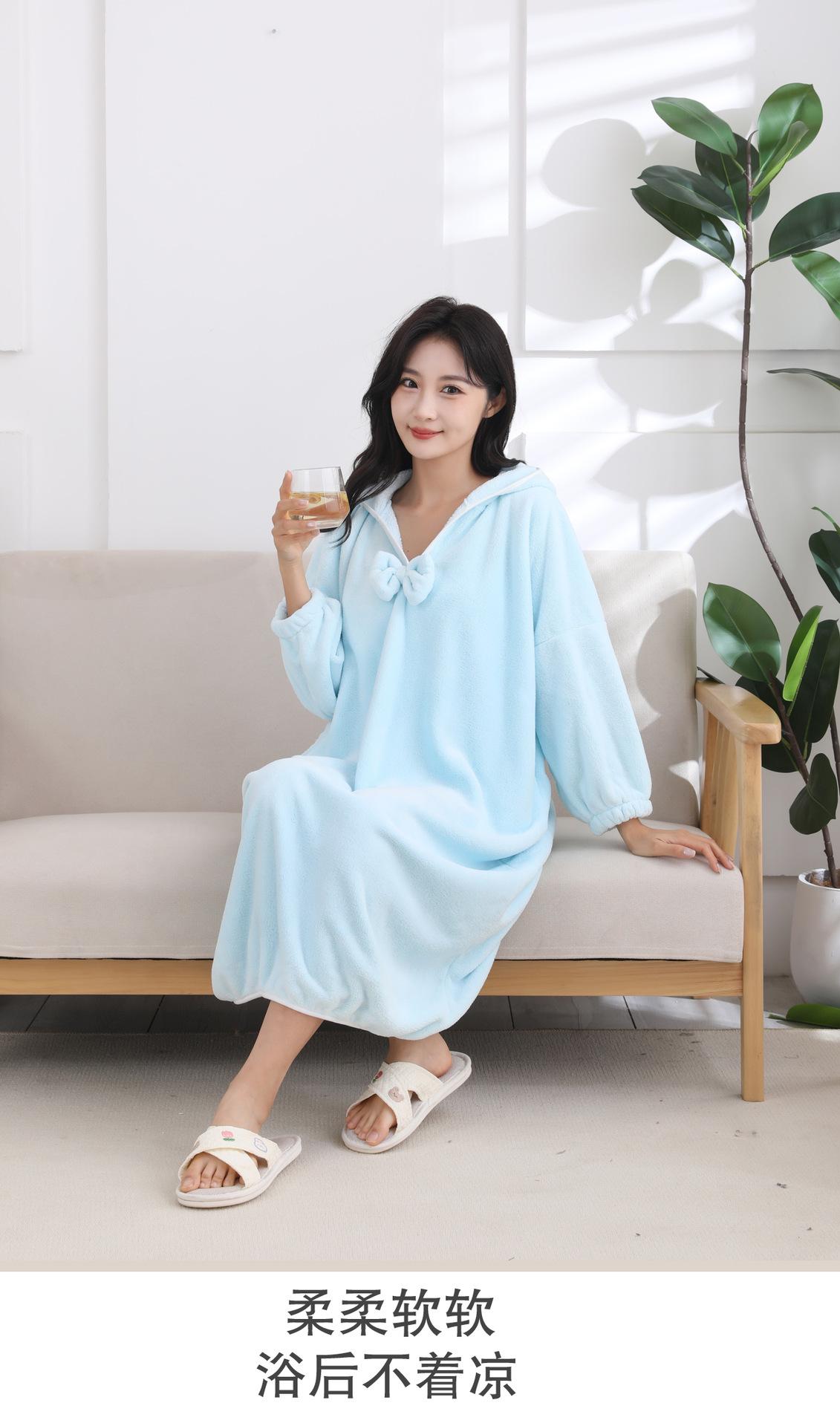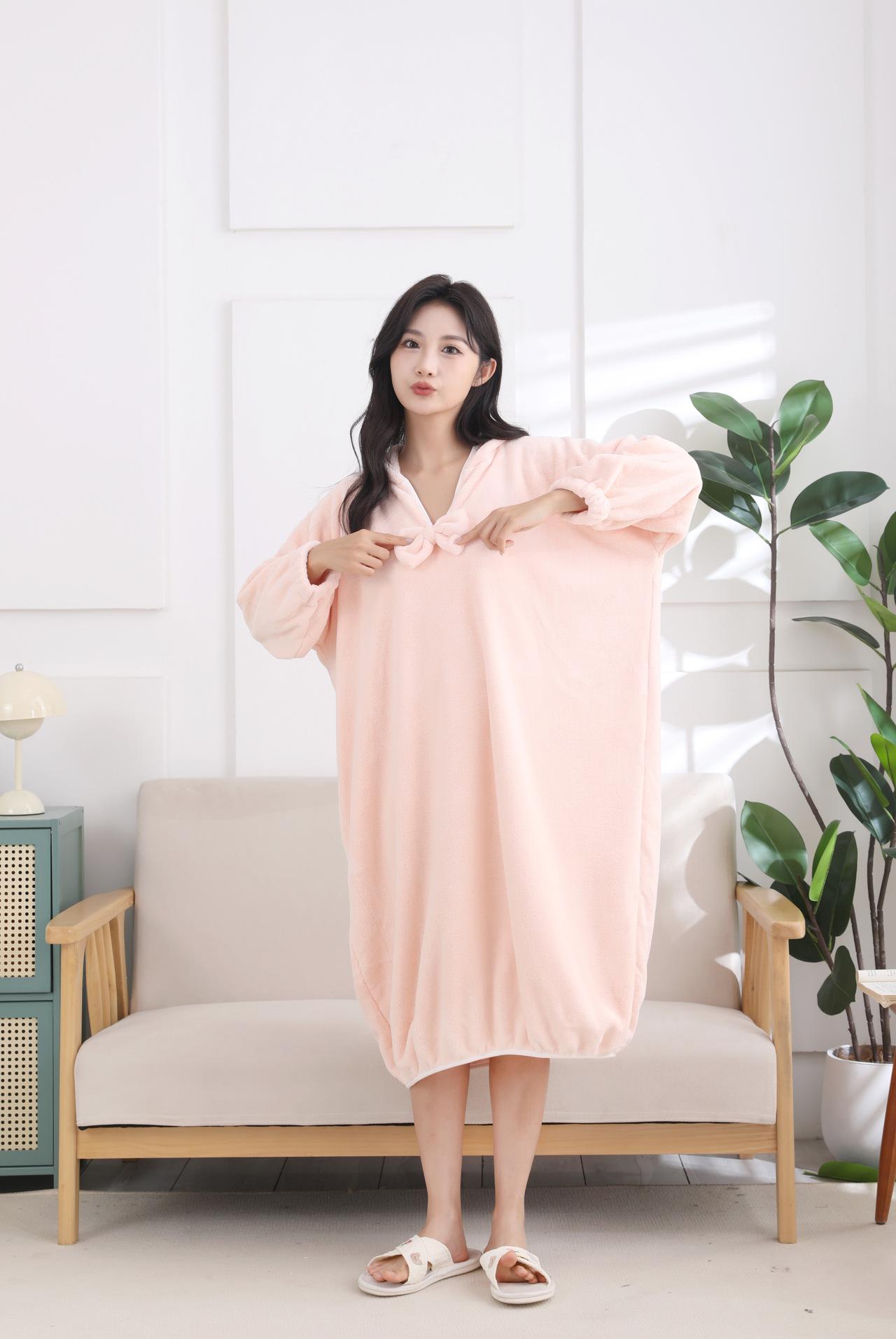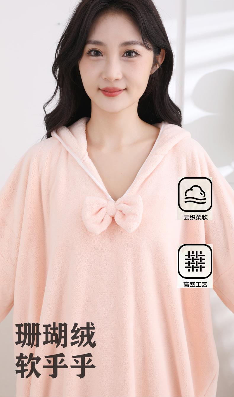 Nuevo Vestido de Baño de Manga Larga Bata de Baño para Adulto Bata para Niña con Capucha Gruesa de Vellón Coral de Secado Rápido Suelta Extragrande Ropa para el Hogar
