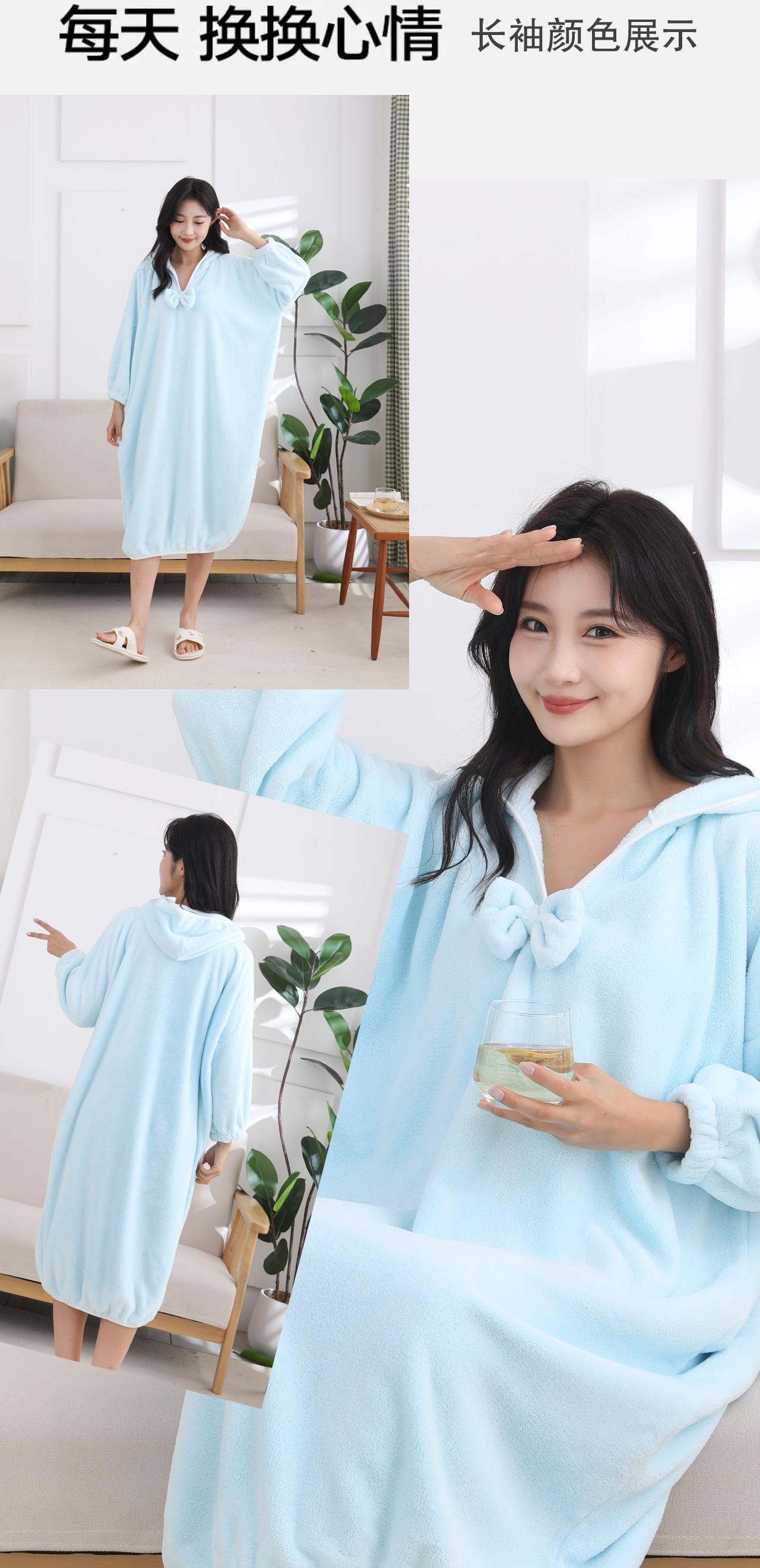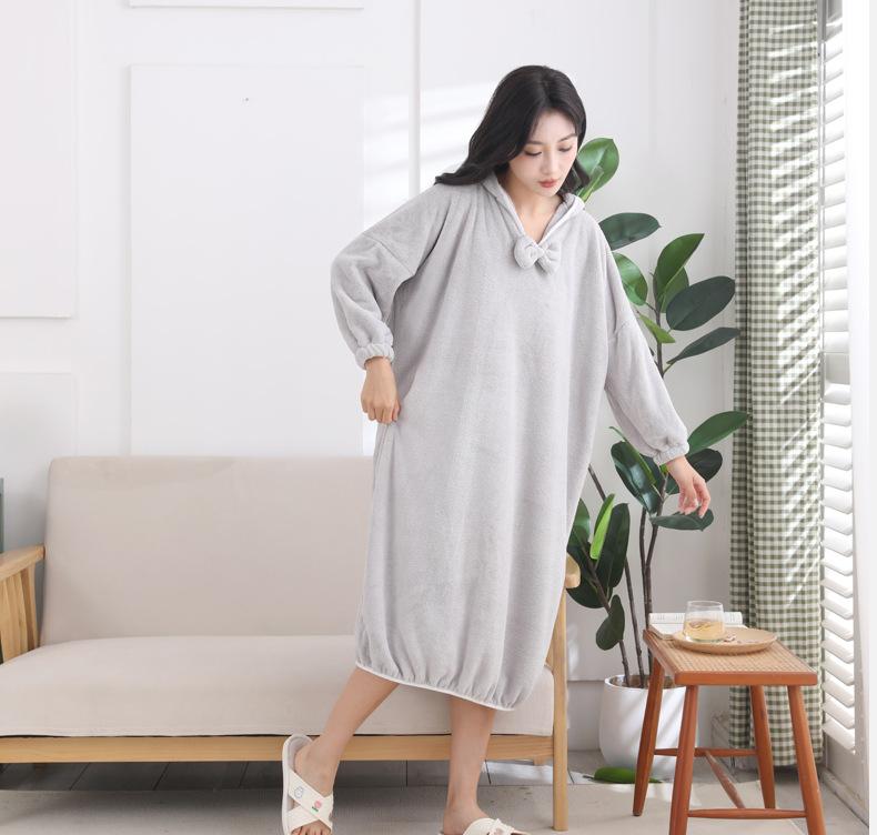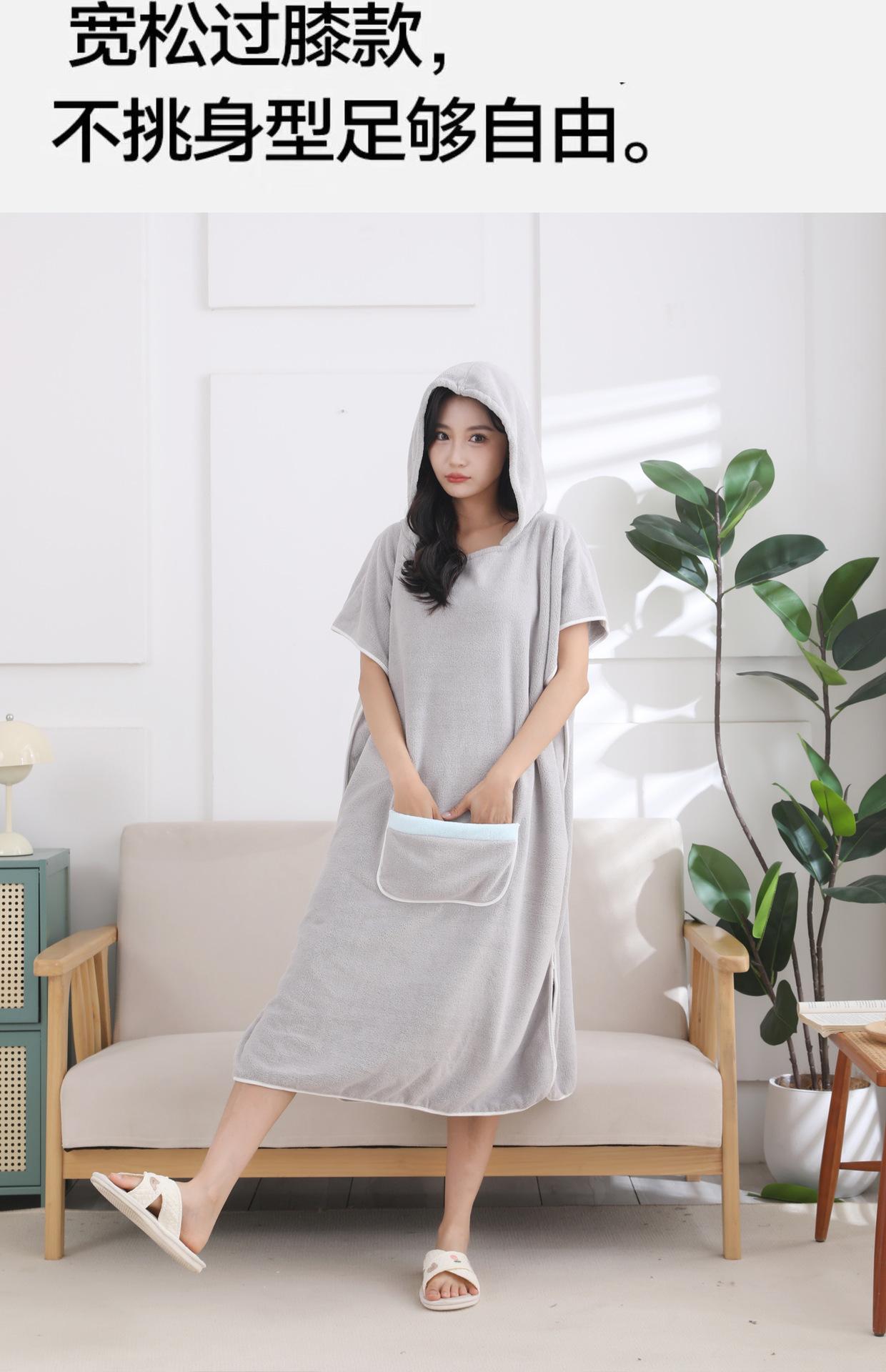 Nuevo Vestido de Baño de Manga Larga Bata de Baño para Adulto Bata para Niña con Capucha Gruesa de Vellón Coral de Secado Rápido Suelta Extragrande Ropa para el Hogar