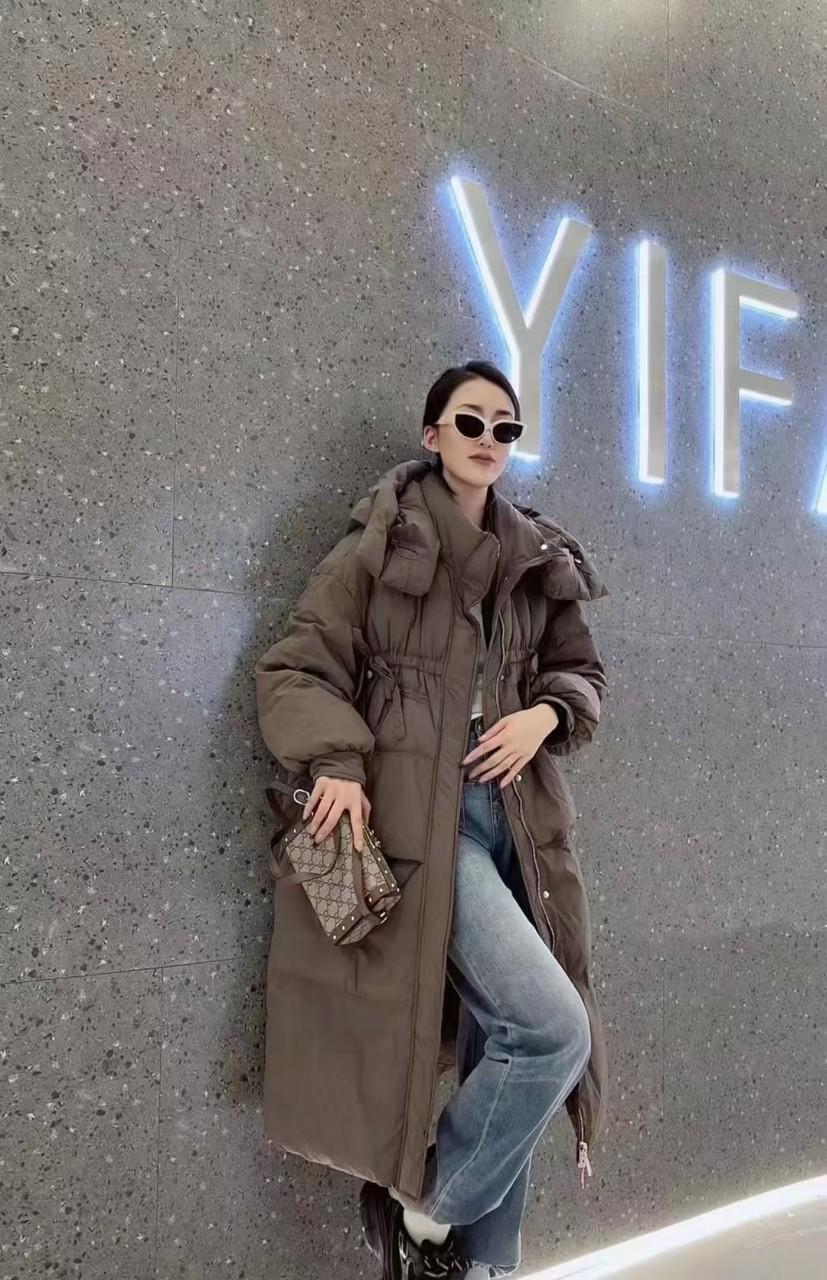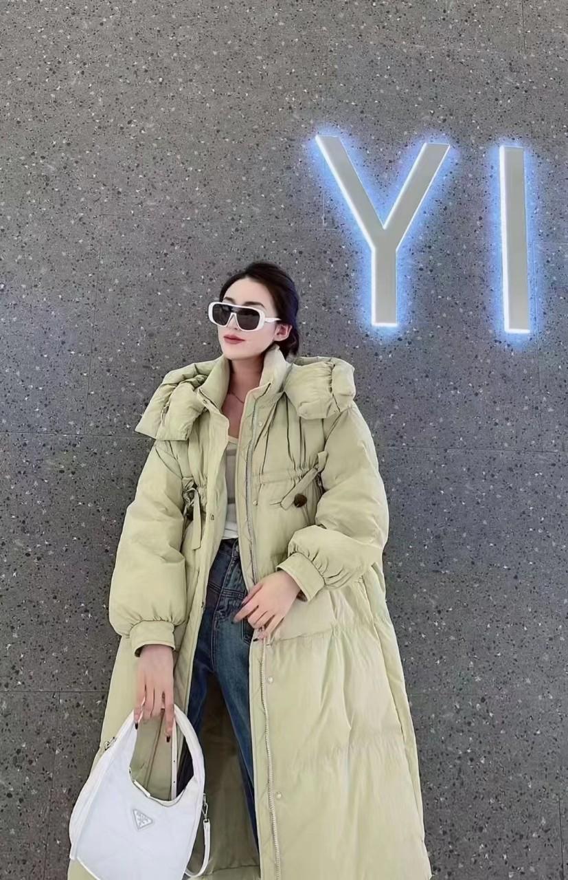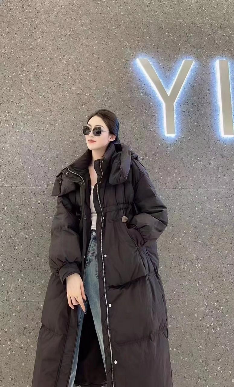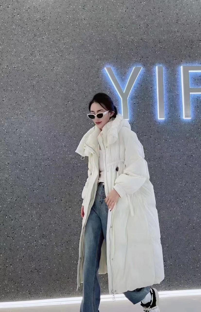 Chamarra de plumón fuera de temporada para mujer 2024 Nueva ropa de invierno Larga hasta la rodilla Engrosada Suelta Pluma de pato blanco Ropa de mujer