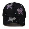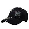 Gorra de béisbol de verano para mujer, gorra de sol de moda, estilo coreano, con mariposas y diamantes de imitación, informal, para mujer